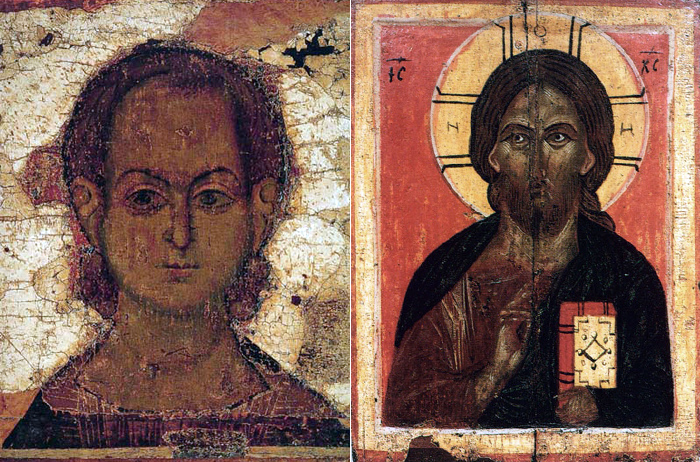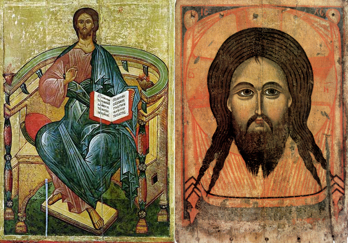 Образ Господа Вседержителя (Пантократора) можно увидеть в каждом православном храме. Он обычно находится справа от Царских Врат на иконостасе или изображается на сводах храма, показывая, что Христос смотрит на нас с небес. Лик Спасителя отражает здесь возраст Христа периода проповедничества: у него прямые гладкие волосы, спускающиеся на плечи, не большие усы и короткая борода. Его правая рука в благословляющем жесте, левая поддерживает закрытое или раскрытое Евангелие (рис. 4.1).