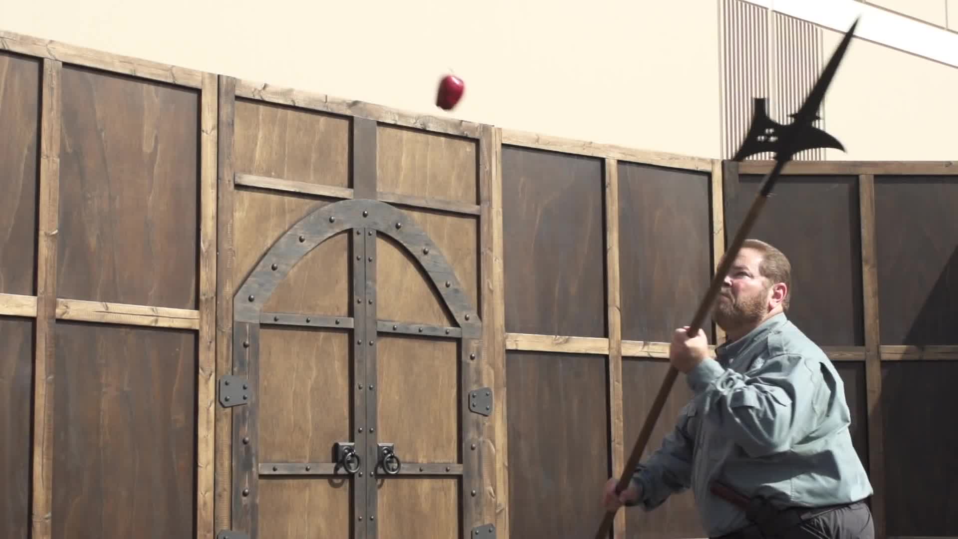 Рубка яблок на лету алебардой