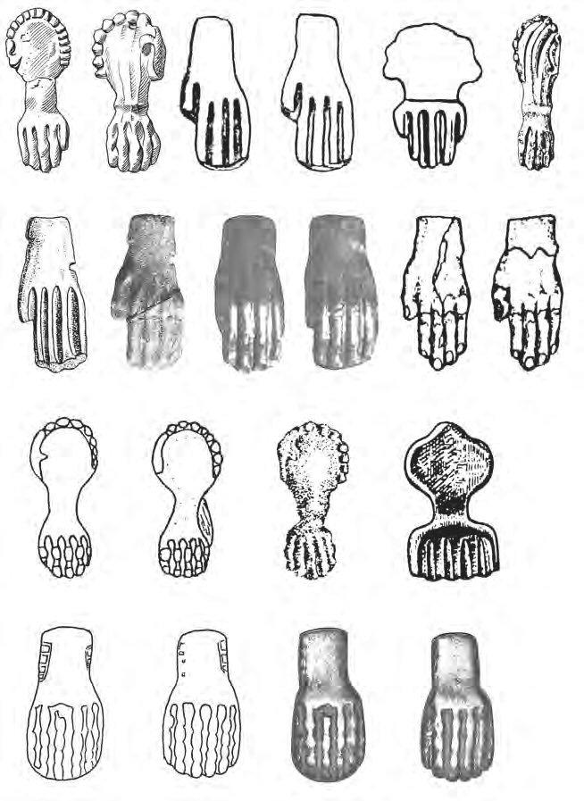 Скифские бляшки в виде лапы животного в виде лапы животного (I.2.59; VI.2.6) с реалистическим изображением человеческой кисти