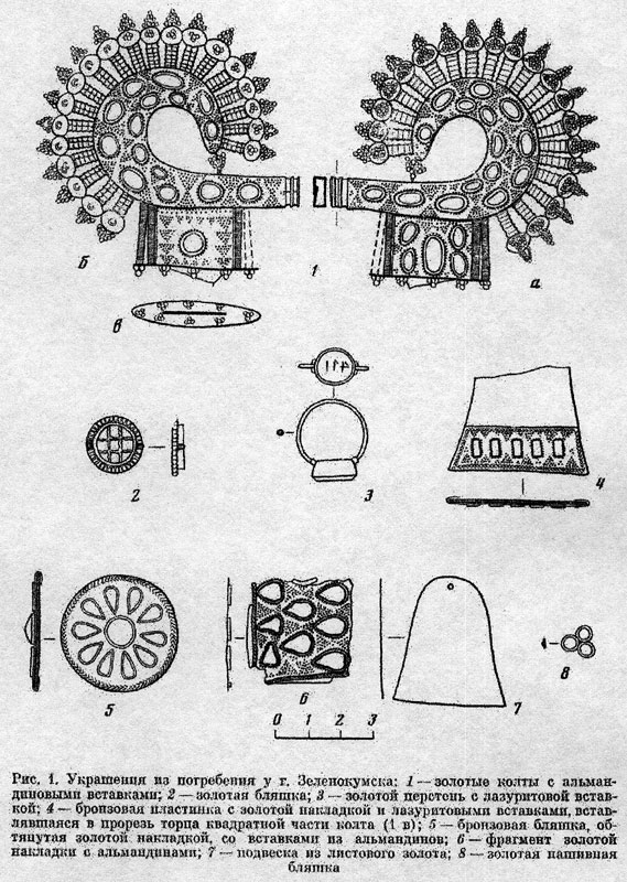 Авторы: Охонько Н.А., Отюцкий И.В. Богатое захоронение гуннского времени у г. Зеленокумска // Советская археология № 4, М.- 1982. Фото В. Каурова. Пруф: www.zelenokumsk2006.narod.ru