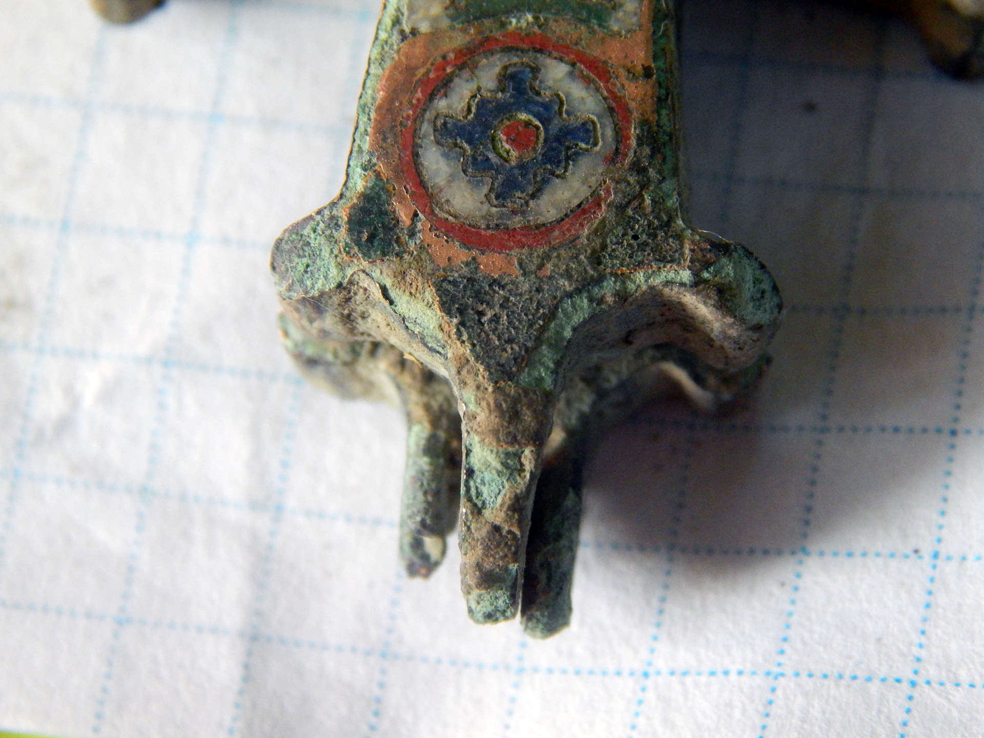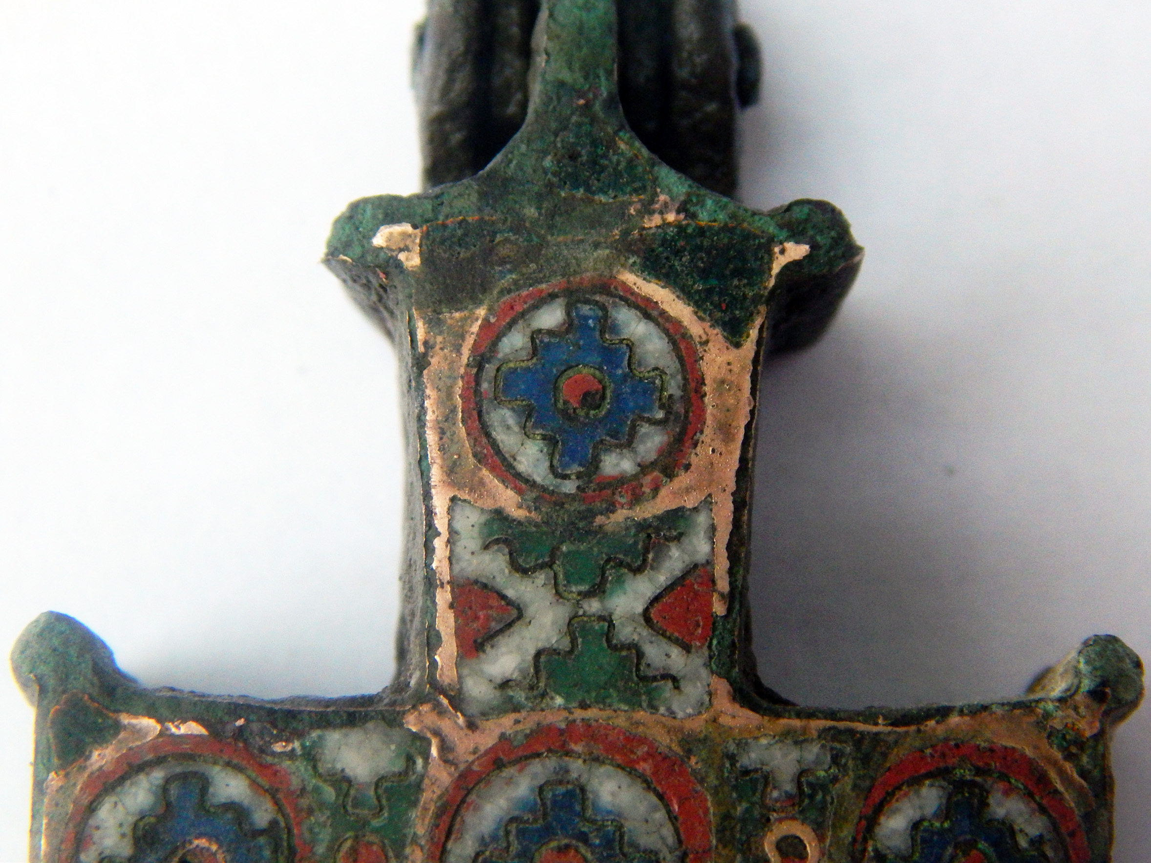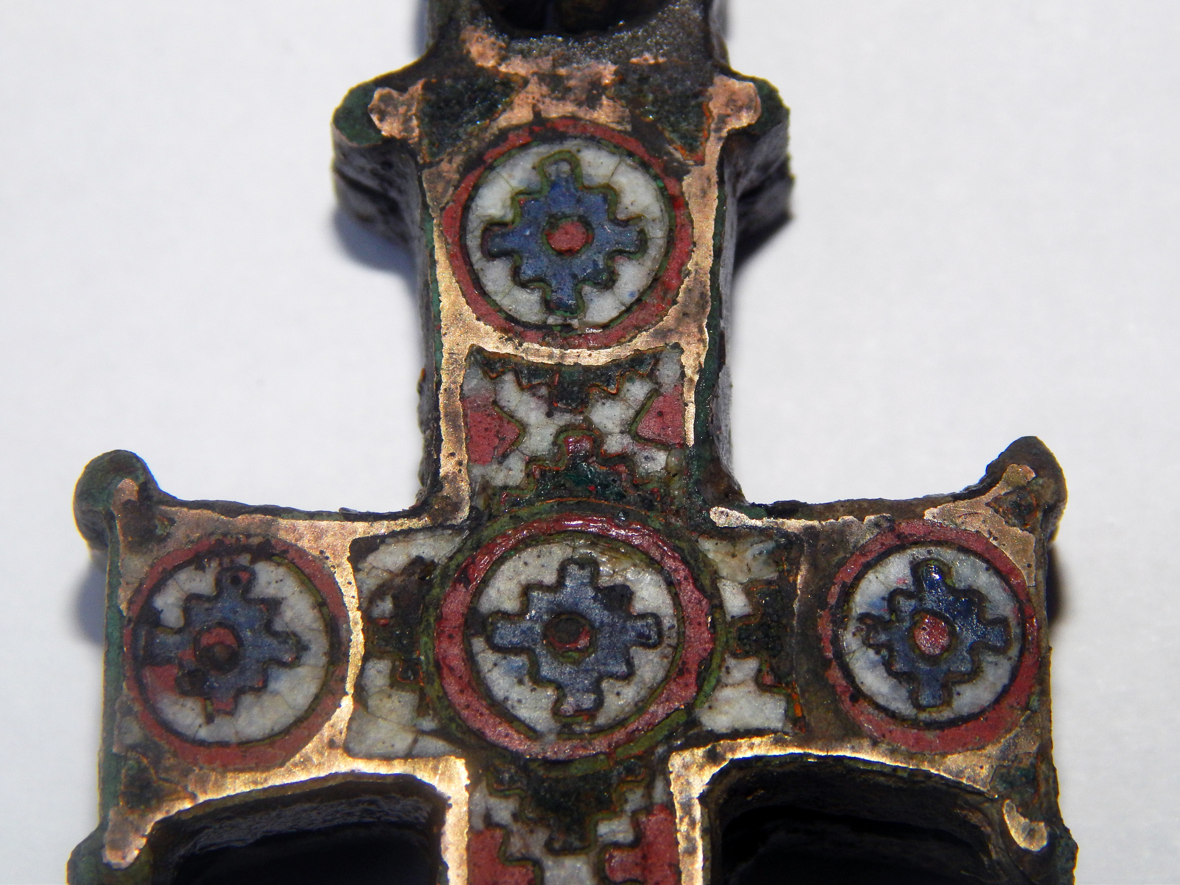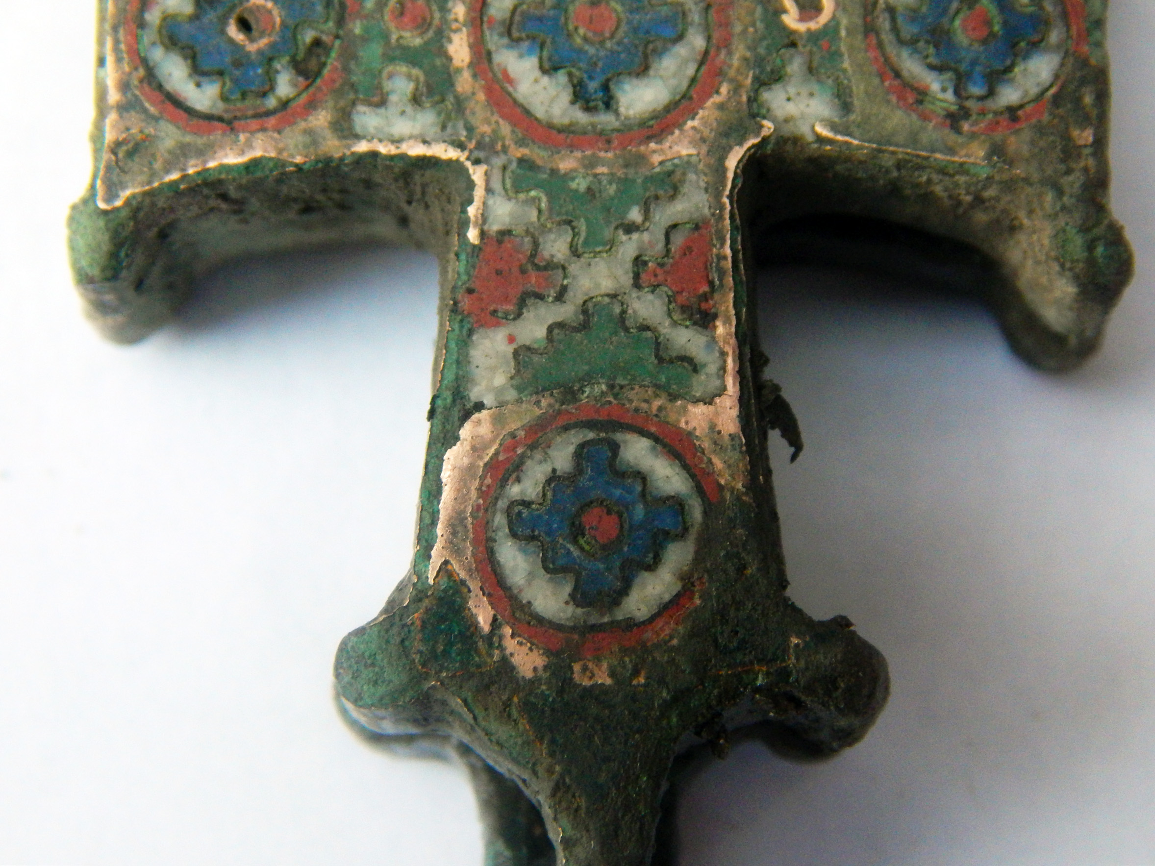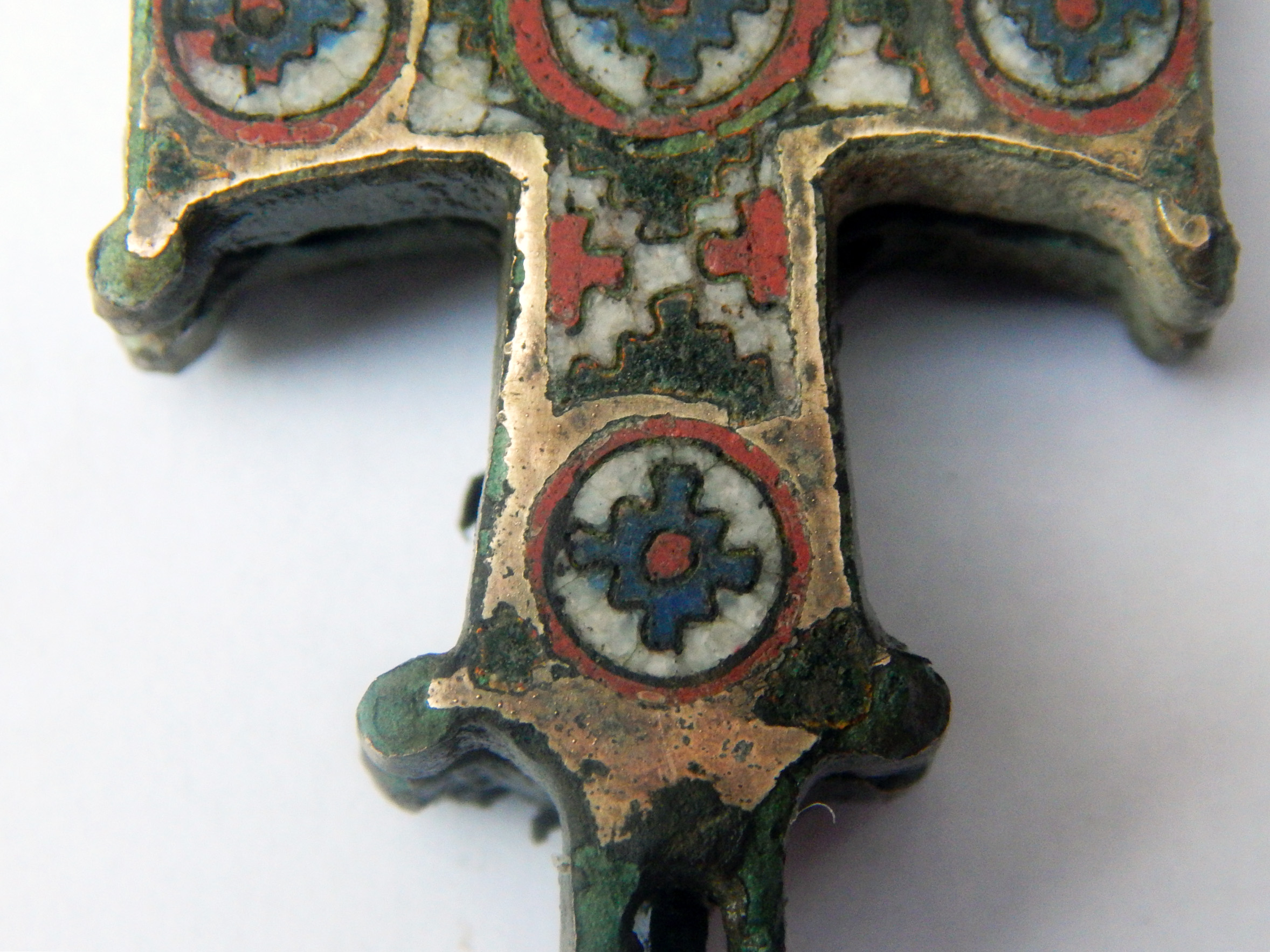 обговаривалась на форуме Виолити. Энколпион состоит из бронзовой основы в которой проделаны выемки края которой образуют перегородки, заполненные цветной эмалью. Именно поэтому предметы украшенные подобным образом называют