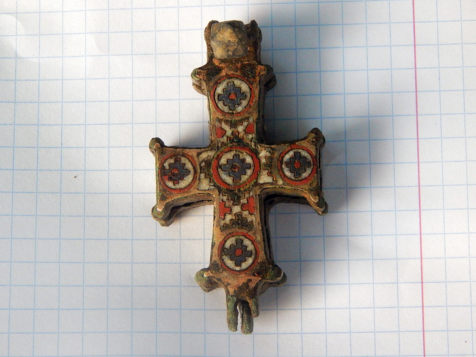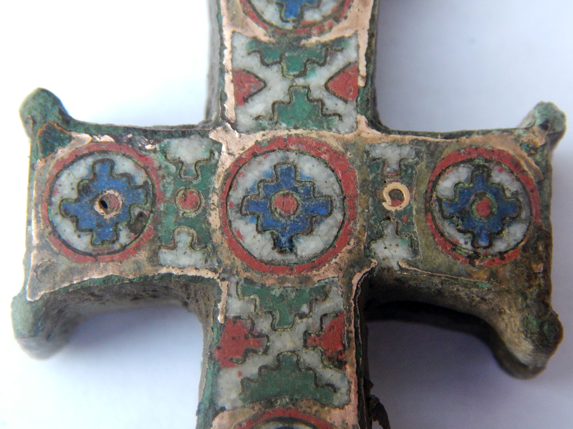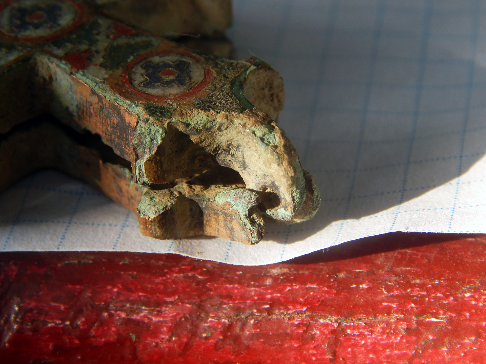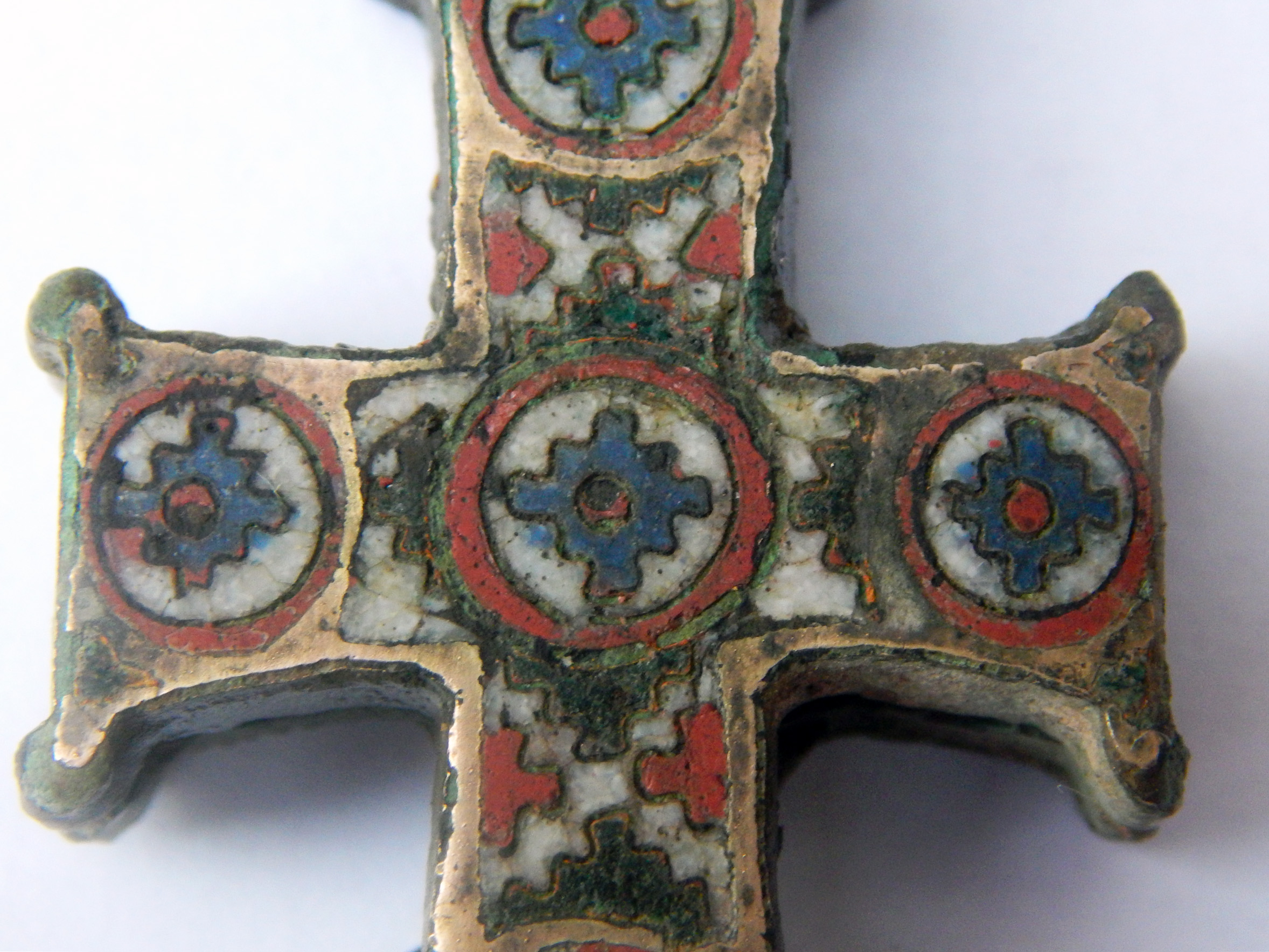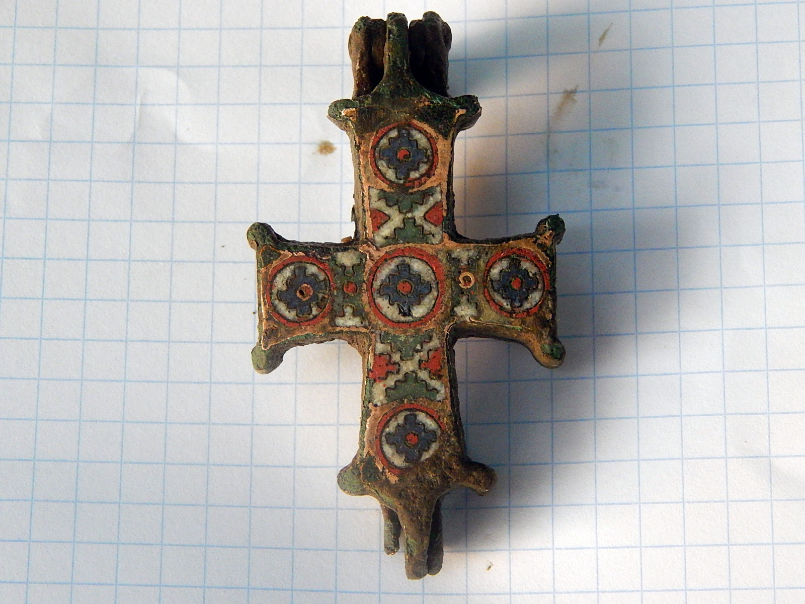 обговаривалась на форуме Виолити. Энколпион состоит из бронзовой основы в которой проделаны выемки края которой образуют перегородки, заполненные цветной эмалью. Именно поэтому предметы украшенные подобным образом называют
