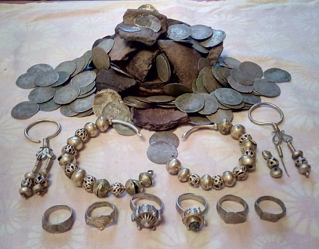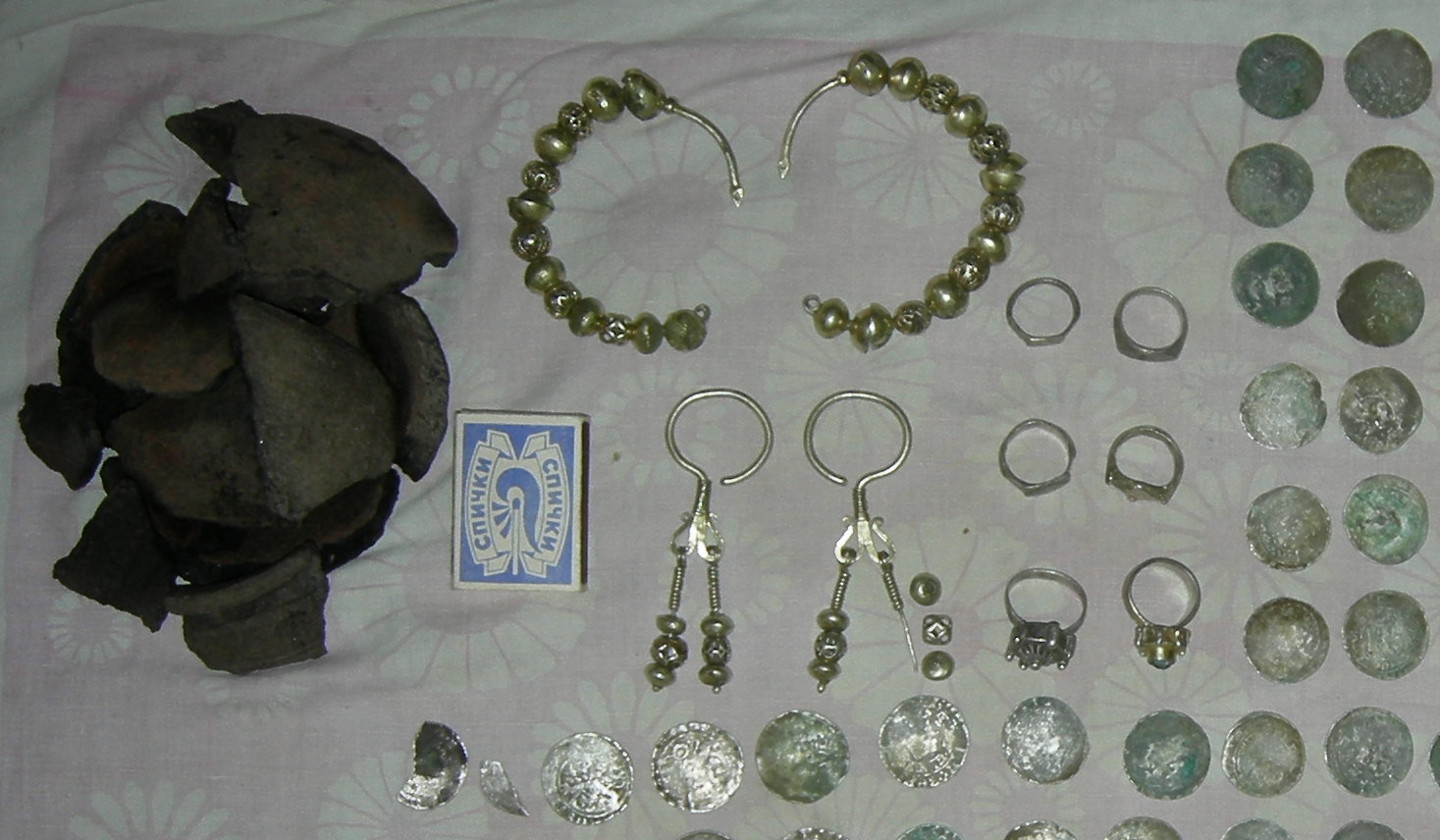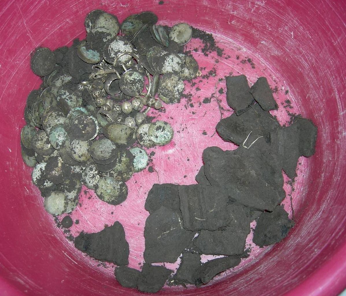Найденный в Киевской обл. клад, обсуждаемый на Виолити здесь и тут. По монетам датируется 15 веком.