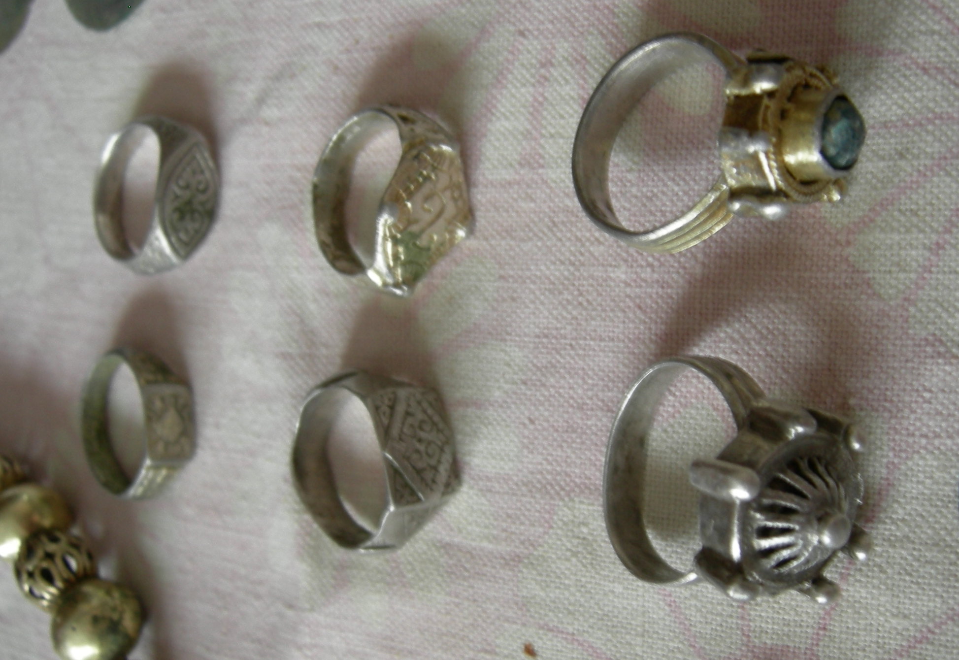 К сожалению, неизвестным остаётся происхождение пары виртуозно выполненных колец, которые хранятся ныне в Музее исторических драгоценностей Украины (инв. №№ Д-6840, Д-6841). Сложная техника их изготовления – с позолотой и поочерёдным расположением сплошных и выполненных из уплощённой витой проволки ажурных бусин, наводит на мысль об участии развитого ювелирного ремесла древнерусских городов (тем более, что такие популярные восточнославянские украшения как височные кольца с тремя ажурными бусинами также отличает близкий стиль исполнения). Тем не менее, водский архетип этих украшений очевиден: мелкие технические детали - завиток, ушко, количество бусин и рельефная муфта для их фиксации вполне соответствуют своим северным аналогам. В любом случае, вполне возможны такие варианты, как заказное изготовление для выходцев из территорий, где подобные украшения были привычны, либо изощрённое повторение знакомых мастеру мотивов.