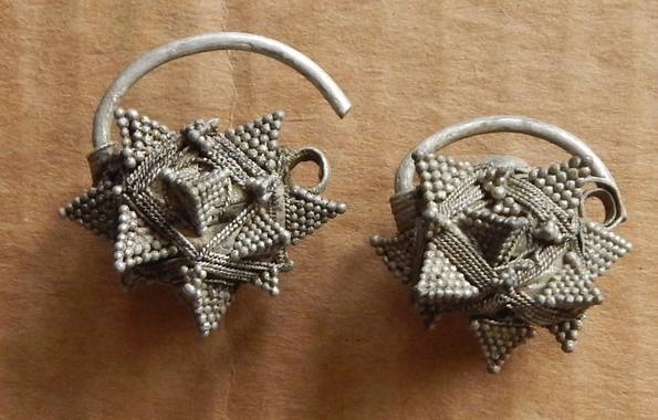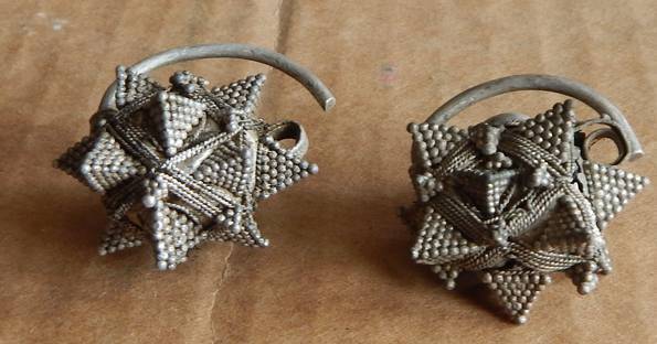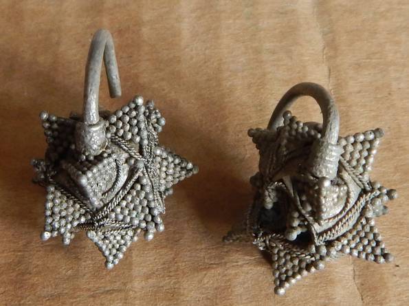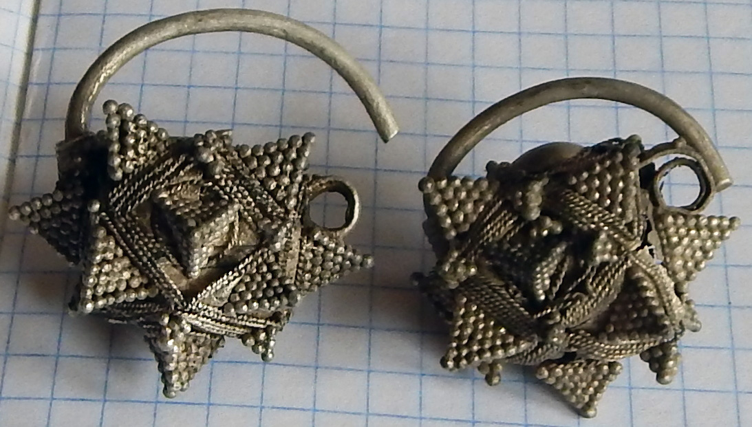Серебряные крупнозернистые звездчатые колты 12-13 век