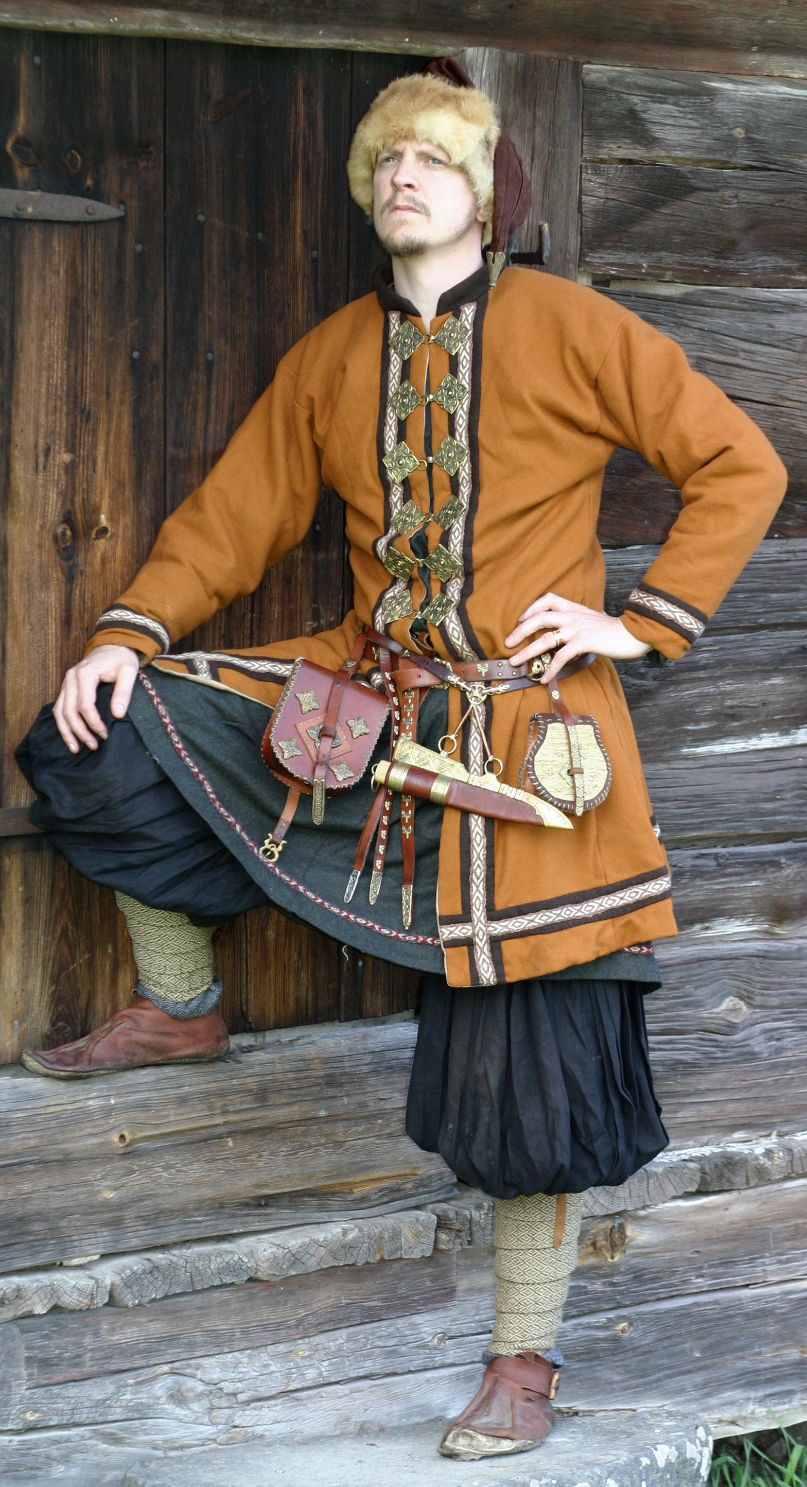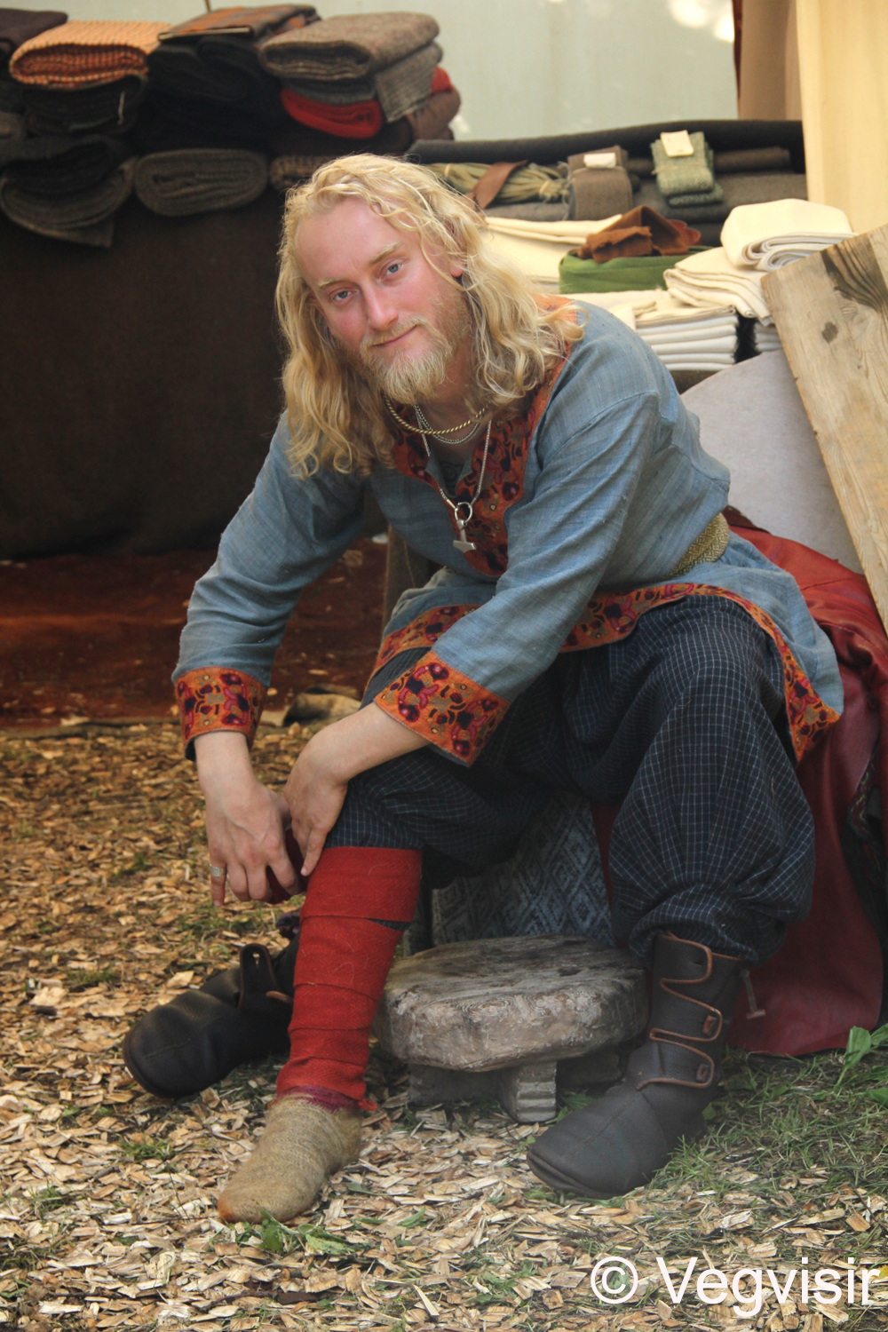 Длинные тканные шерстяные полосы, как правило, 70-100mm в ширину, известны из городских слоёв эпохи викингов, а именно Елисенхоф, Хейтебю, Лондон и Йорк (Elsner 1988; Hägg 1984; 1991; Pritchard 1984; Trott 1988; Walton 1989). Они определены в качестве обмоток голеней, широко представленных в ранне средневековых изобразительных источниках. Большая часть находок соткана саржевым плетением «в ёлочку». Голубые красители были извлечены из нескольких находок в Лондоне и Йорке (Pritchard 1984). Закрученный металлические метки, или так называемые «обмоточные крючки», являются наиболее распространенными в Англии, но особенно сложные примеры литых известны из Швеции и России. Двое из них были расположены рядом с коленями мужского скелета в Бирке могиле Bj 905 (Geijer 1938). По мнению ученых они были крючками для обмоток.