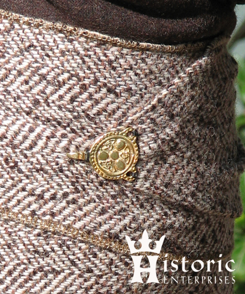 Реконструкция: Шерстяные ленты, упомянутые выше, были сотканы в качестве целой ткани, то есть. они имеют монолитные кромки с обеих сторон. Так как ткань такого узкого формата не является легкодоступной, 4 измерительная полоски были вырезаны по ширине из подходящей синей саржевой в ёлочку полосы, и окантованы петельной строчкой (необработанные края шелковой полосы из погребения C10th в Маммене (Дания), были окантованы стежками с петлями: Østergård 1991). Бронзовые крючки реконструированы по одной находки 9-10 века, из мета известного как "Рюриково Городище" близ Новгорода, Россия (Носов 1987). Этот крюк был почти идентичен паре из могилы Bj905 в Бирке.