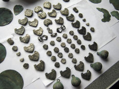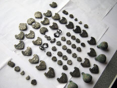 Втульчатое оголовье коня, фаллары, бубенцы, поясной набор воина 8-9 в. н. э. Хазарский каганат.На Аукционе Виолити продавались предметы украшения коня и поясного набора. Все предметы аналогичны предметам из погребения № 482 Нетайловского могильника, и как утверждает продавец, эти предметы из тех же мест.