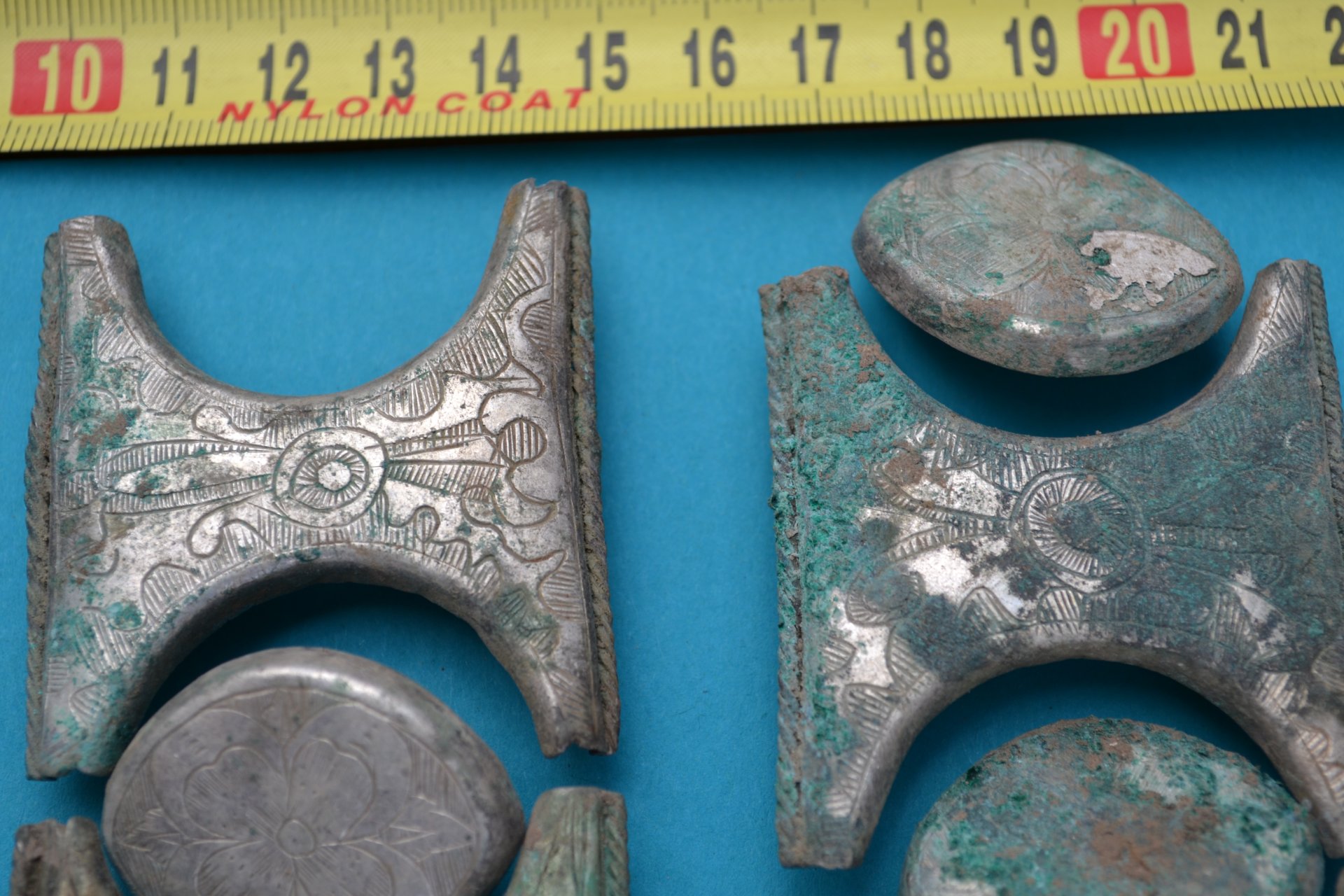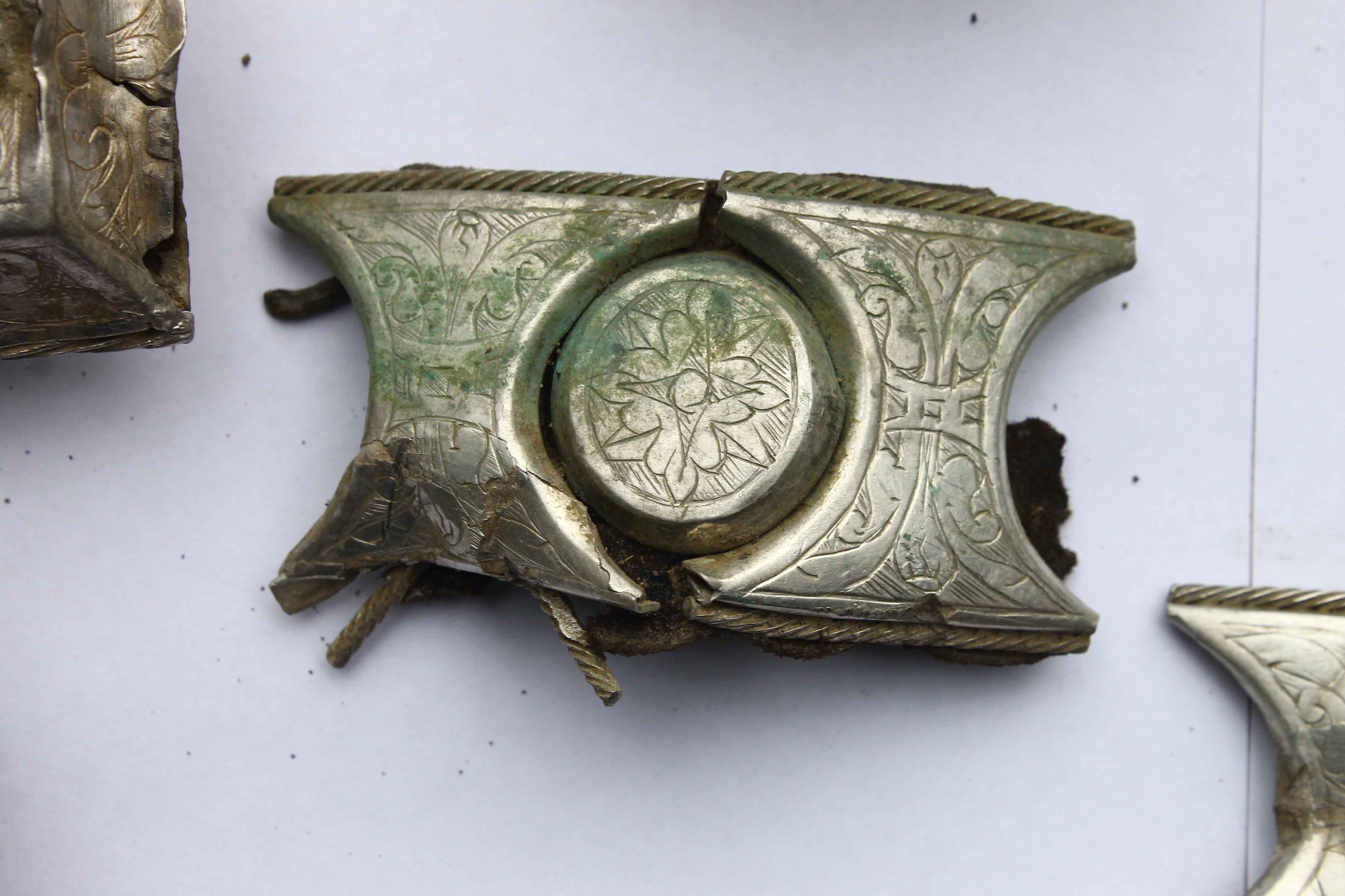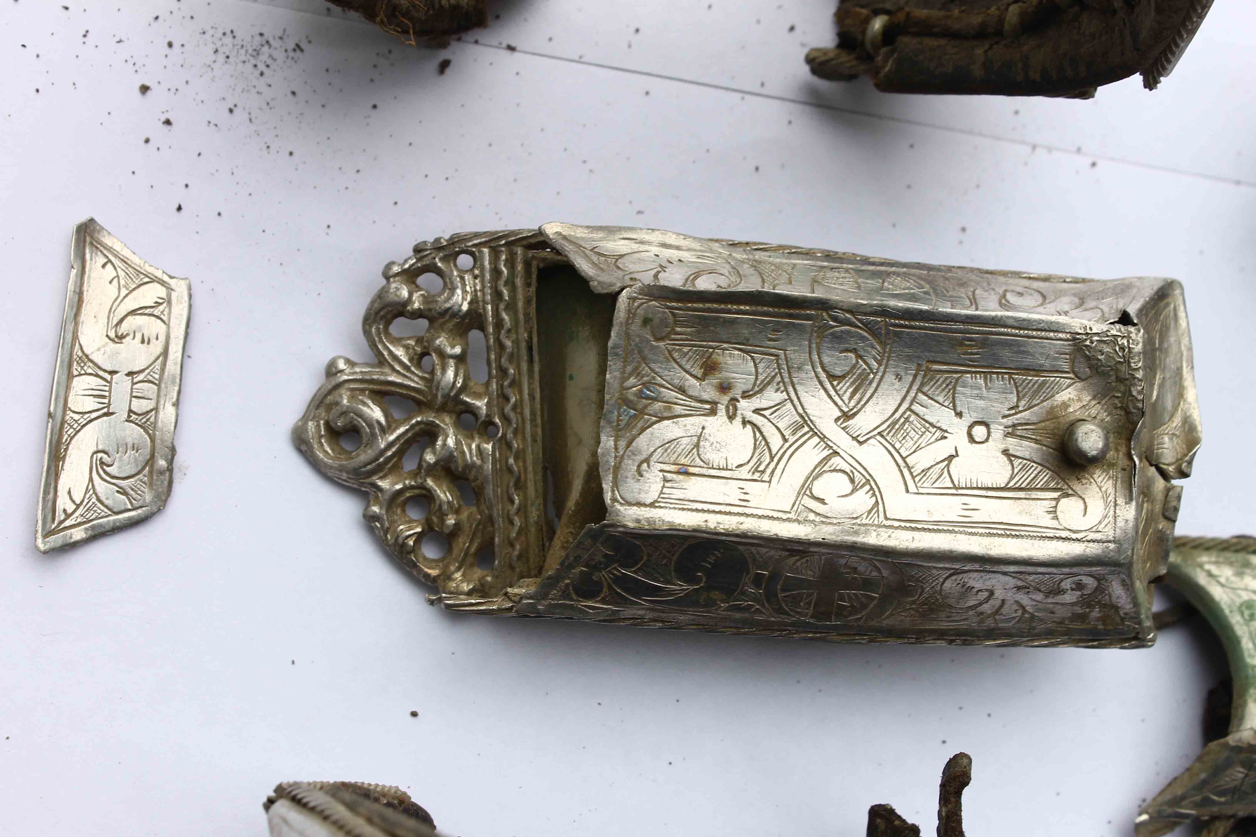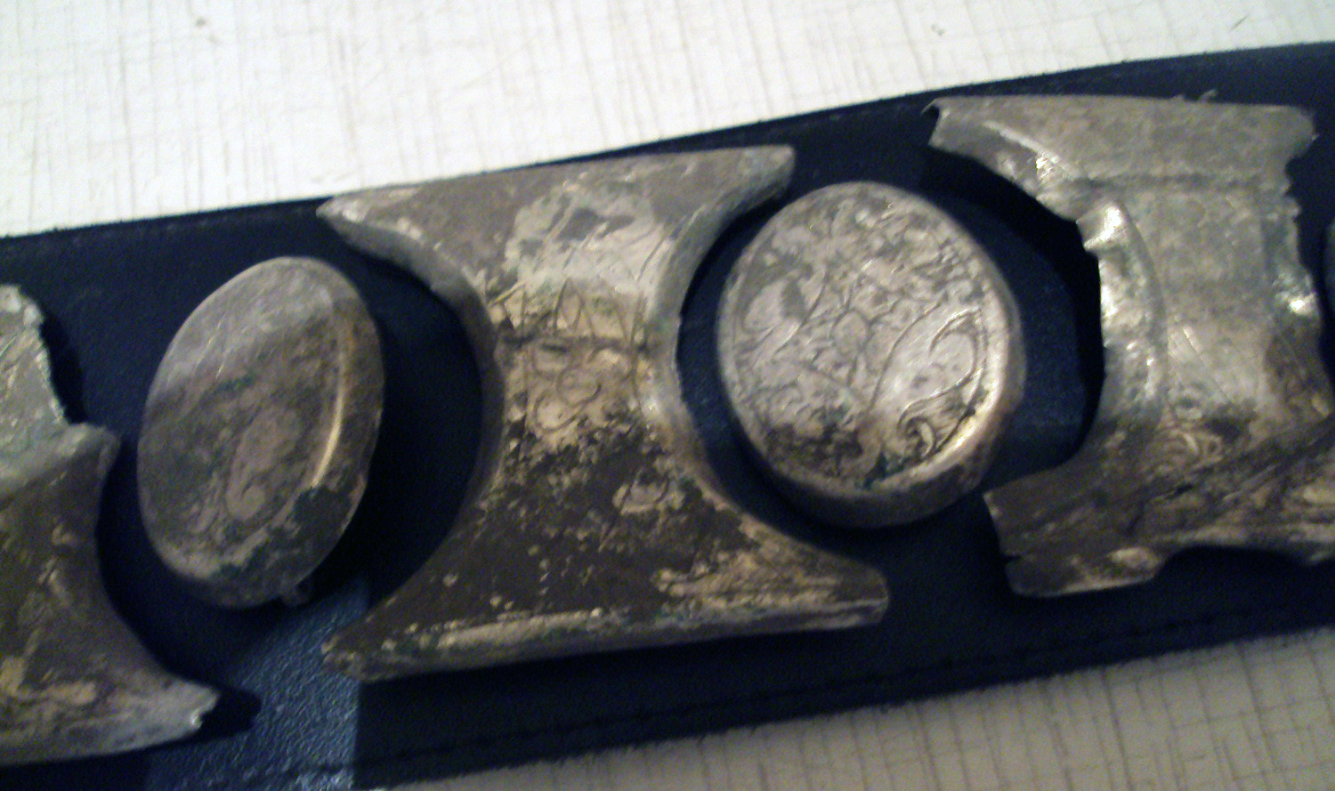 Год собирали растянутый по полю серебряный пояс ... Более-менее что то уже нарисовалось ... Я так понимаю Польша, 17 век. Полгода назад похожий находили в Хмельницком, только он в лучшем сохране был. Этот из Луцкой обл. Помогите, пожалуйста, с оценкой ... С уважением scurb Виолити 26.01.2012.