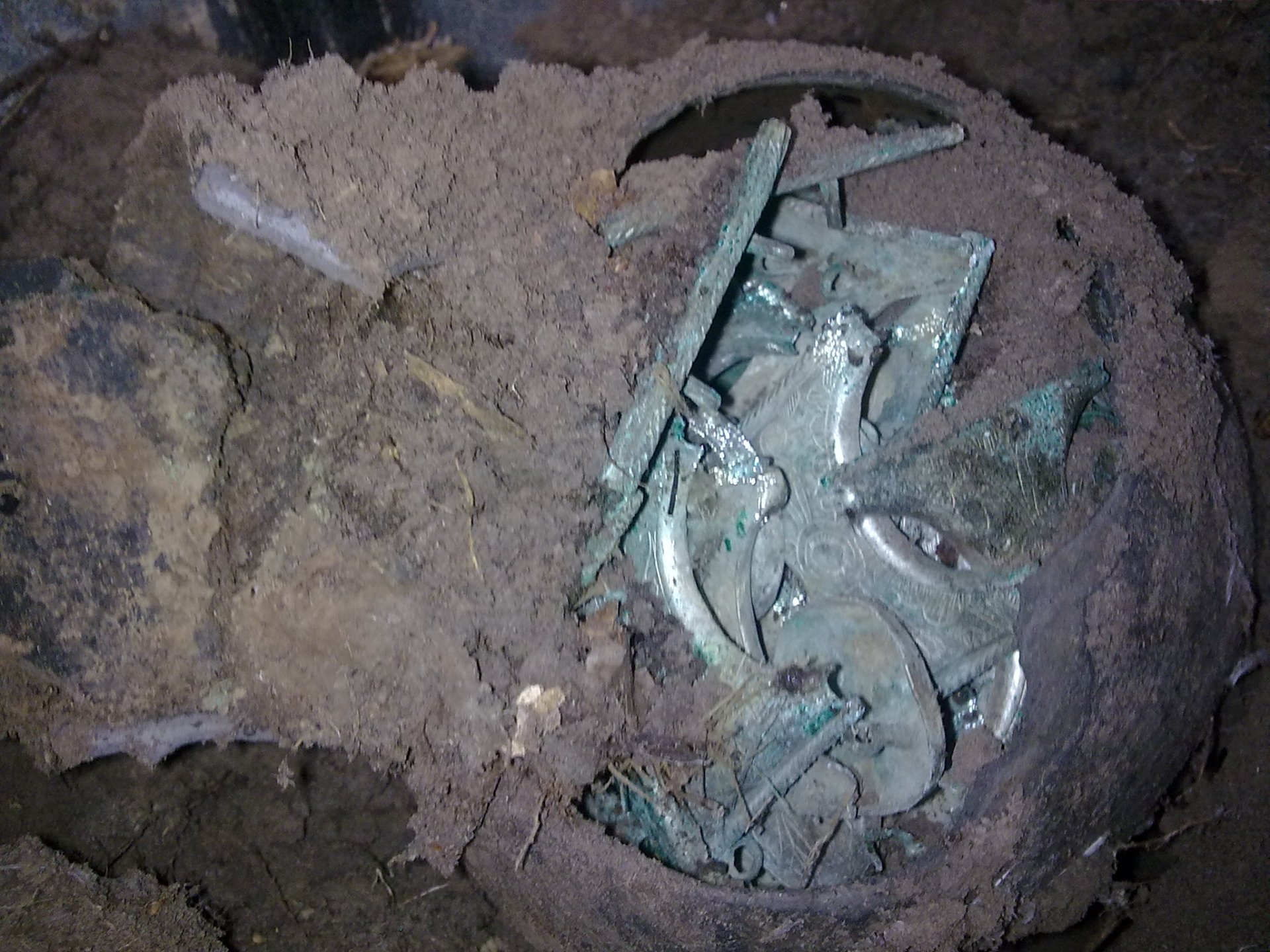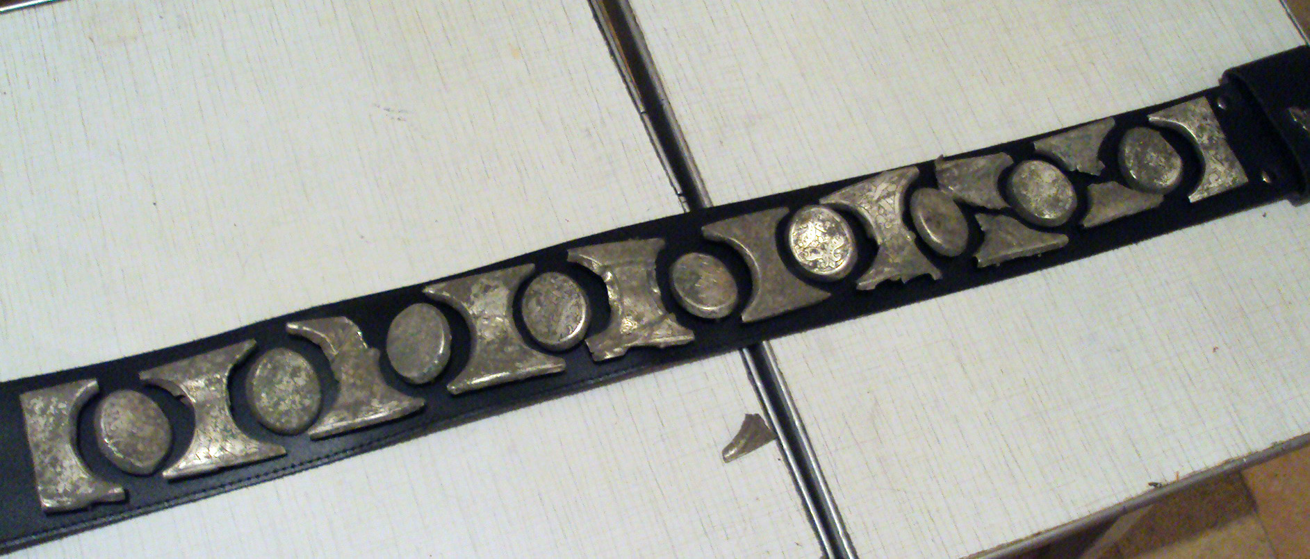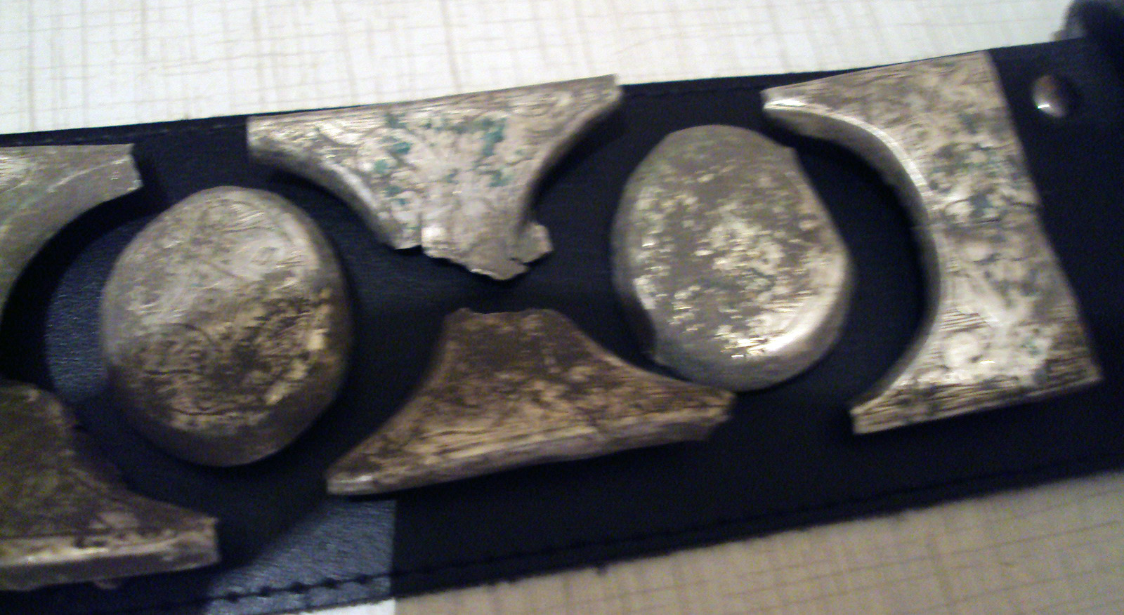 Цитата: Petro502 Пояс найден в лесу, в горшке который распался на маленькие кусочки (тонкая керамика). Остатков кожи не было совсем, что странно. Пояс лежал на глубине 20-30 см., компактно, возможно был в что-то завернутый – и в горшкке. Фото дома.