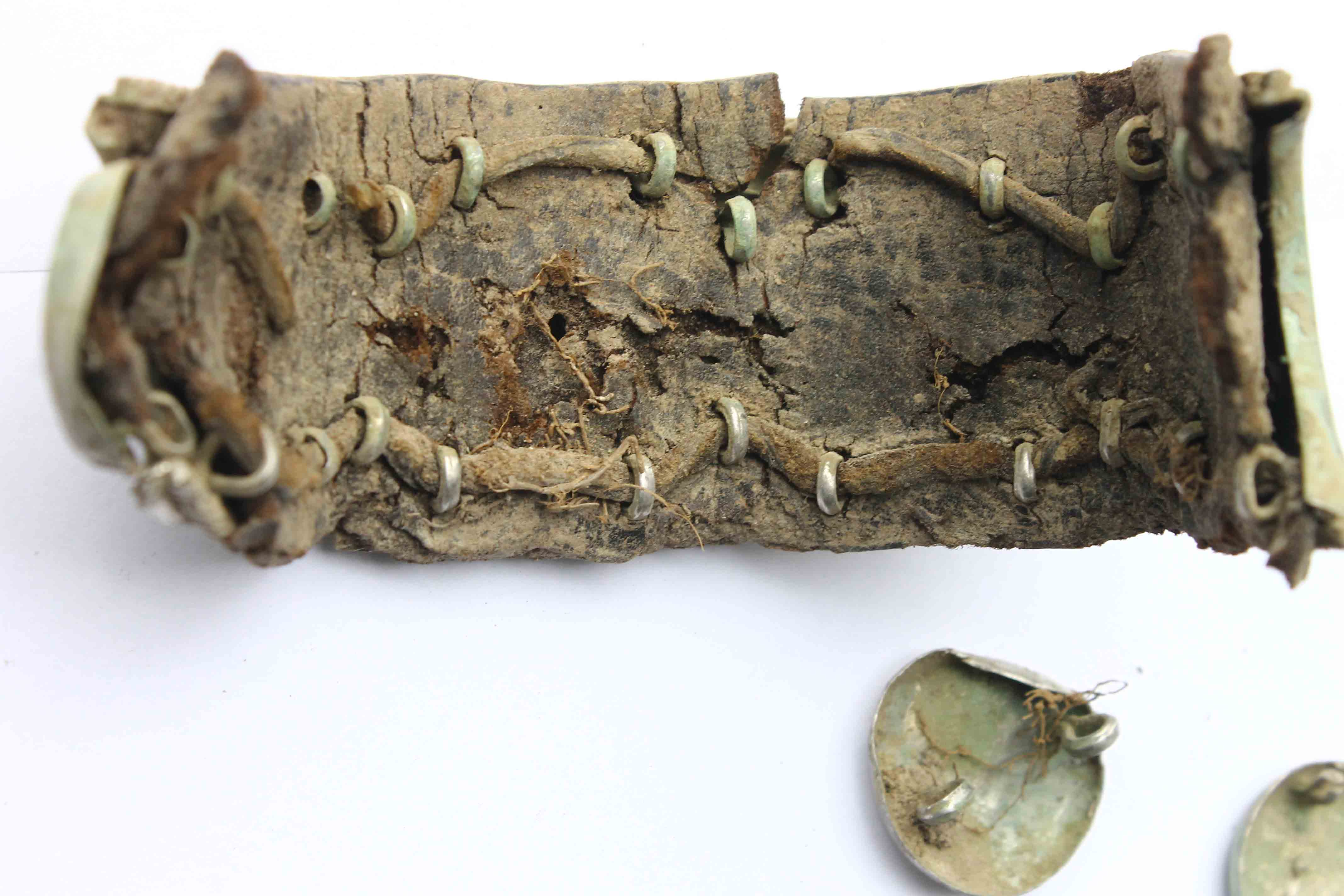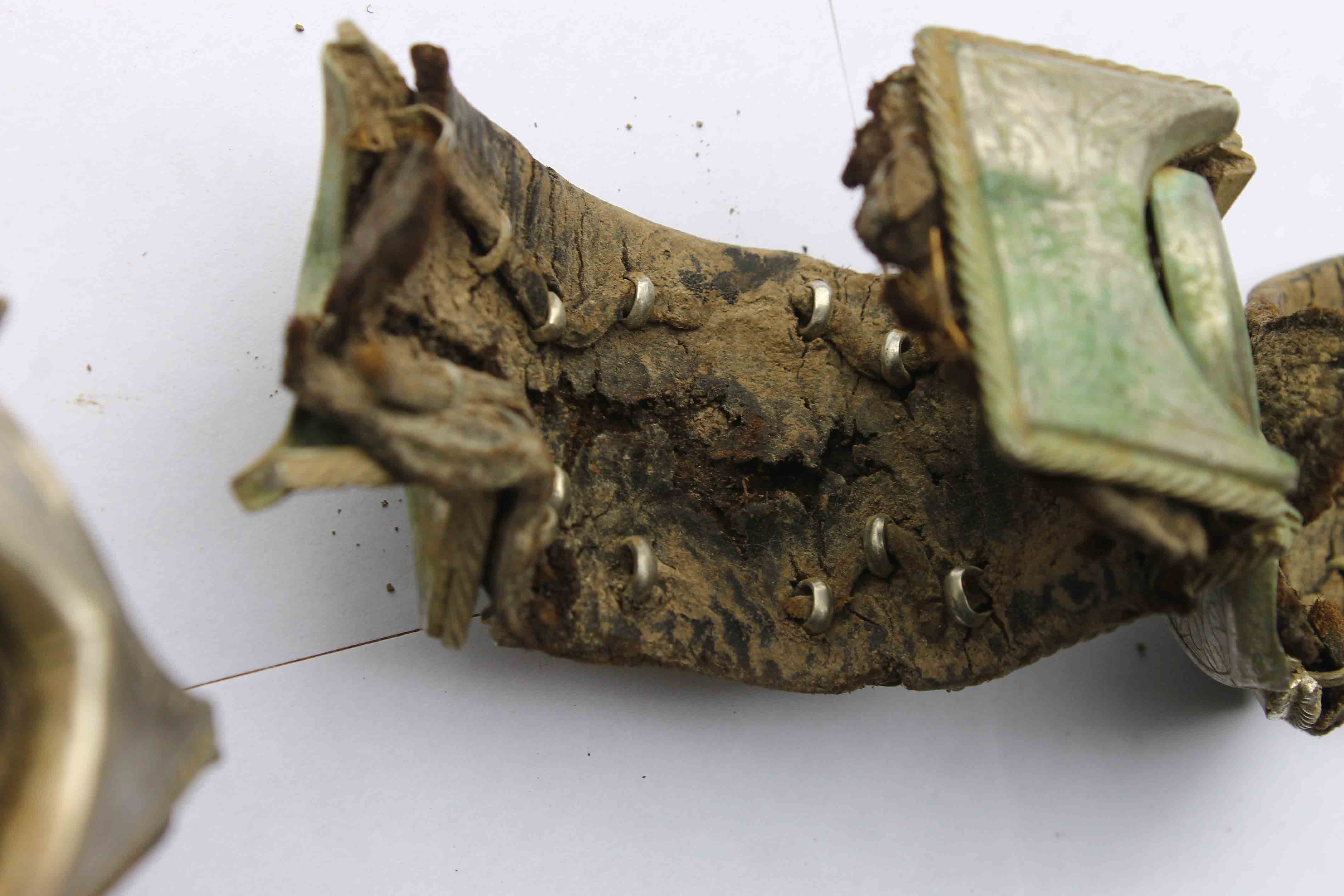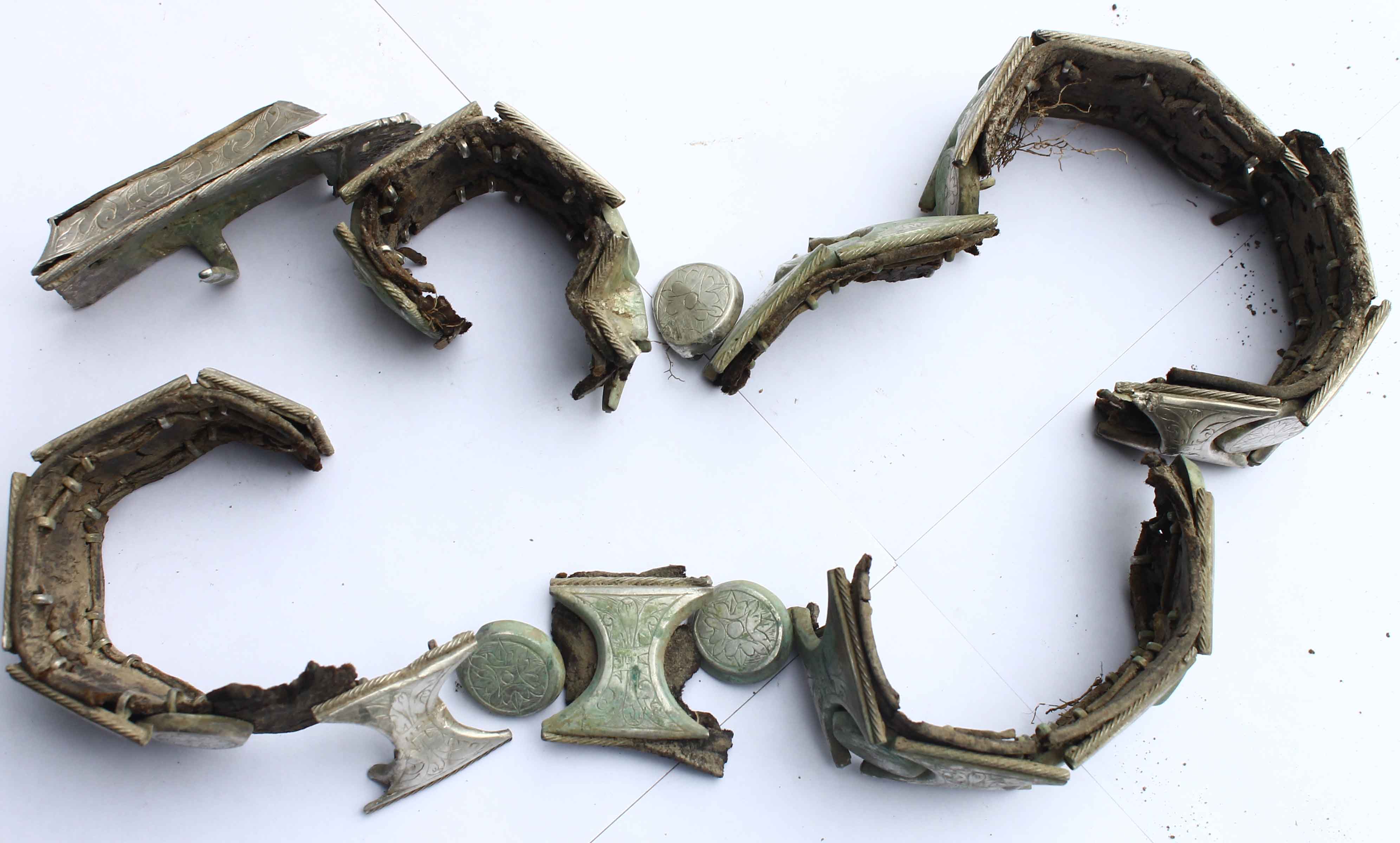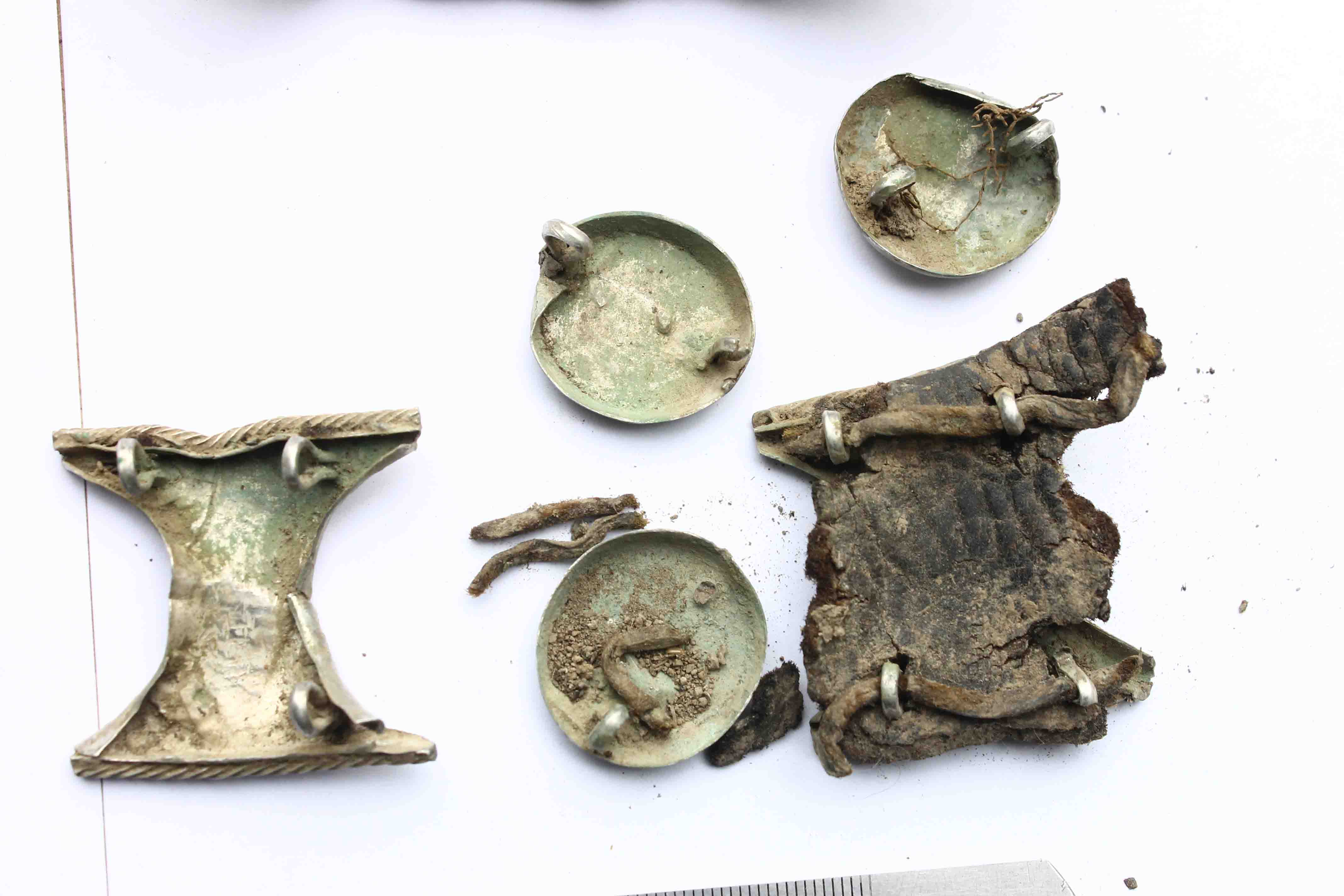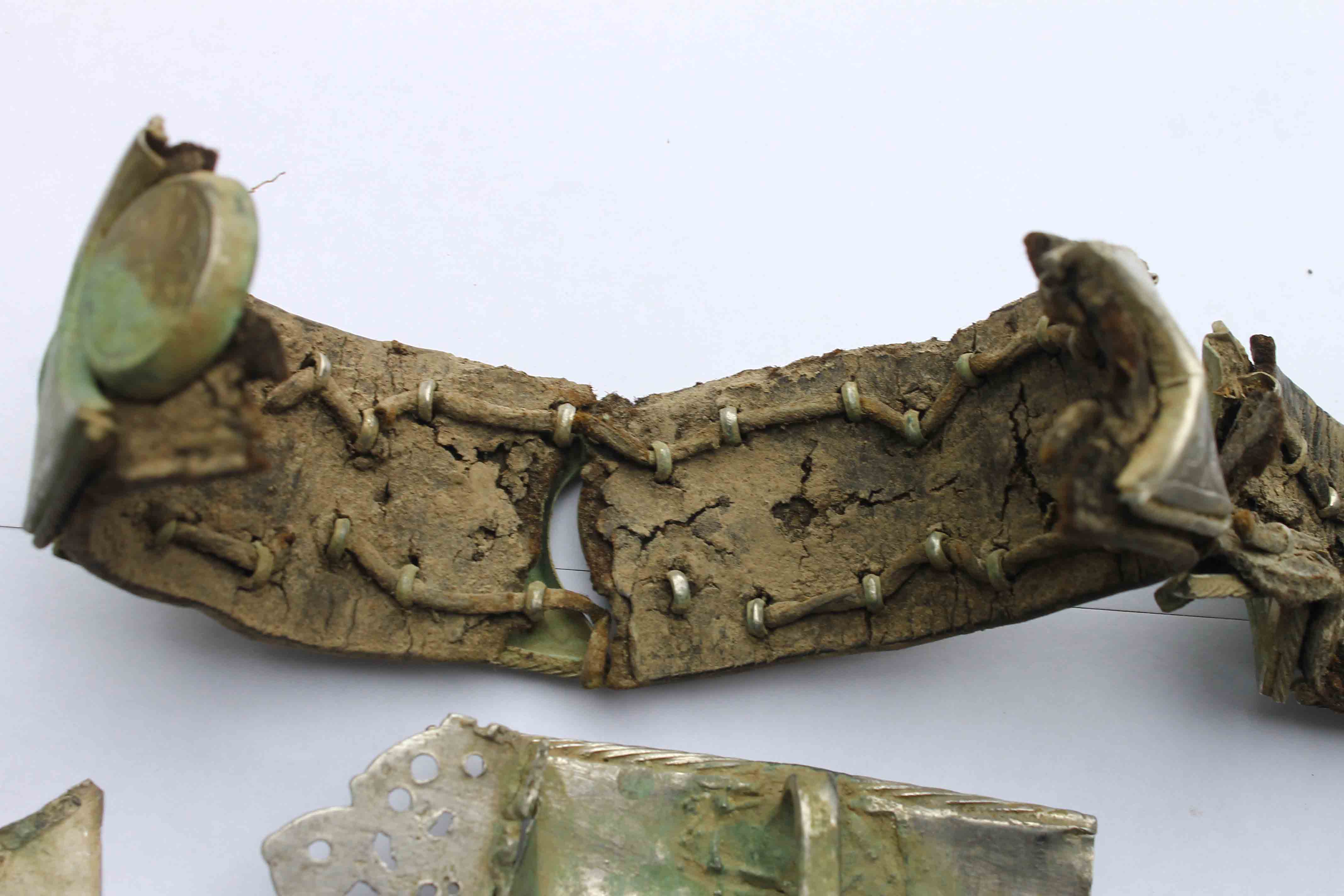 Кожи не было это точно, грунт-глина, возможно кожа перегнила, а с другого материала пояс не мог быть изготовлен?