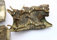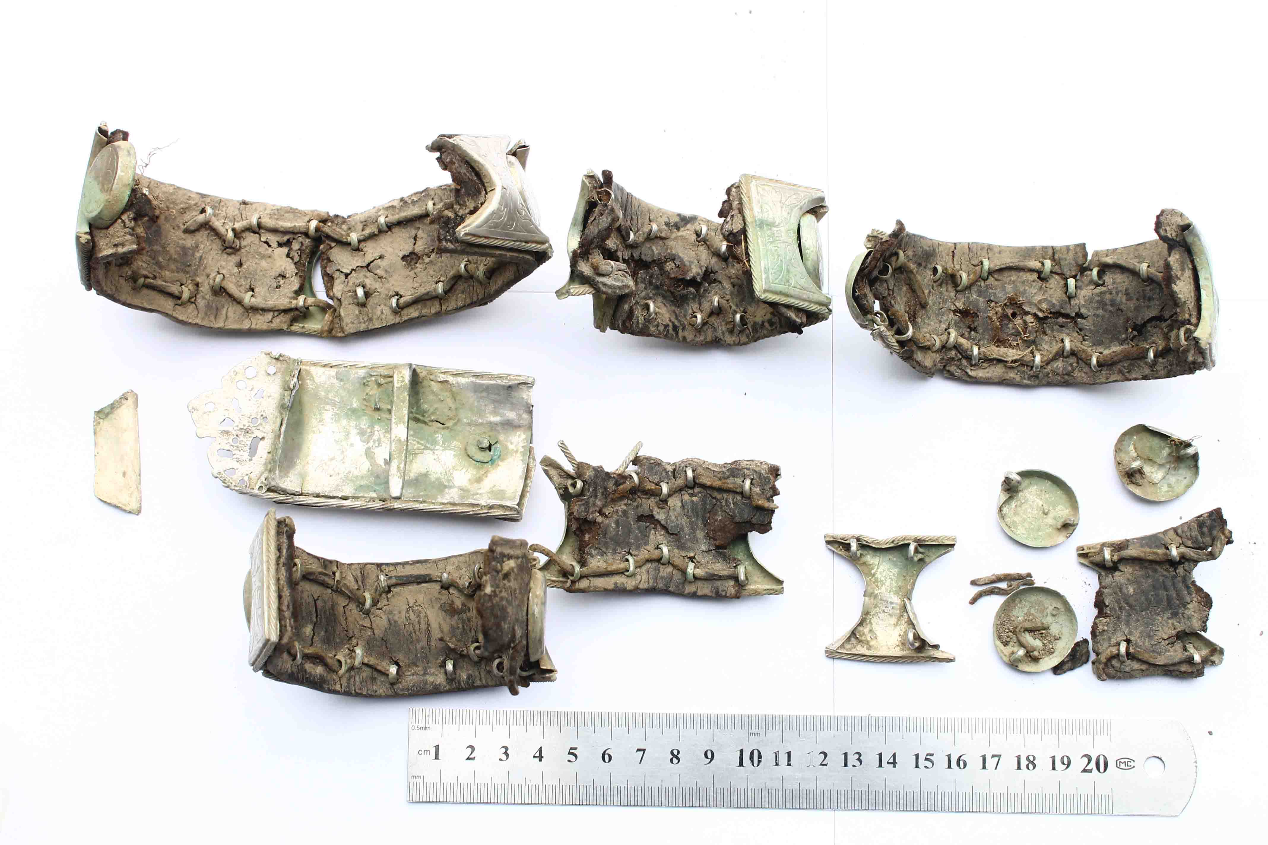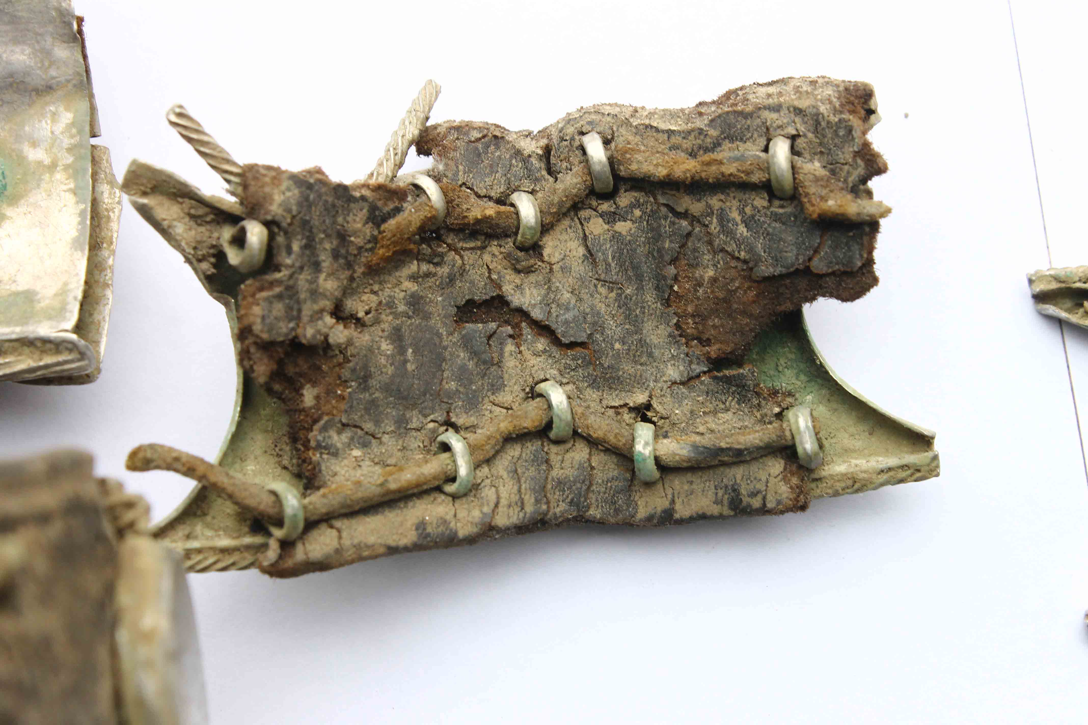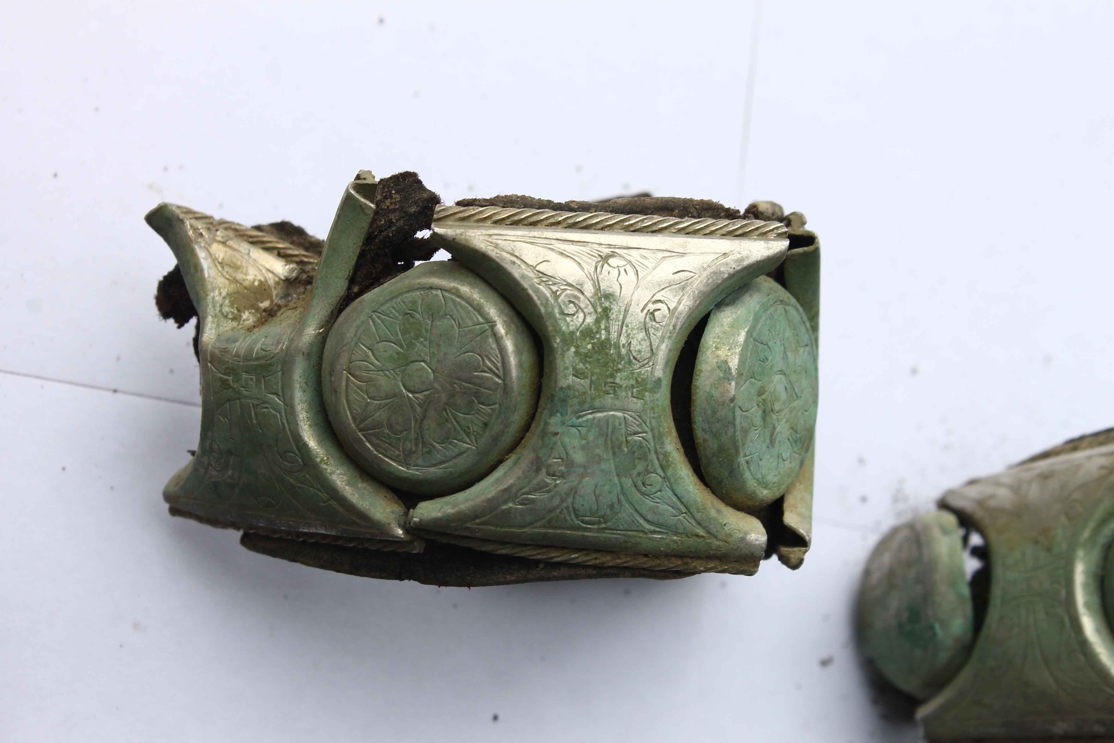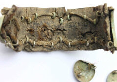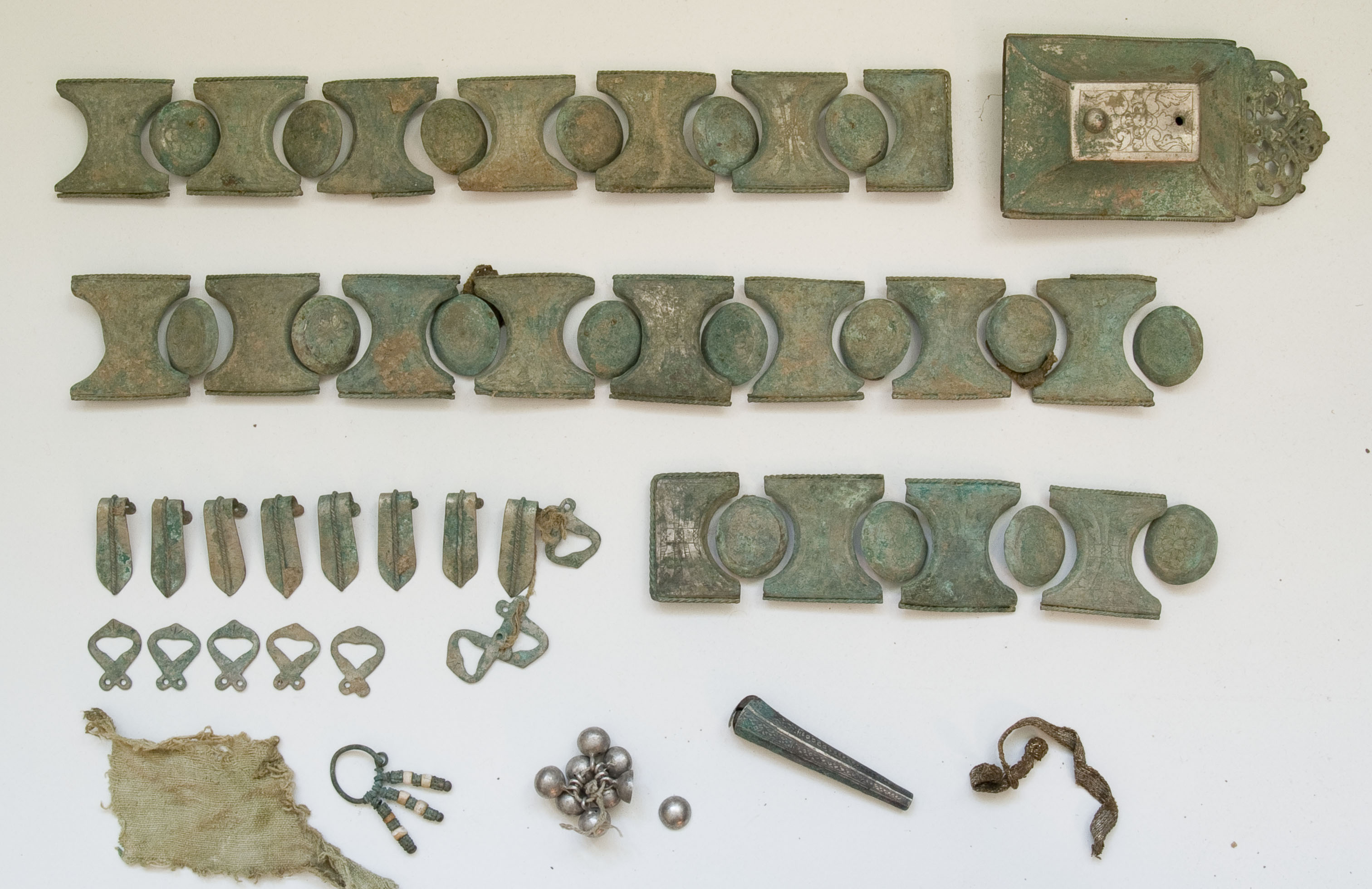 Кожи не было это точно, грунт-глина, возможно кожа перегнила, а с другого материала пояс не мог быть изготовлен?