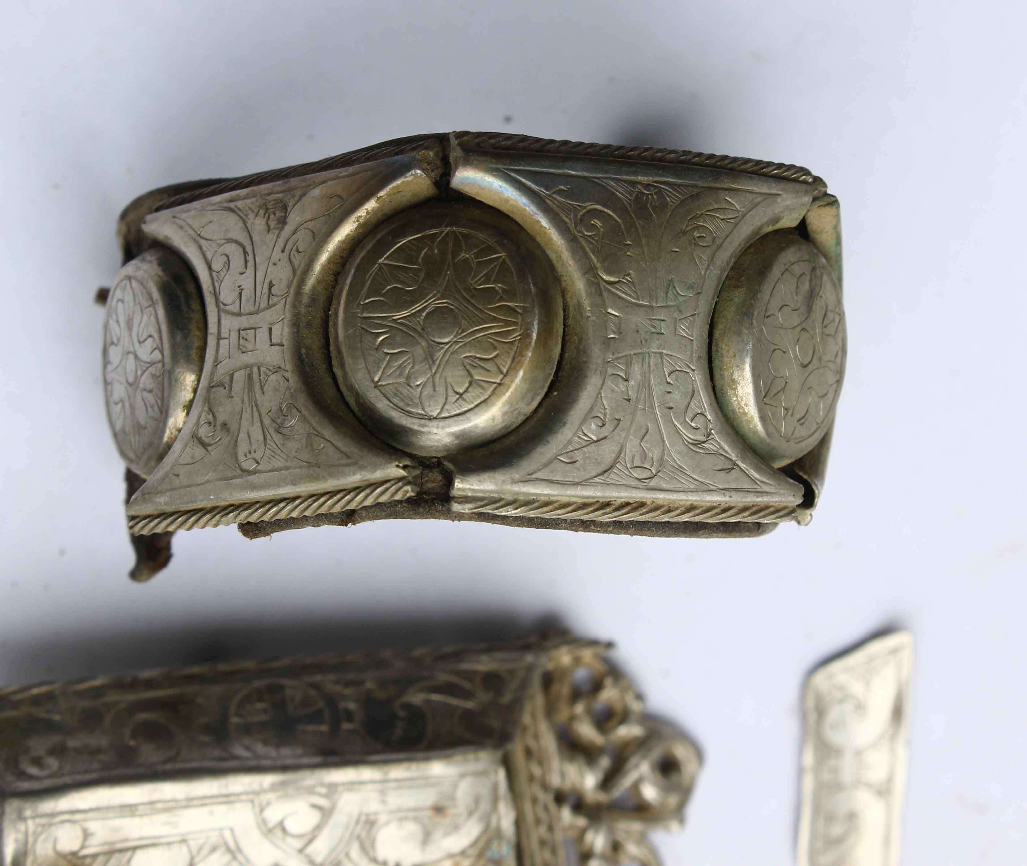 Подобные пояса часто называют «казацкими». Не смотря на то что казаку он не по карману да и не очень удобен в бою, но потрясающе красив. Эти пояса определенно ассоциируются со шляхтой, у казаков могли быть разве что у полковников и прочей высокой старшины, которые сами не редко были шляхтичами. Время от времени их находят как клады. Версию о том что они заложены во время Хмельниччины 1648-1654 SwordMaster считает правдоподобной, тем более кроме деталей пояса находят монеты и другие предметы из серебра. Серебряный пояс от искателя UAntikvar [leech=http://forum.violity.com/viewtopic.php?t=1016842]violity[/leech] 22.07.2013
