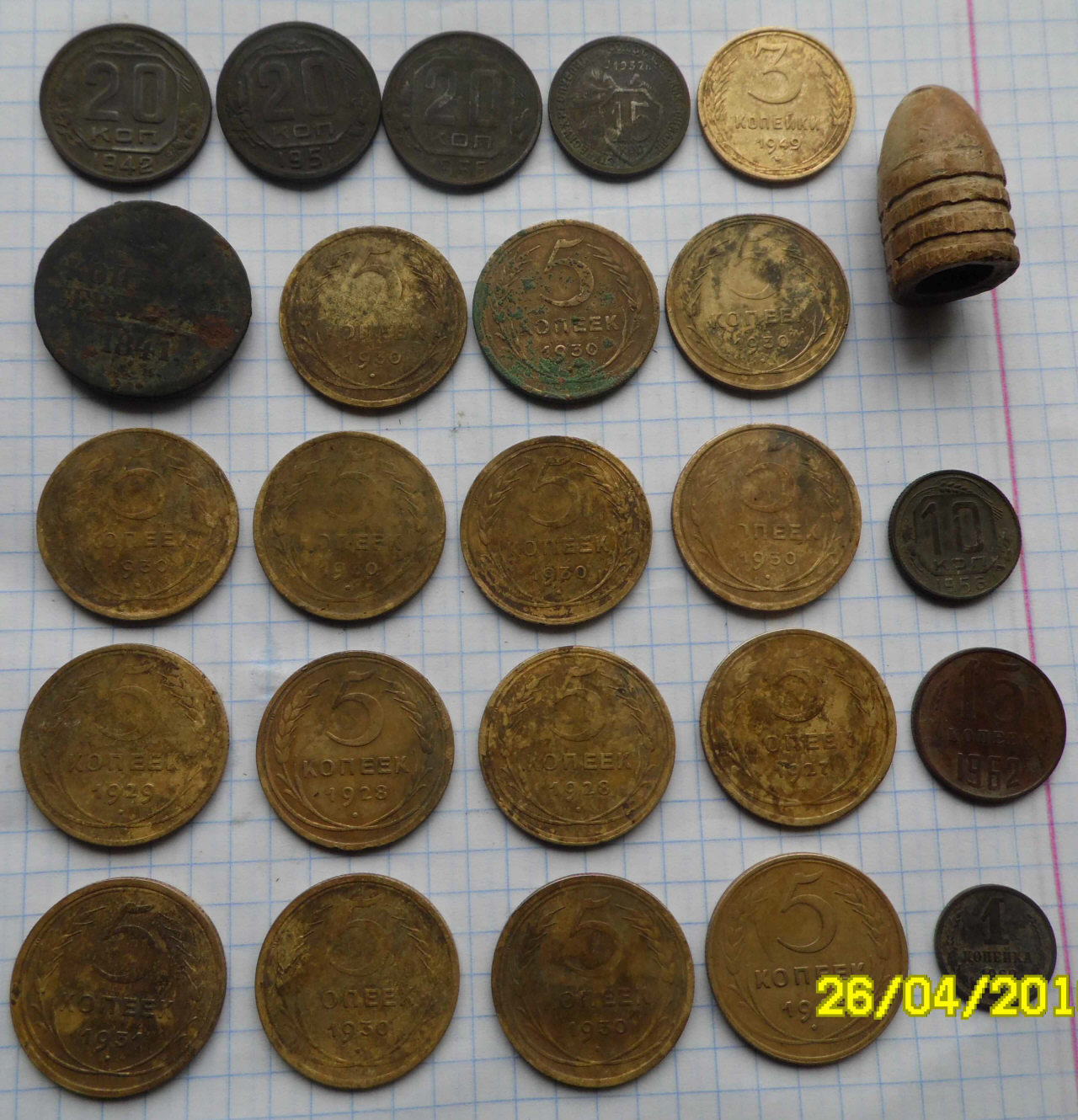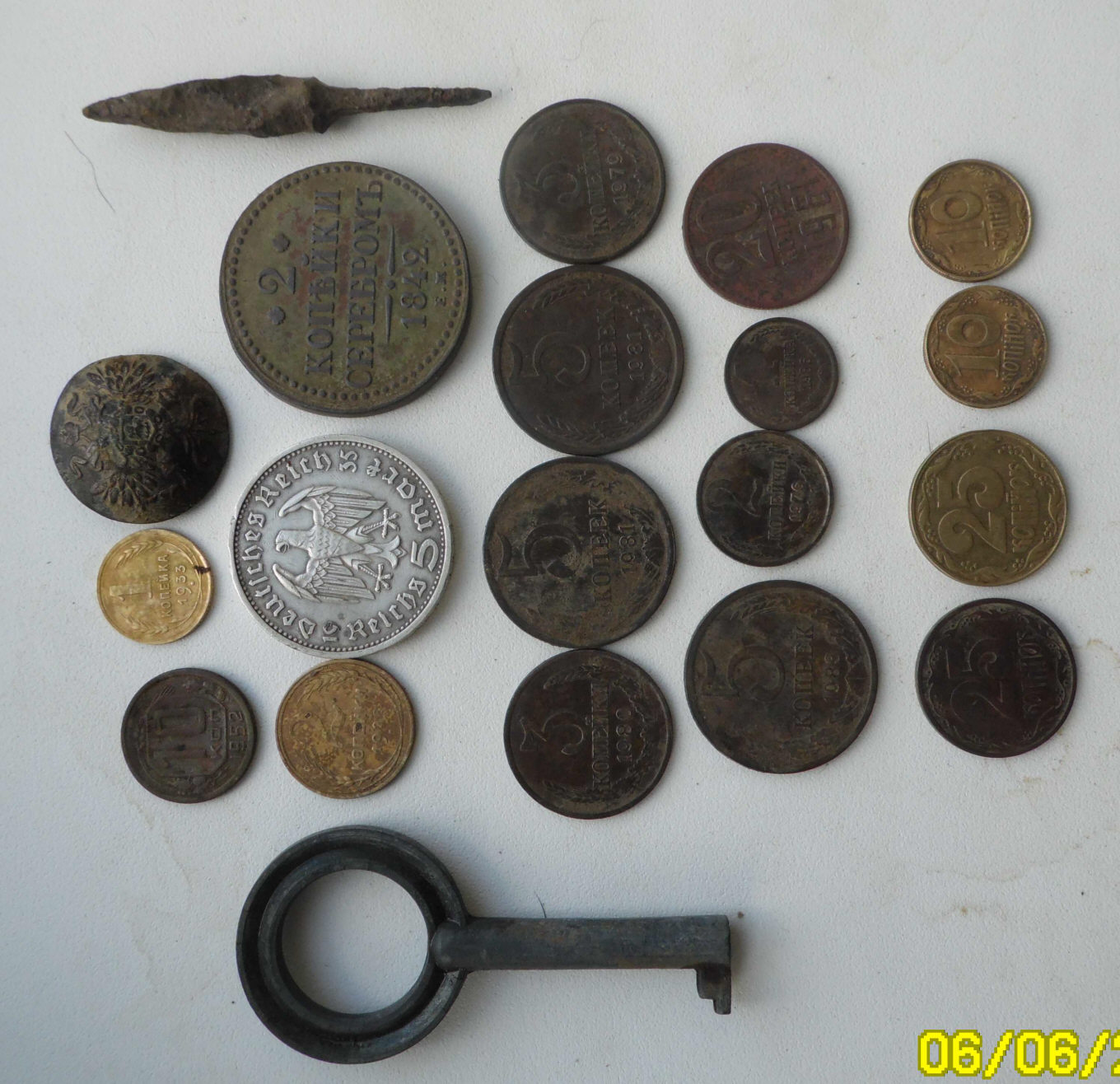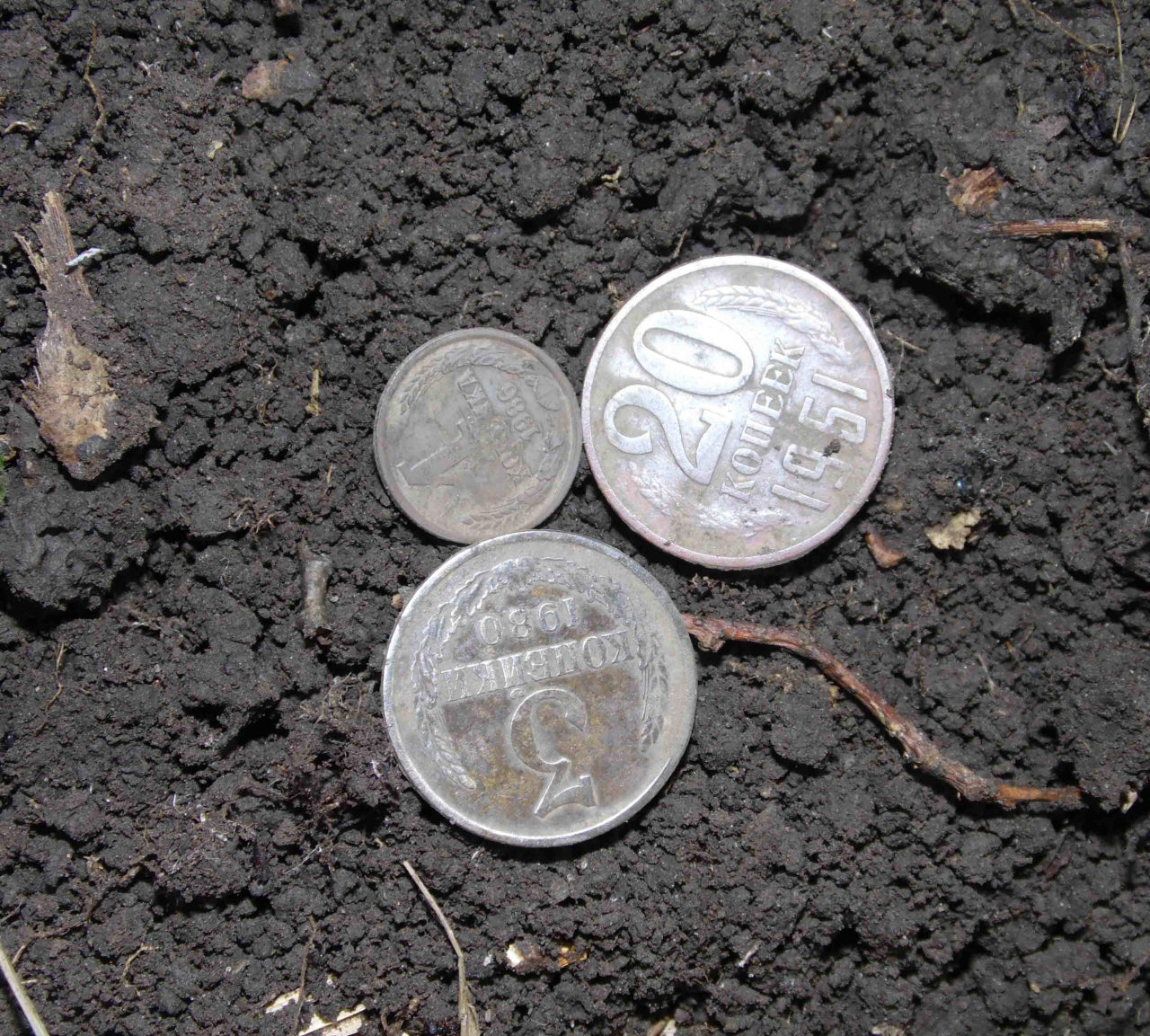 Перепощу и конспект с прошлого отчета, который толянич81 делал чтобы похвастаться находками, в основном монет. Это сделает картину находки несколько полнее и покажет типичные находки, делаемые металлоискателем. пруф