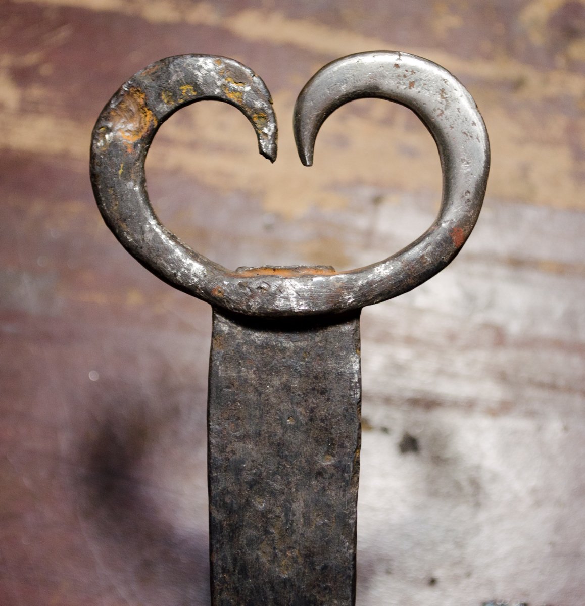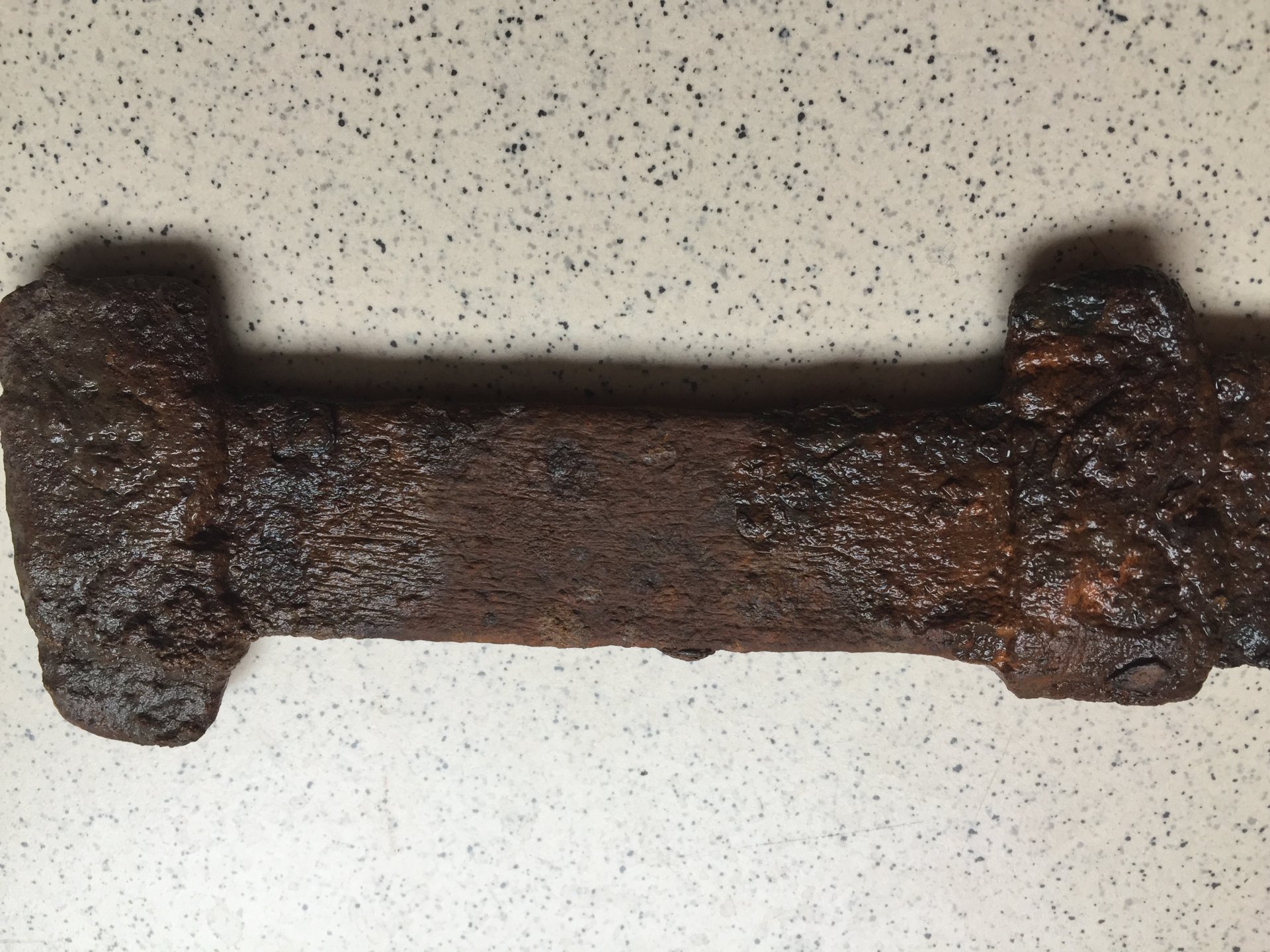 Для восстановления второй половины навершия был подоран подходящий однотипный фрагмент навершия, расчищен подкован и подогнан к рукояти. Аккуратно приварен, шов спилен и завачищен.