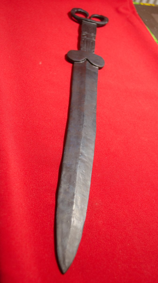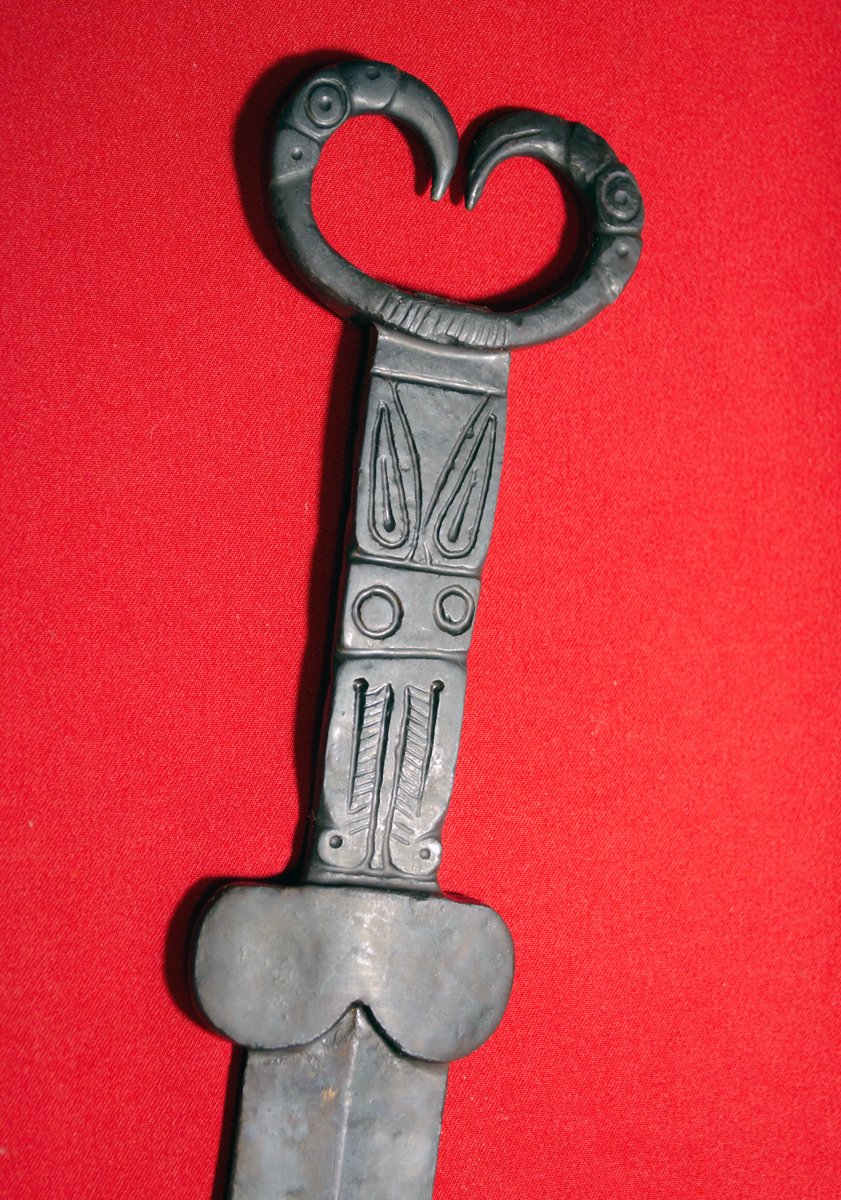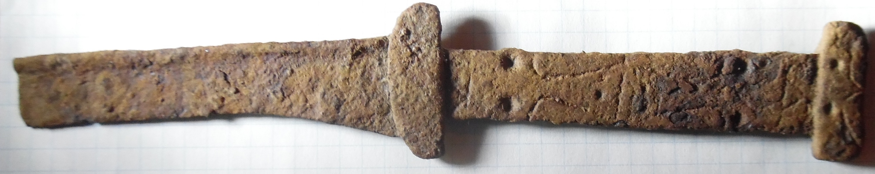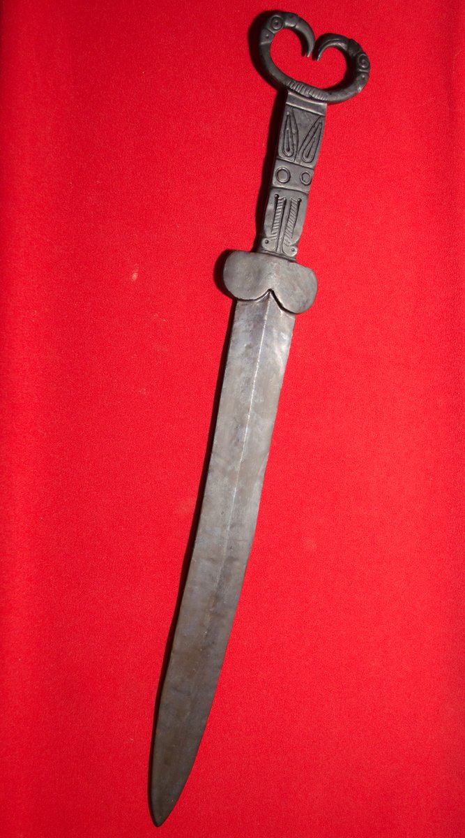 Мне специалисты определили как акинак однолезвийный и встречается довольно часто но кроме фрагментов лезвия я в примерах подобного не увидел. А прямые двухсторонние на виолити присутствуют постоянно.