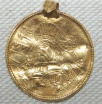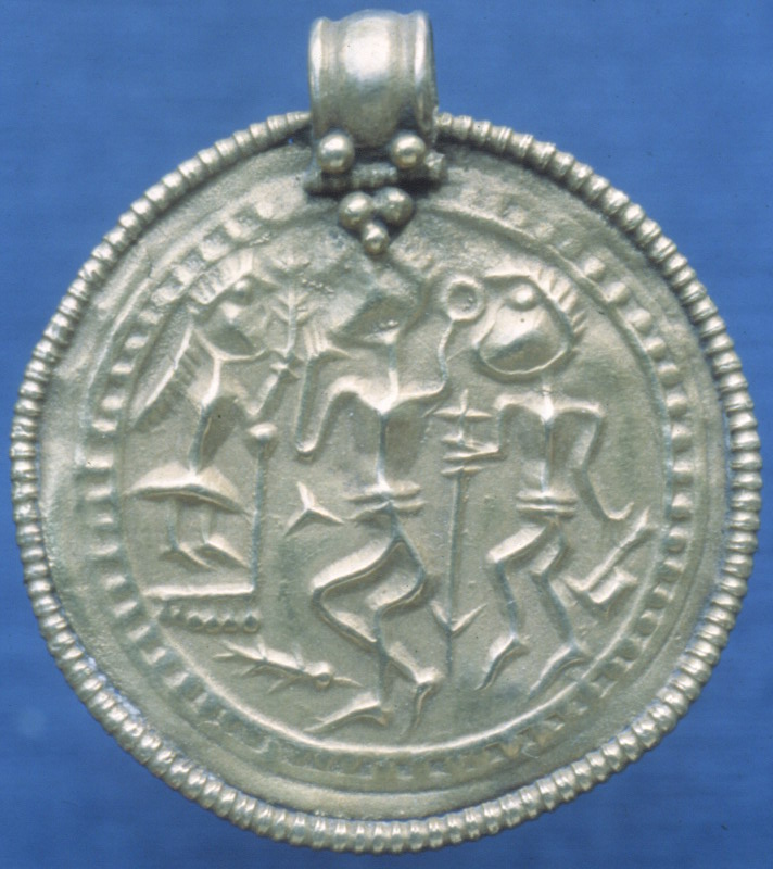 | Рис. 14. Брактеаты типа C и подвески из Сучан (Suchań), неподалёку от города Старгард, Национальный музей в Щецине (photo K. Kowalski) | Рис. 15. Брактеат типа C из городища Wapno, неподалеку от Wągrowiec, Музей доисторического периода и ранней истории, Берлин (photo A. Bursche). | Рис. 16. Брактеат типа B из Zagorzyn, не подалёку от. Калиш, Landesmuseum Württemberg. (photo U. Klein). |