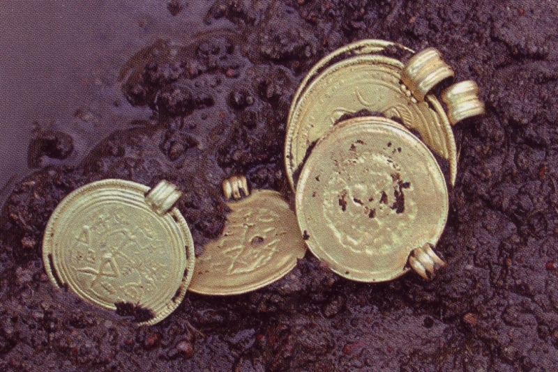 | Рис. 17. Брактеат тип D | Рис. 18. Находка брактеатов на городище Sorte Muld II, остров Борнхольм, Дания. | |