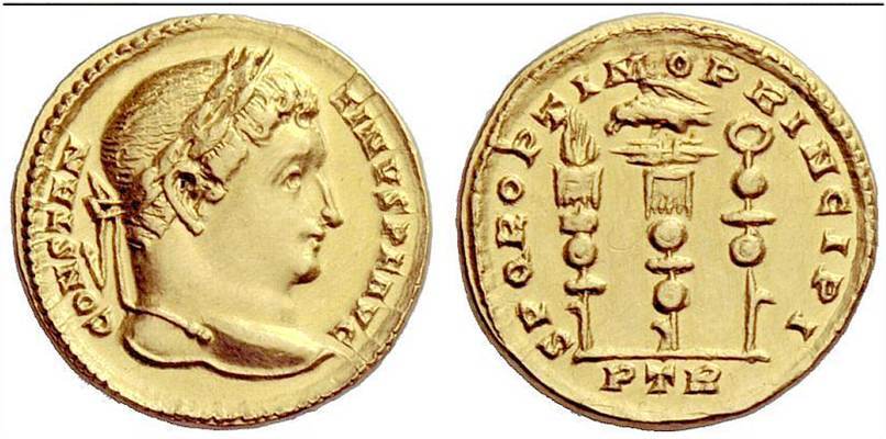 | Рис. 20. Солид Константин I (Constantin I), Рим | Рис. 21. Солид Константин I (Constantin I), Трир |