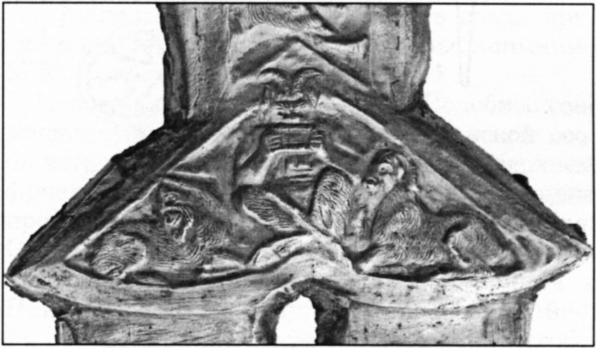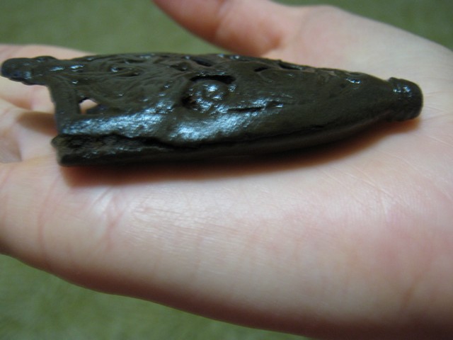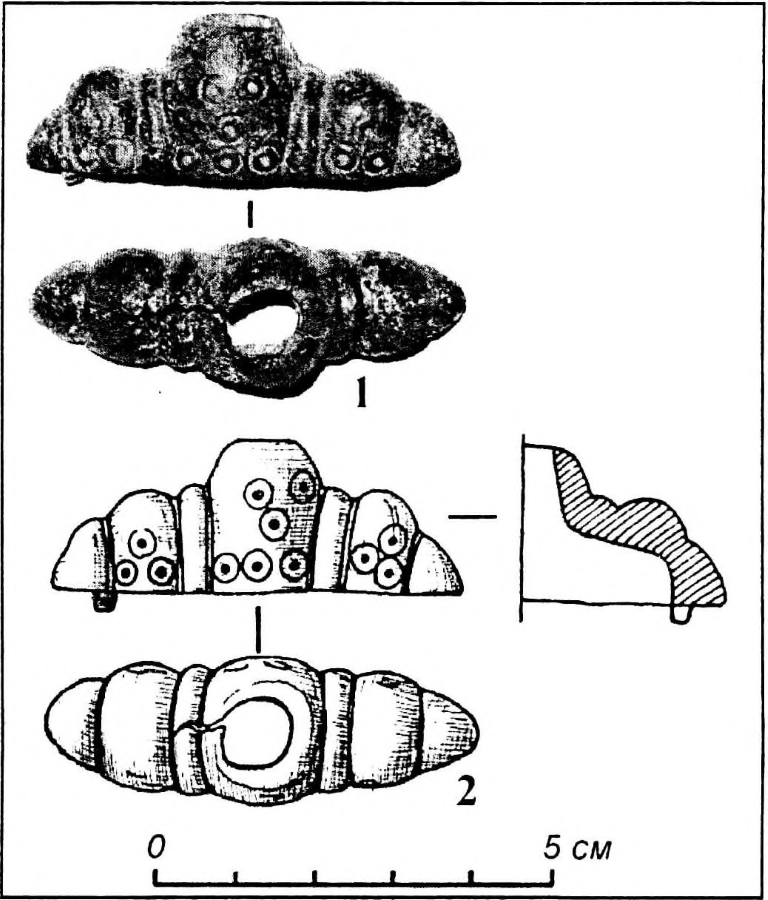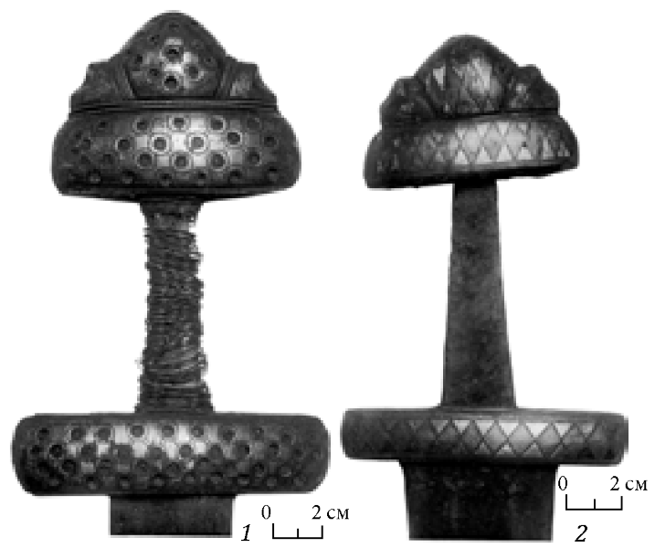 Деталь бронзового навершия рукояти средневекового меча, которая была обнаружена на Черновском городище первой половины XIII в.