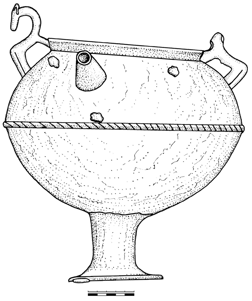 Скифский бронзовый казан 5-3 в до н.э.Серед різноманітних категорій інвентарю скіфської культури особливе місце посідають бронзові литі казани. Як і так звана «скіфська тріада», що включає специфічні зразки озброєння, кінського спорядження і своєрідний «звіриний стиль» в образотворчому мистецтві, вони виступають ще однією яскравою ознакою матеріального комплексу цієї спільноти. Бронзові казани використовувалися скіфами впродовж всього панування їхньої культури — з VII по ІІІ ст. до н. е. Ця категорія виробів була поширена і в інших кочовиків раннього залізного віку Євразії, але мала свої специфічні відмінності. Вперше термін «казан» до наукового обігу ввів В. Флоринський у 1888 р. та остаточно закріпився в літературі наприкінці ХІХ ст. у працях І.І. Толстого та Н.П. Кондакова. З того часу на бронзові литі казани звертають увагу всі дослідники скіфських старожитностей, особливо з огляду на те, що ця категорія інвентарю в історіографії розглядається не тільки в якості виразного маркера культури, а й як показник соціального статусу похованого.ЗберегтиЗберегти