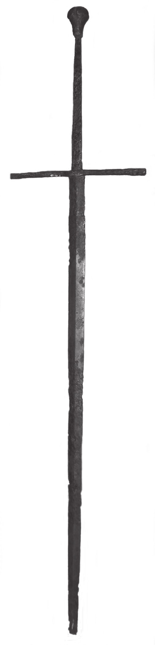 Средневековый меч из республики БеларусьРассматриваемый нами экземпляр хранится в собрании Национального исторического музея республики Беларусь. Его учетное обозначение – НИМ РБ КП 1723. Он поступил 15 апреля 1957 г. по акту № 155 из Белорусского государственного музея истории Великой Отечественной войны, где хранился в фонде «Белорусский государственный исторический музей». В этот фонд входили предметы из довоенного собрания Белорусского государственного музея, предметы, переданные их других музеев для восстановления коллекций исторического музея. Этот меч числится среди реэвакуантов (учетное обозначение по описи возвращенных из Германии ценностей - № 3958), т.е. можно предположить, что он из довоенного собрания музея; следовательно, может быть, был обнаружен на территории Беларуси. Большей информацией, касающейся рассматриваемого образца, музей не располагает, так как большая часть довоенных инвентарей была утеряна или уничтожена.