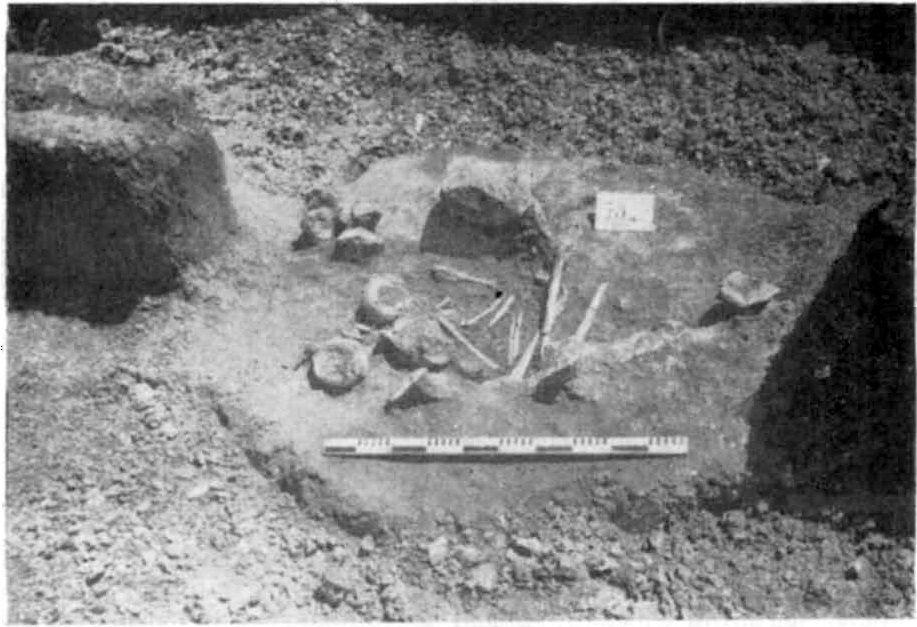 В 1958 та 1959 рр. на могильнику (рис. 1) була розкрита площа в 3788 м2 і виявлено 156 скорчених тілопокладень пізньобронзового часу, 2 тілопальних поховання ранньозалізного періоду і 10 тілопокладень перших століть н. е.1