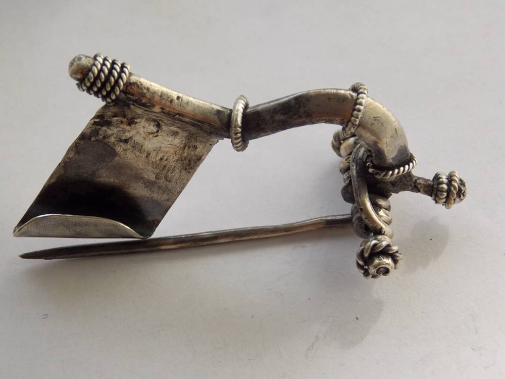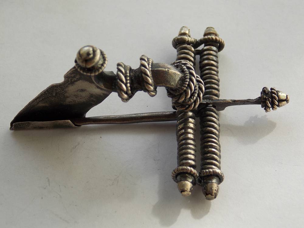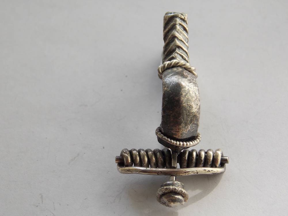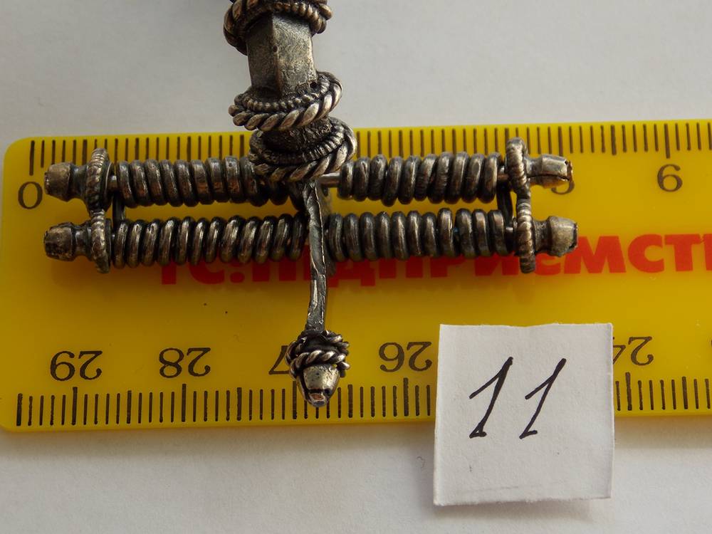 Фибула – металлическое приспособление для застегивания одежды, дополнительно служит украшением, возможно: оберегом.