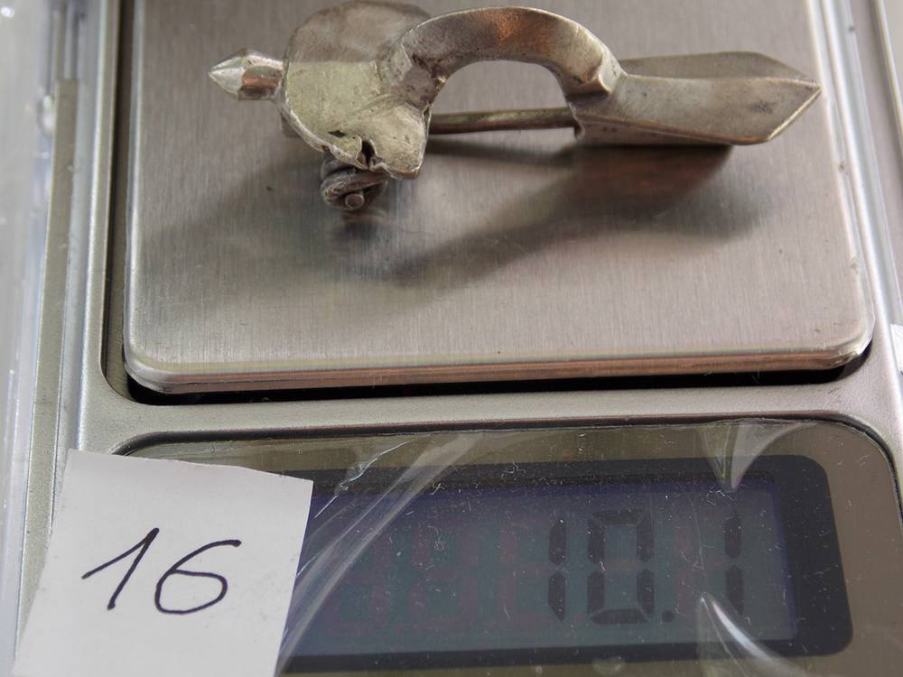 Период употребления большинства этих застежек для одежды III - нач. V век н. э. до вторжения гуннов. Найдены на юге и западе Украины по ареалу Черняховской археологической культуры. Что примечательно коллекционер разместил фото фибул на фоне линейки и фото на весах, что даёт возмоность узнать точный вес и размеры предметов.