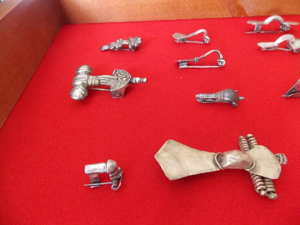 Находки представлены: арбалетоподобными, T-образными, P-бразными (их еще называют коленчатыми), двупластинчатые и зооморфные фибулы. Есть еще и так называемая «Чудовищные» фибулы (№11, №14 и №34), выделяющиеся яркими позолоченными дисками. Есть и нетипичная фибула с двумя иглами.