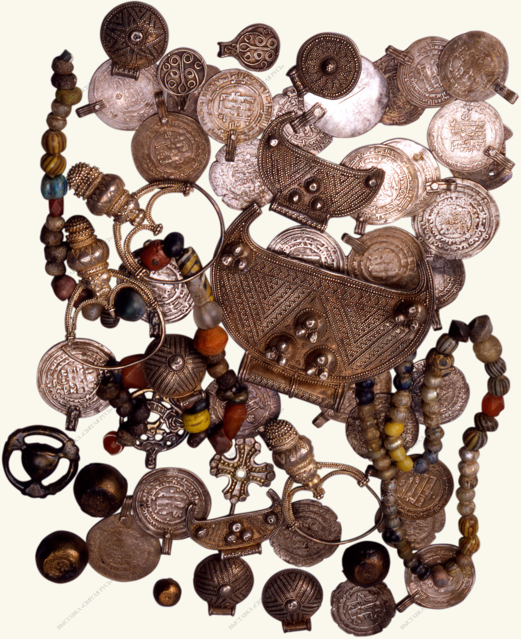 Драгоценные свидетельства самого раннего периода отечественной истории – это прежде всего археологические памятники, сокровища древних кладов и курганов, среди которых сохранились предметы, относящиеся как к традиционной языческой, так и к нарождавшейся христианской культуре, а также исключительные по мастерству исполнения произведения декоративно-прикладного искусства, византийские и западноевропейские монеты и ювелирные изделия, позволяющие судить о широких связях Руси с другими странами.