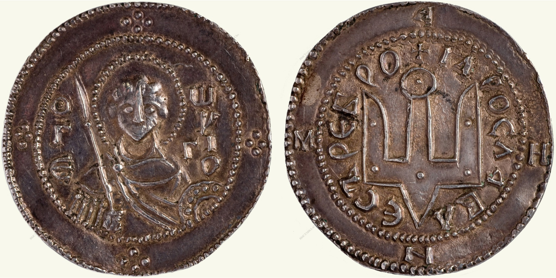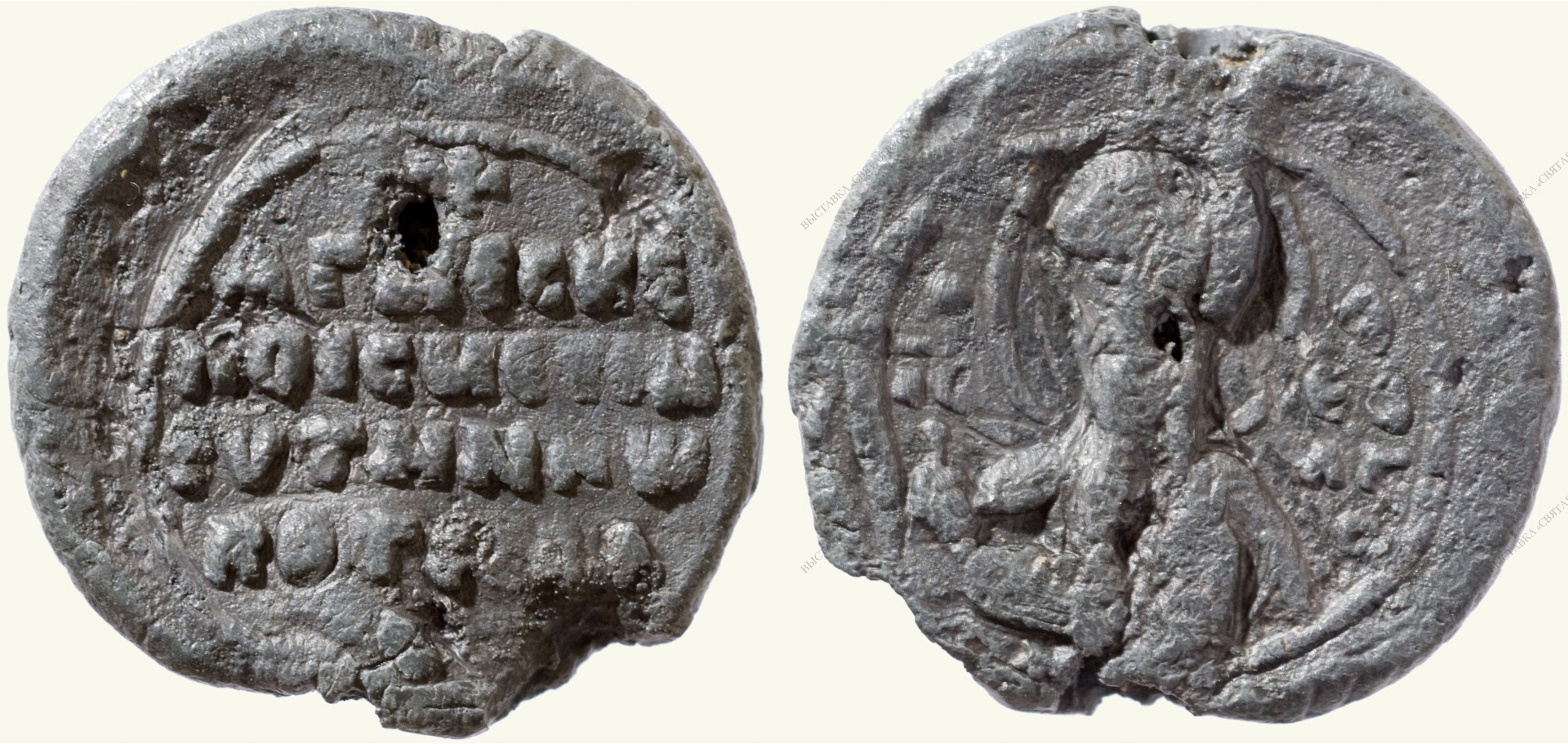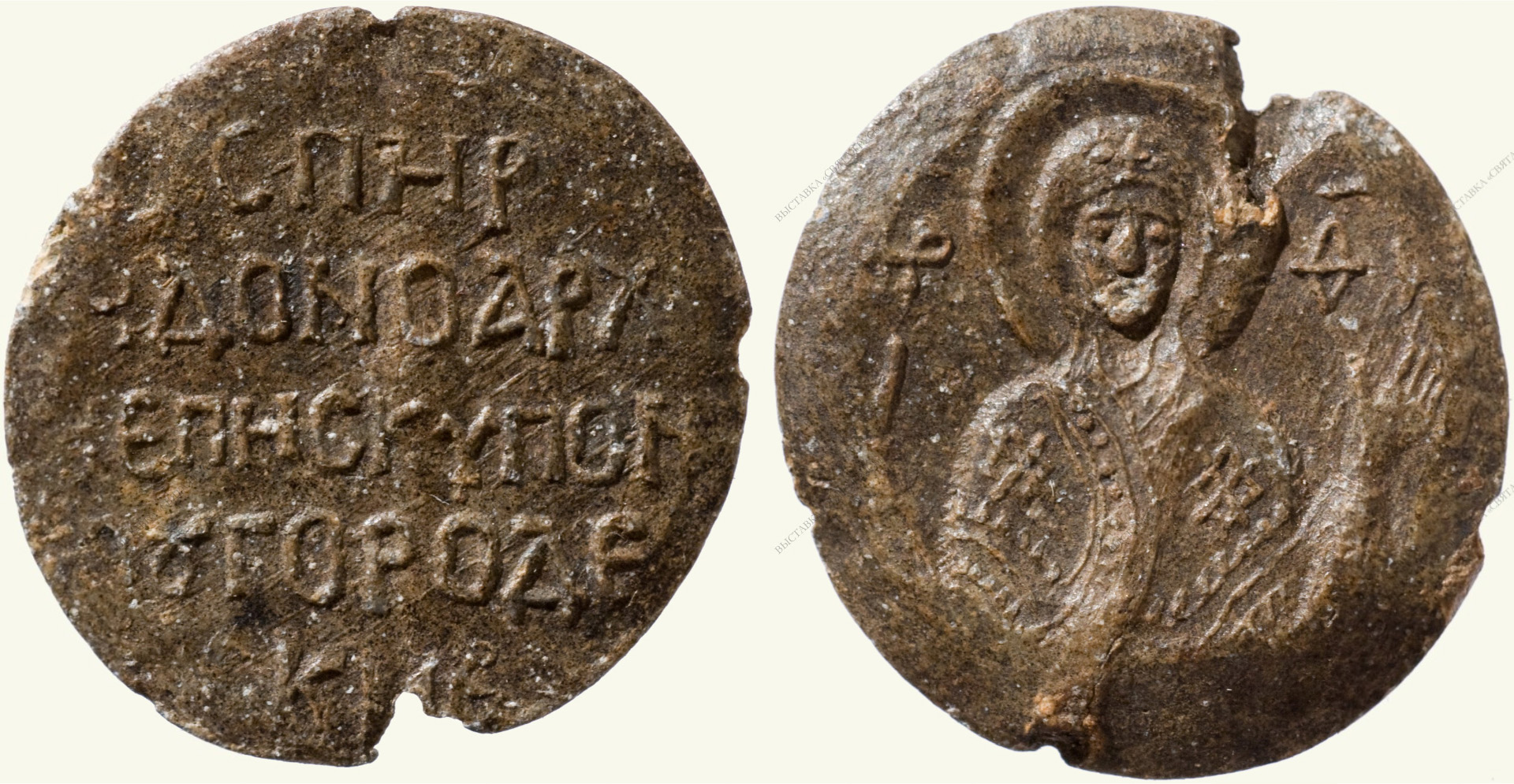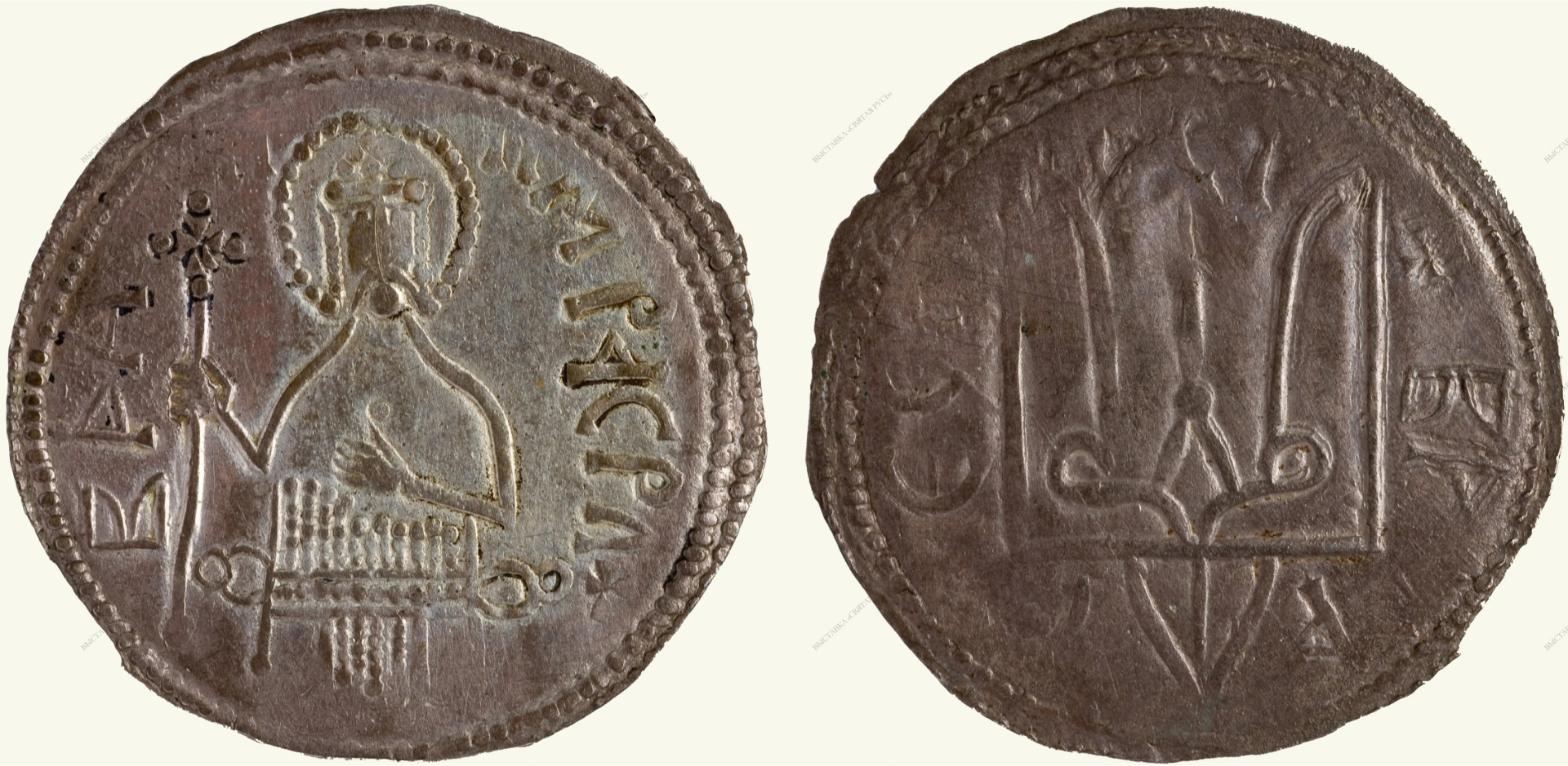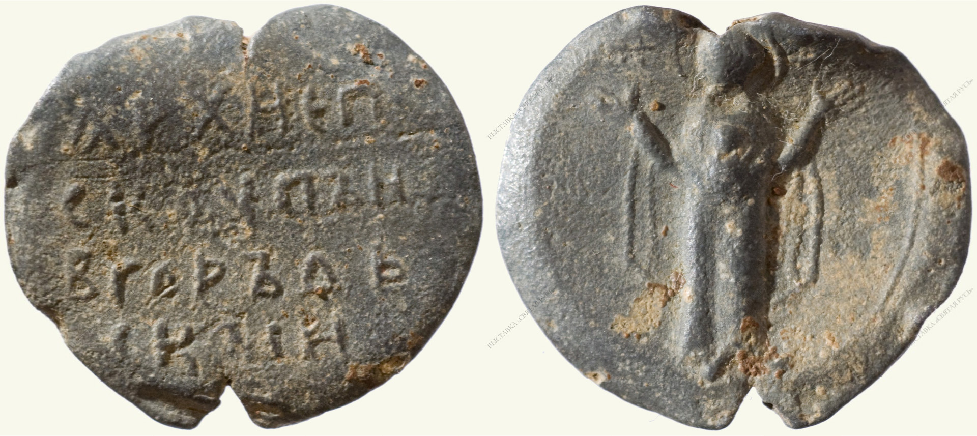 Надпись на лицевой стороне: АРХИЕП(И)/СКОΥПЪНЪ/ВГОРЪДЬ/СКЫИ (архиепископ новгородский