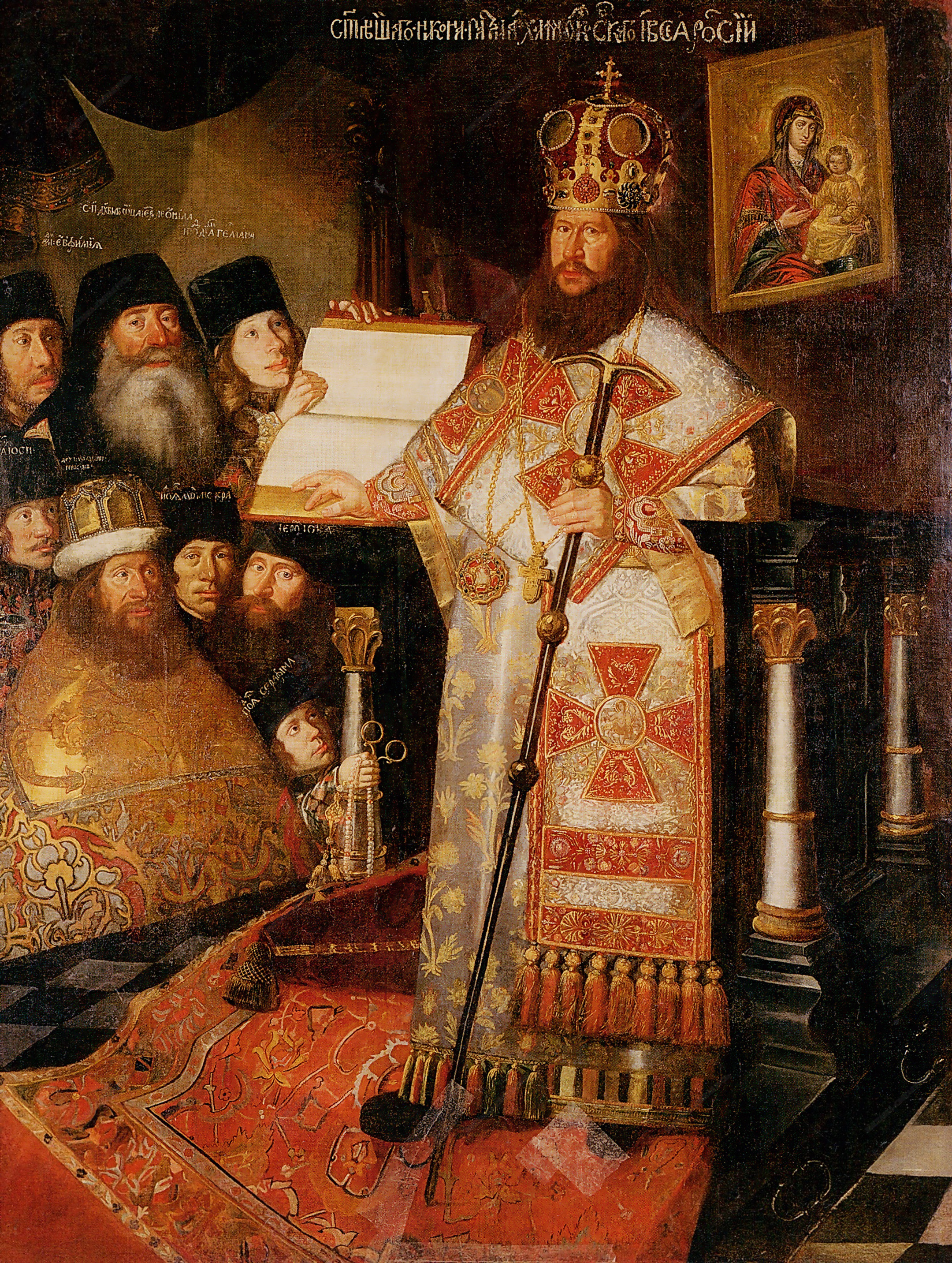 | Тесный союз православной веры и княжеской, а затем и царской власти, унаследованный от Византии, неизбежно придавал особый священный смысл «всякой власти, данной от Бога», и обуславливал исключительную роль христианских государей в земной истории. Особое значение эти идеи приобретают на Руси со второй половины XV века, в связи с падением Константинополя, с одной стороны, и возвышением и укреплением Московского государства – с другой. Важнейшая тема отношений Церкви и русского государства от княжеского периода до времени правления Алексея Михайловича и Петра I осмыслены в этом разделе через документы, рукописи, иконы, произведения прикладного искусства и литургическую утварь. Среди предметов утвари – драгоценные царские вклады в храмы и монастыри.