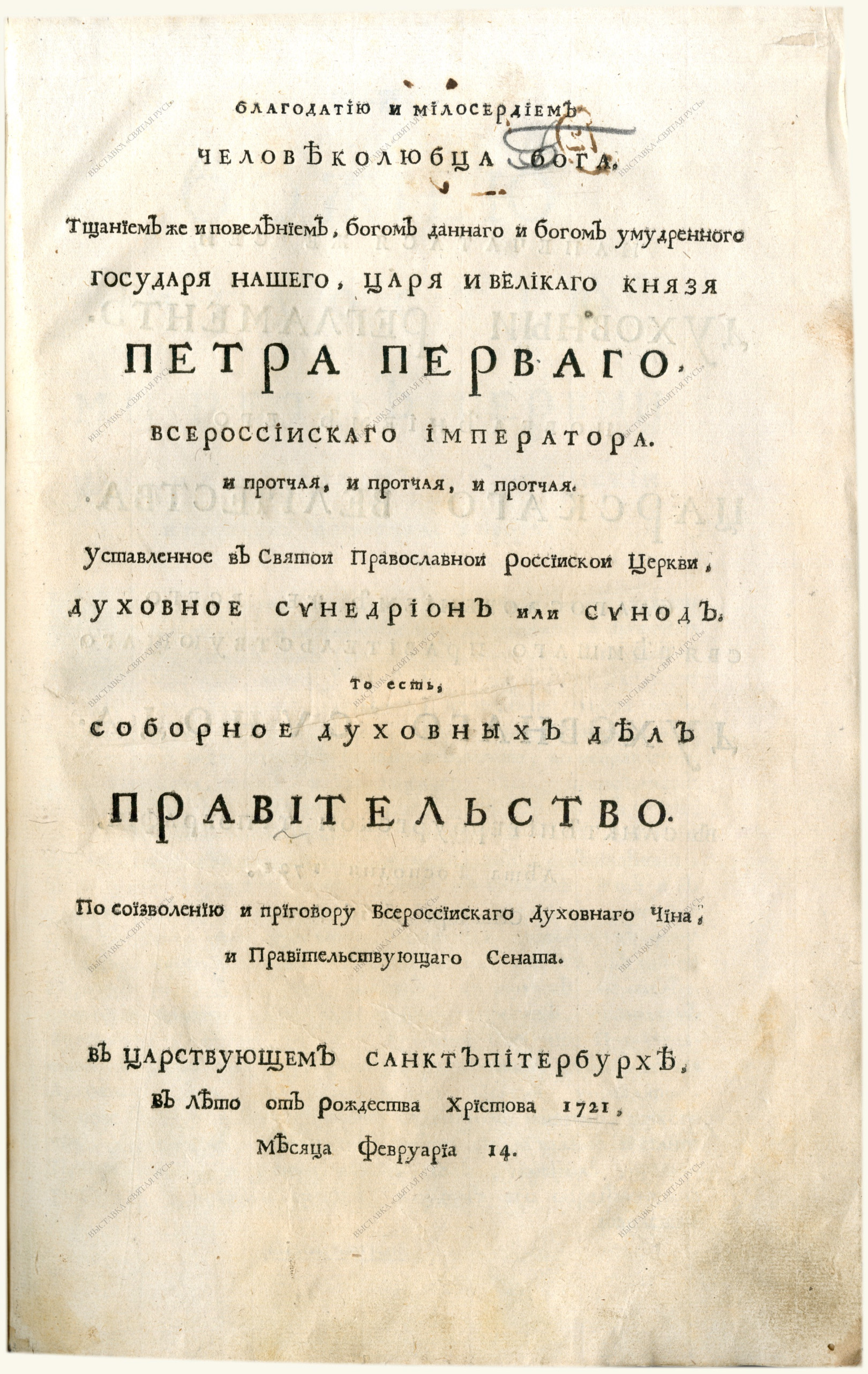 16 сентября 1721 года Санкт-Петербург 27 л. Бумага; печать 31 х 20; разворот – 41 РНБ инв. П–606а, инв. 431