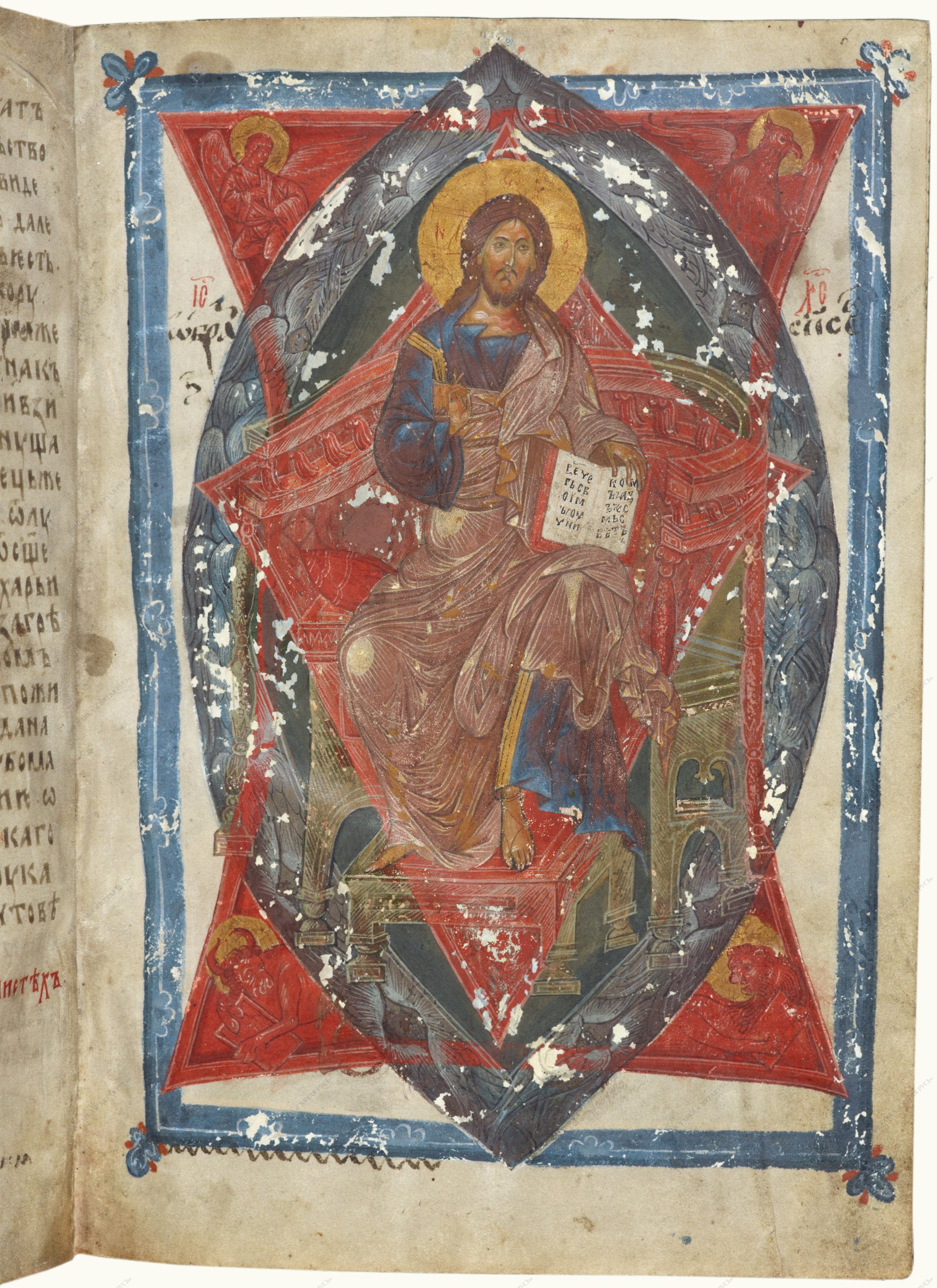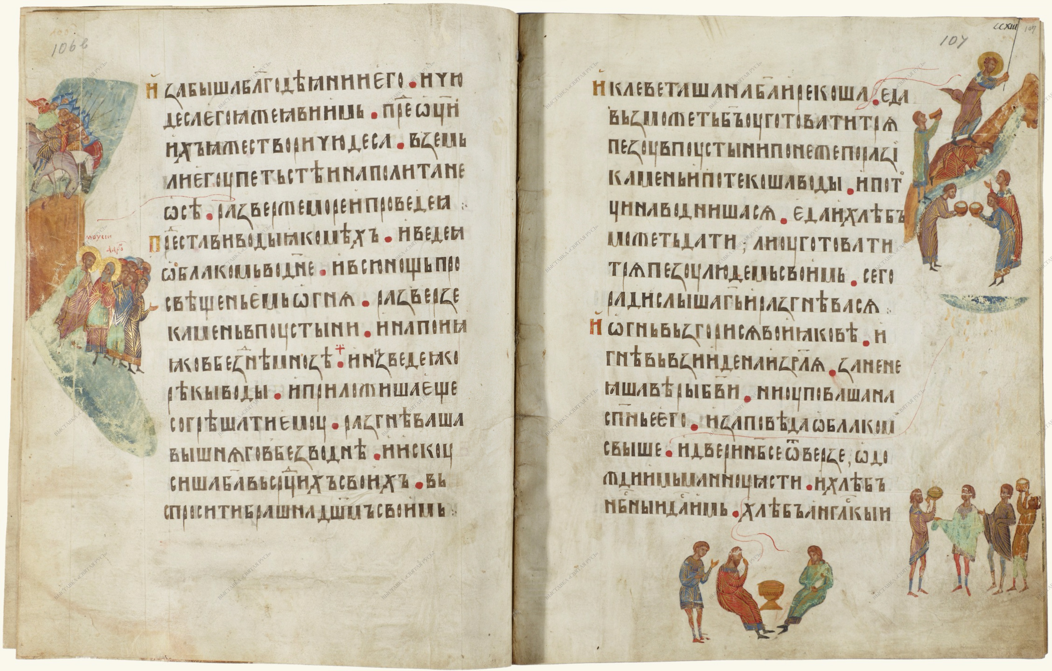 230 л. Пергамен, бумага; чернила, киноварь, темпера, золото; переплет – дерево, бархат