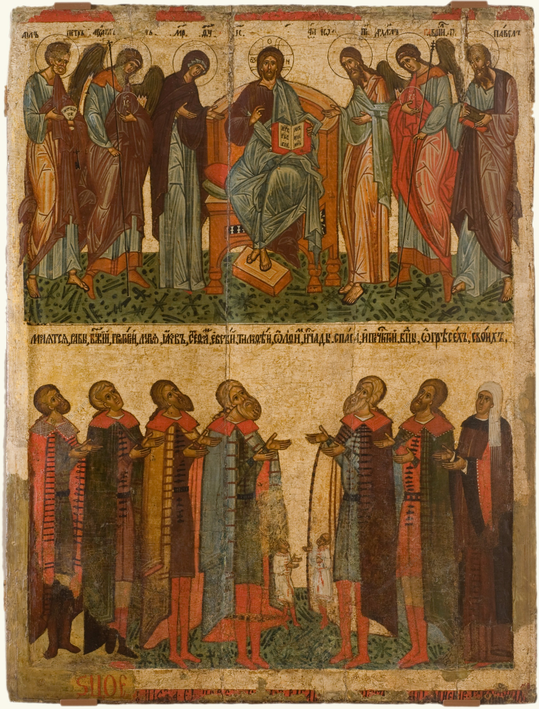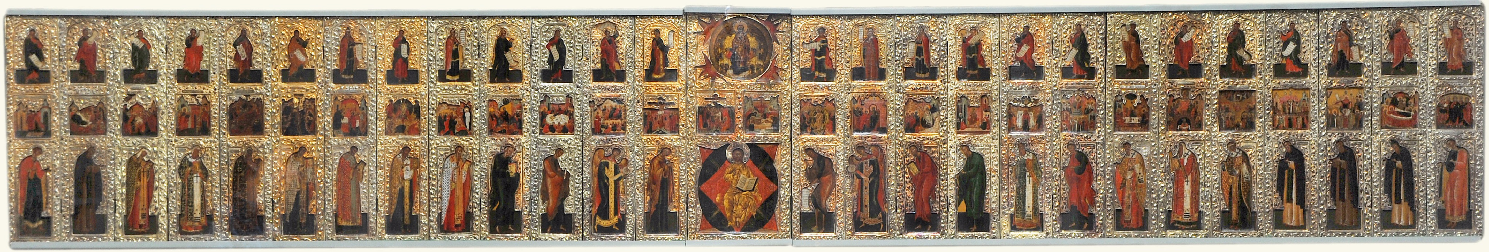В нижней части датирующая надпись в двадцать строк с указанием имени заказчика – дьяка Стефана Бородатого
