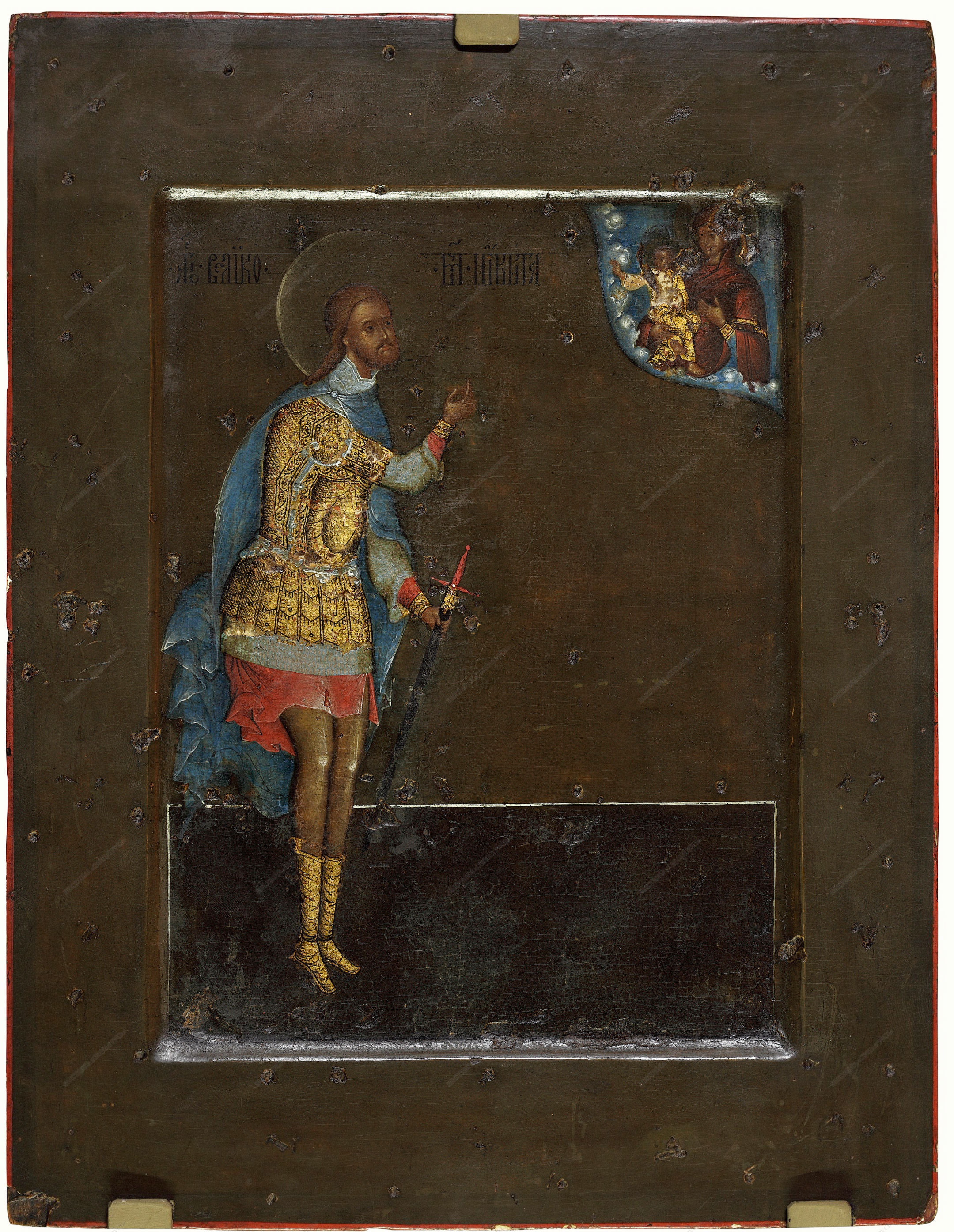 Происходит из часовни святого Варлаама Хутынского на Софийской стороне в Новгороде, где в 1849 году была обнаружена Г.Д. Филимоновым. Позднее находилась в церкви Николы Кочанова (святого Пантелеймона)