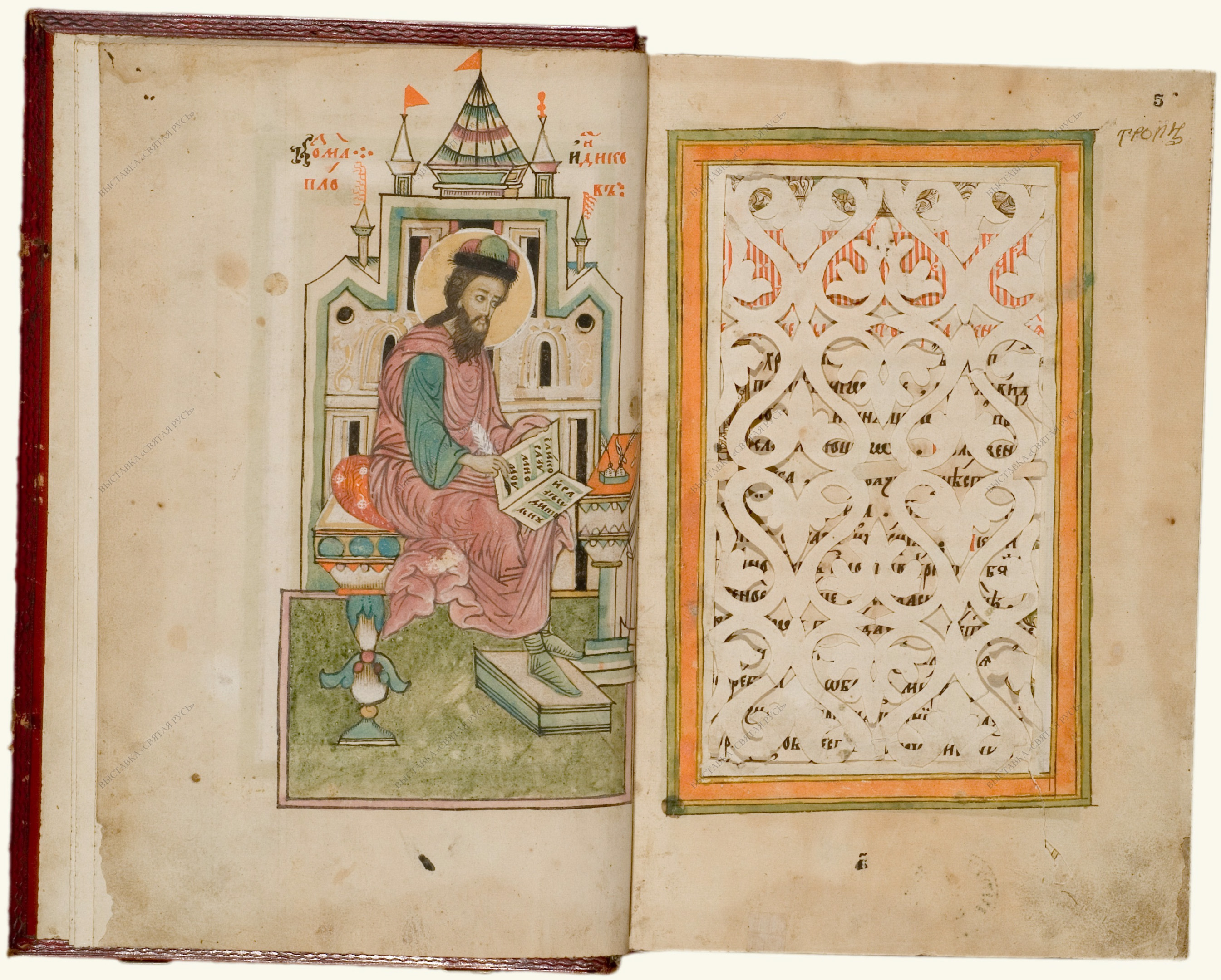 Бумага; чернила, киноварь, акварель, темпера; переплет – дерево, кожа