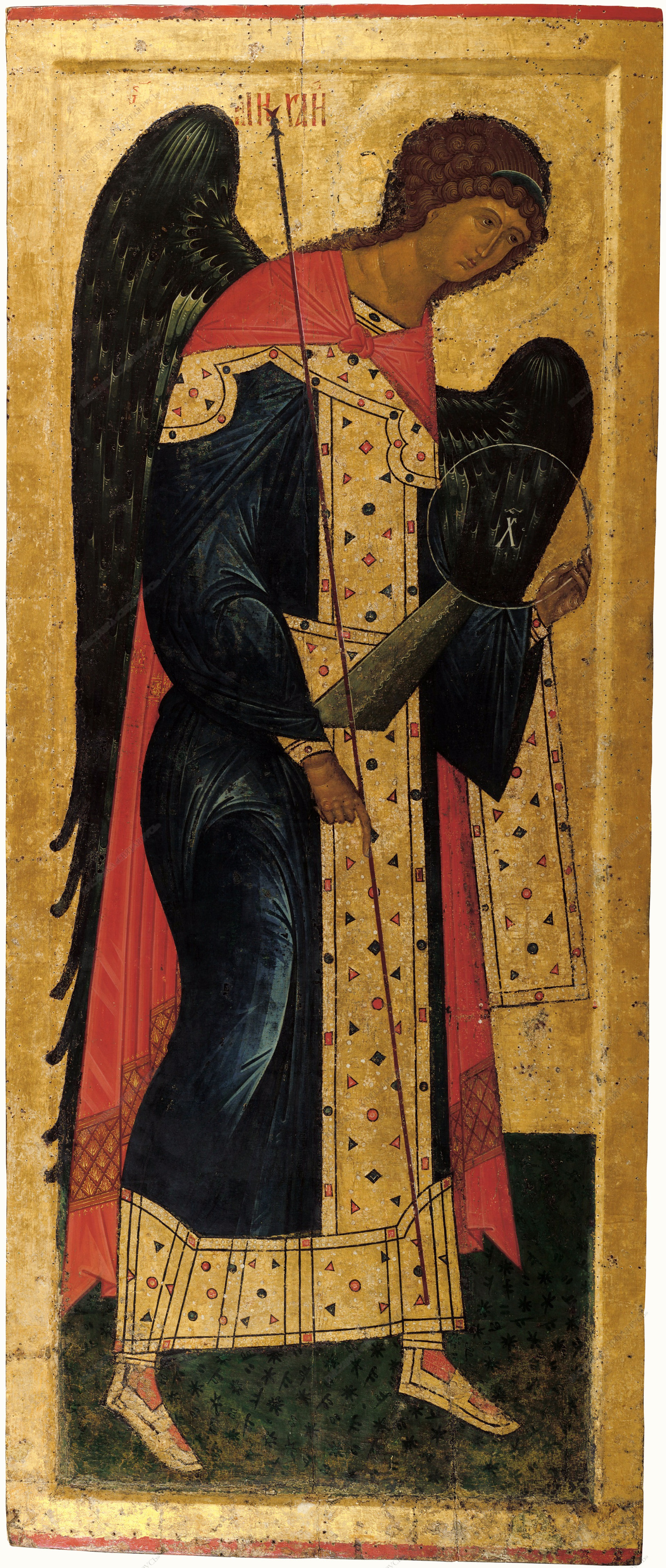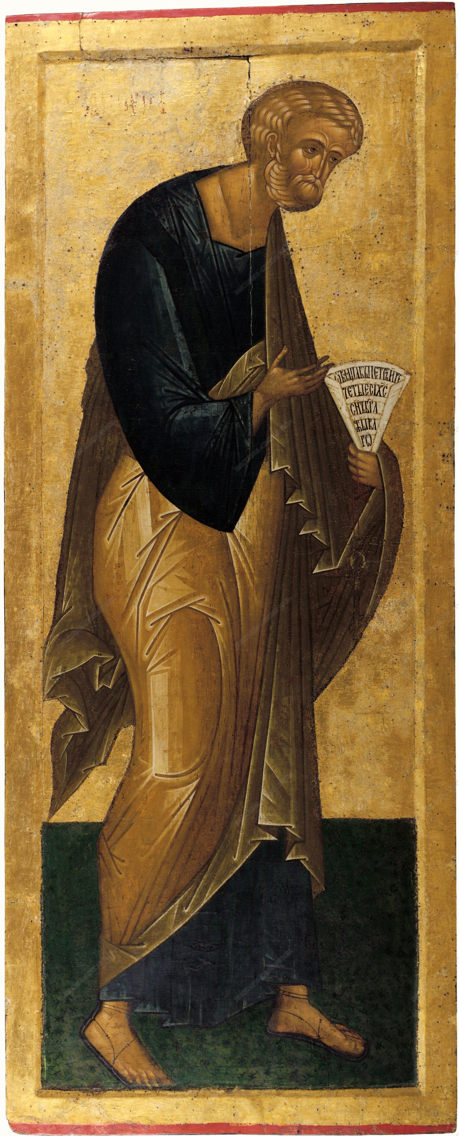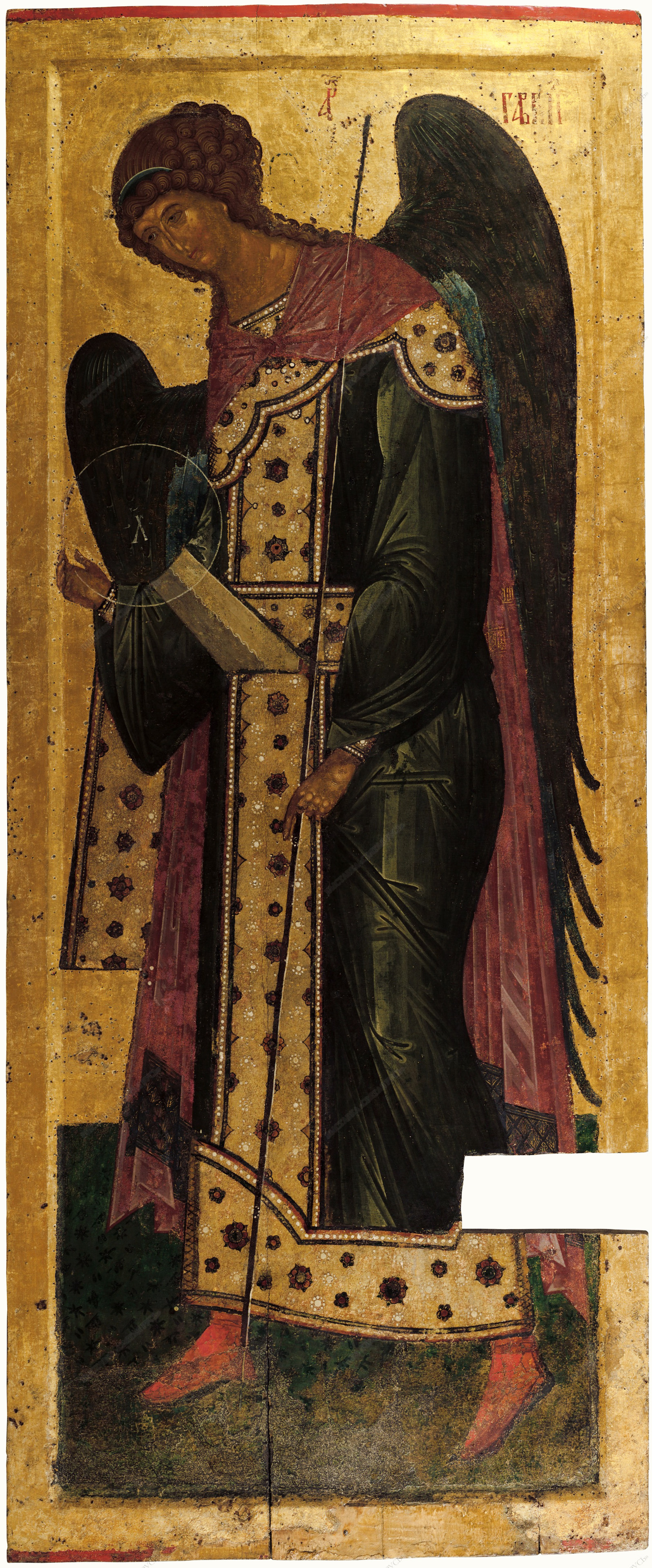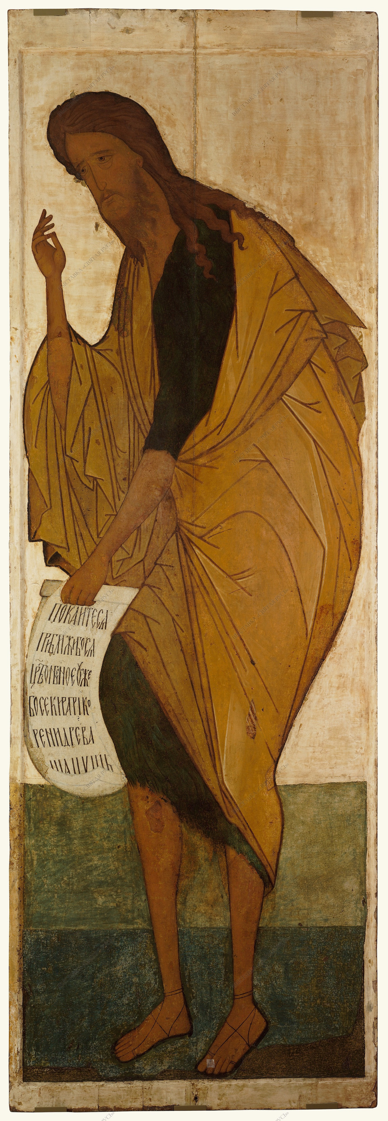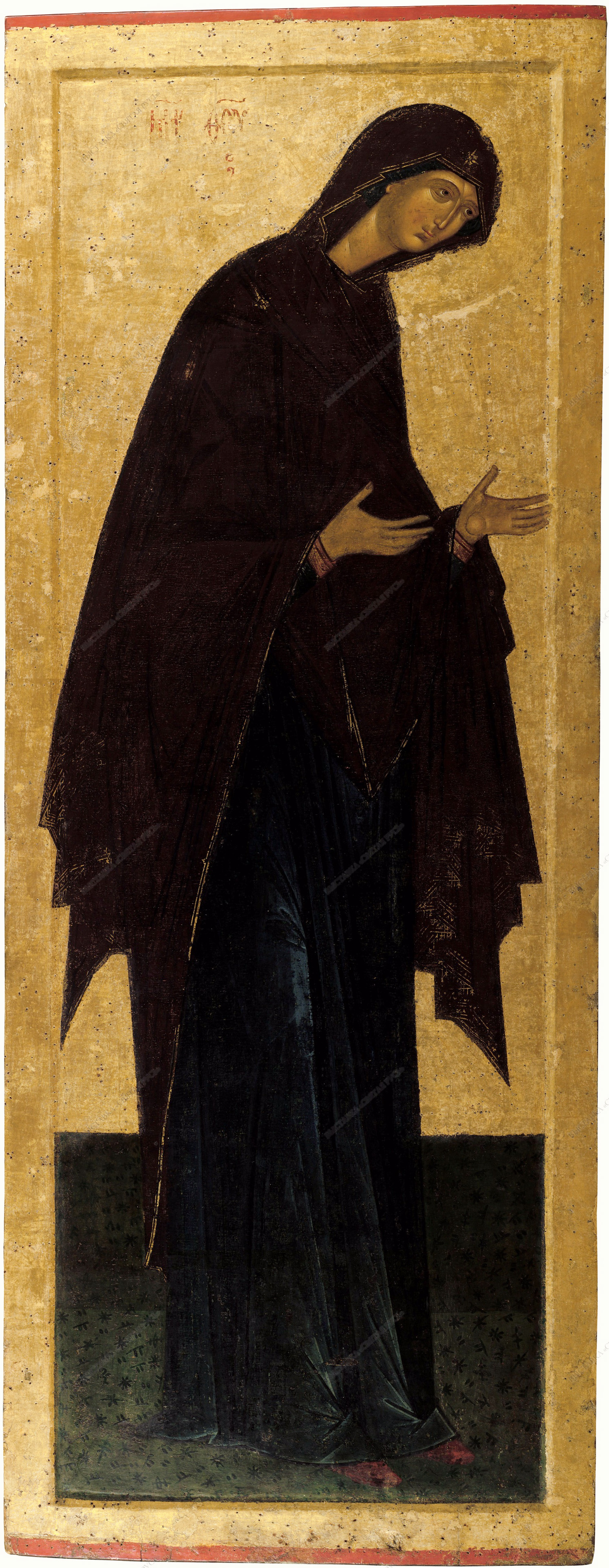 Даниил и Андрей Рублев (?) Около 1408 года Москва Дерево; темпера 313 х 105 Поступила в 1934 году Происходит из иконостаса Успенского собора во Владимире. В 1768 году в соборе был устроен новый иконостас, а старые иконы проданы в село Васильевское Владимирской губернии, где вошли в иконостас сельского храма Реставрация: частично раскрыта в 1933 году в ЦГРМ В.О. Кириковым, полностью в 1934–1935 годах в ГТГ И.И. Сусловым ГТГ инв. 22960