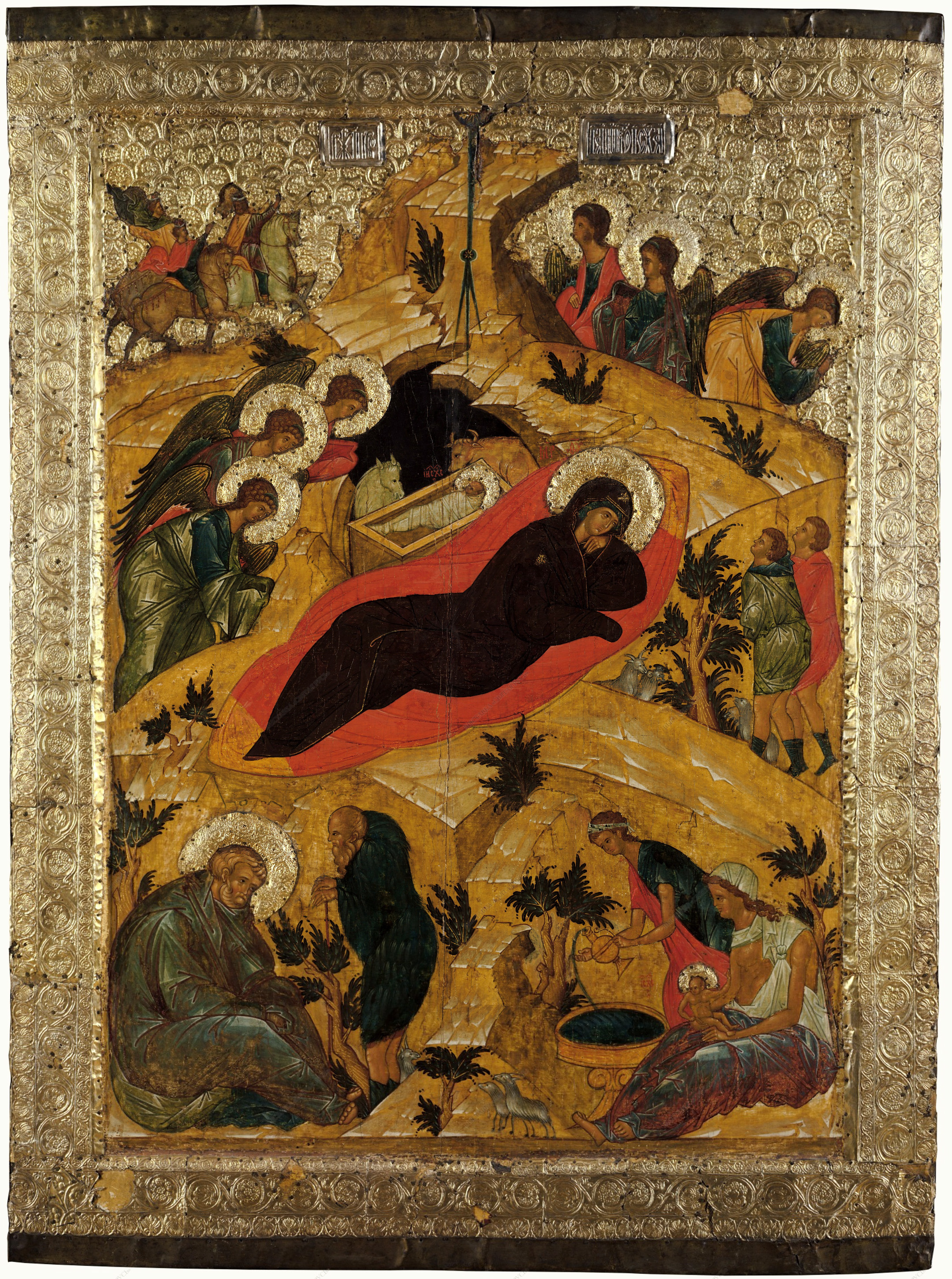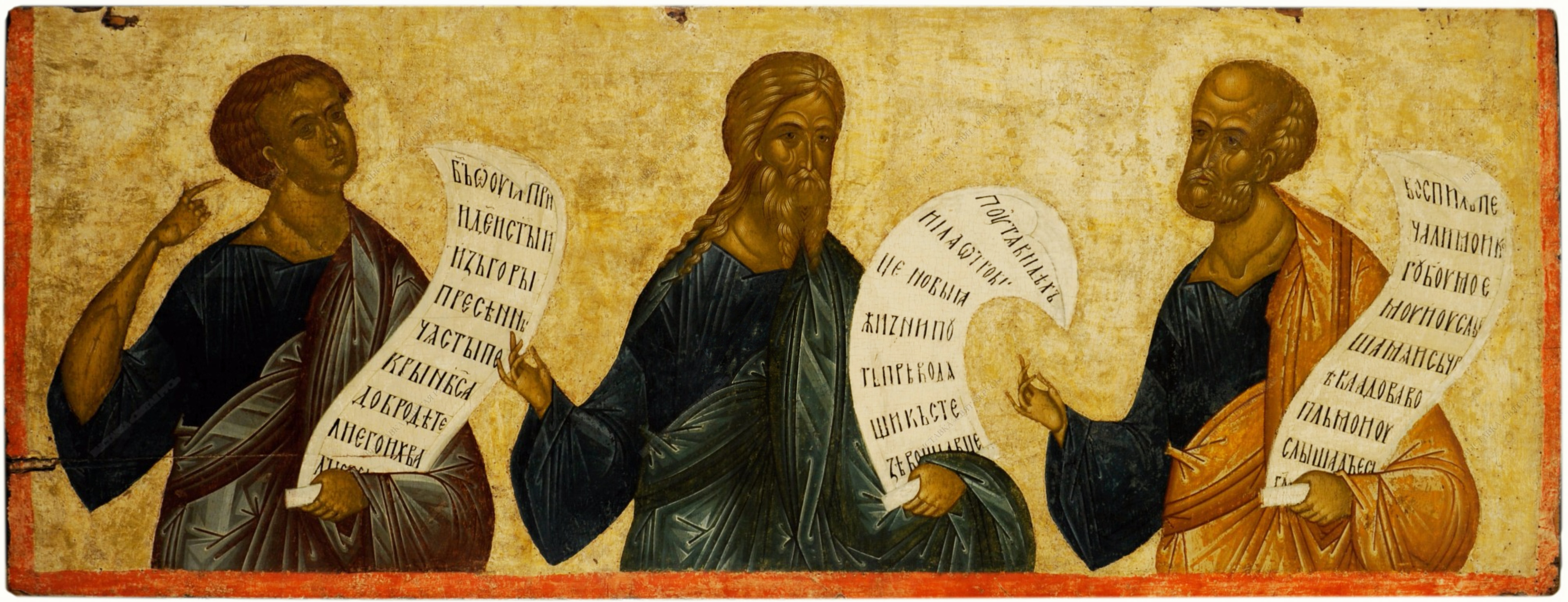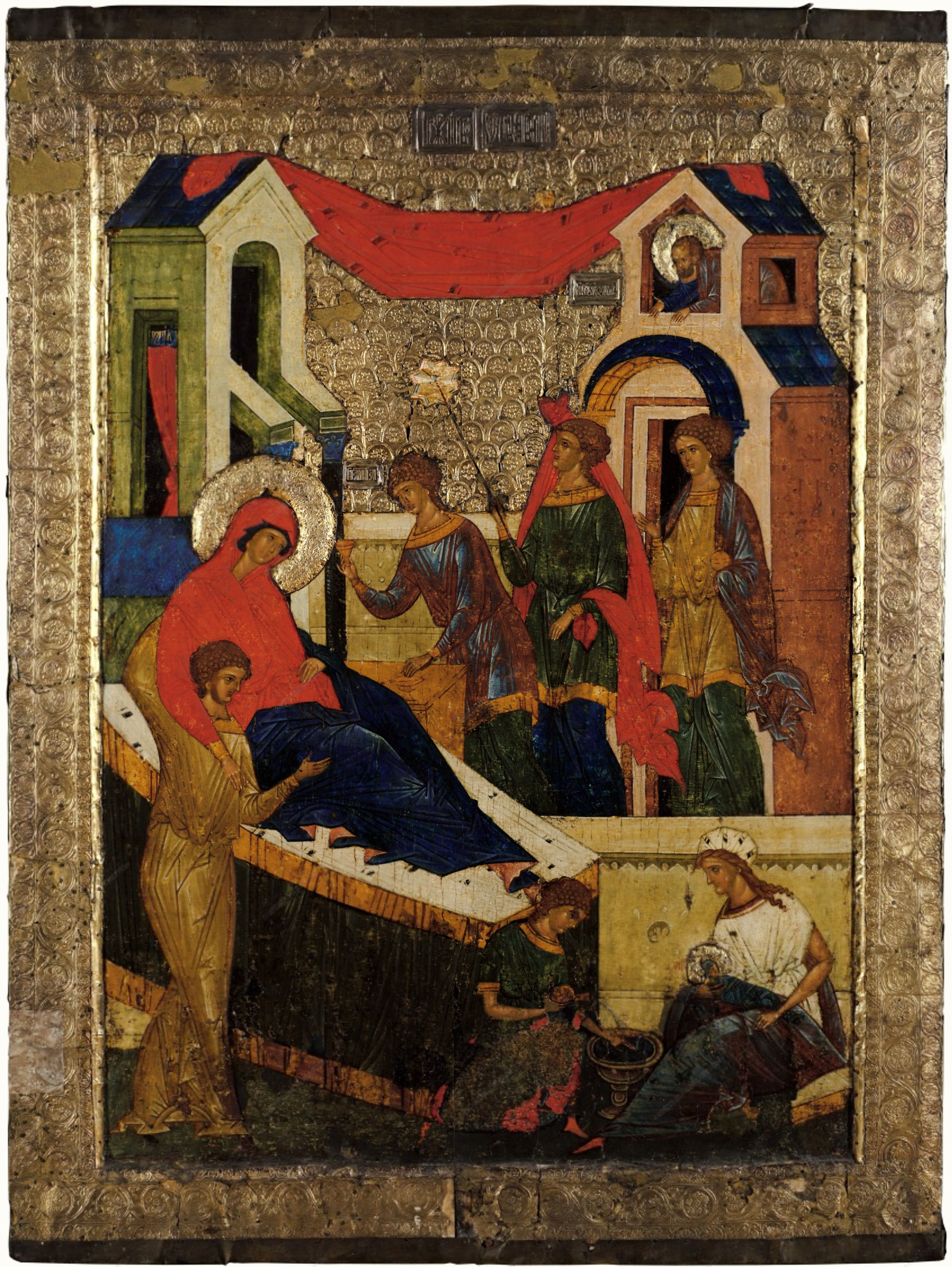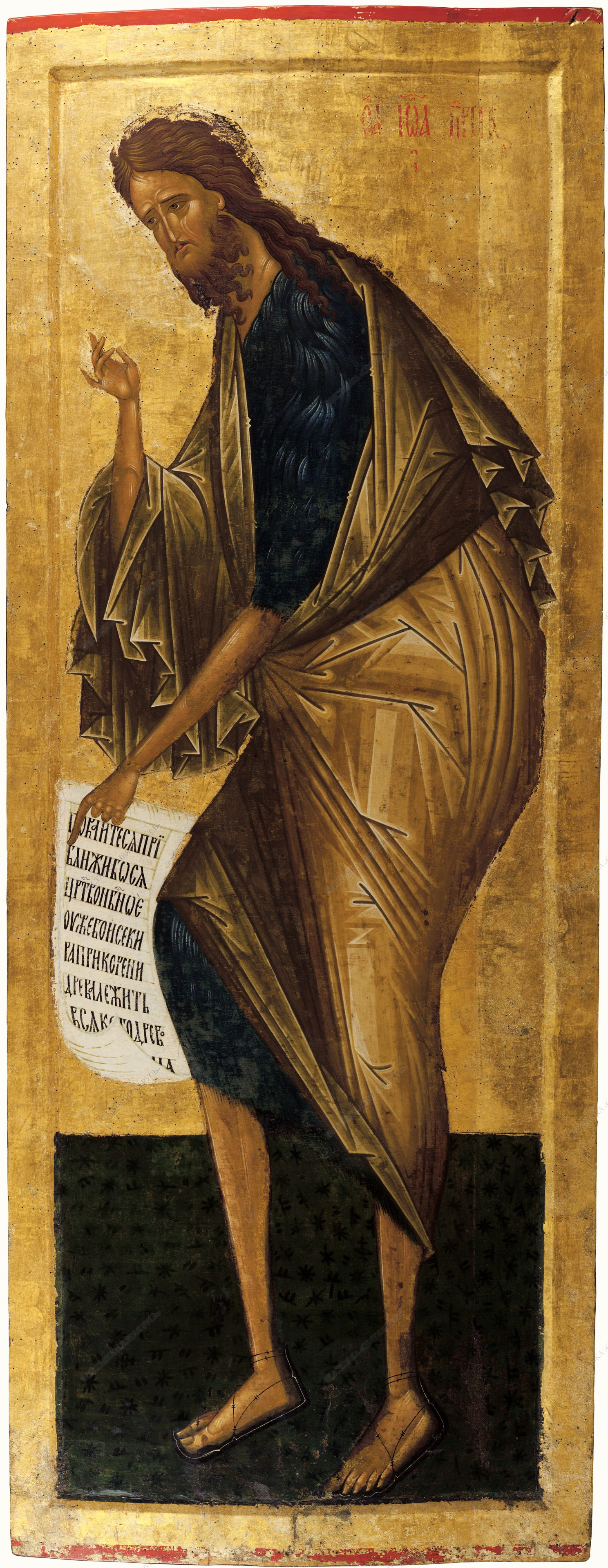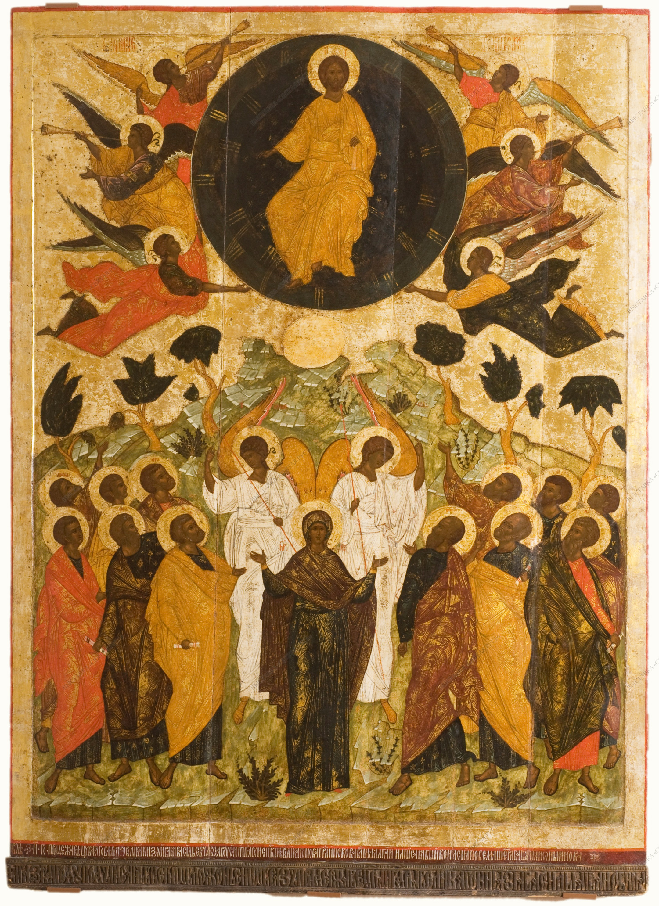 Даниил и Андрей Рублев (?) Около 1408 года Москва Дерево; темпера 313 х 105 Поступила в 1934 году Происходит из иконостаса Успенского собора во Владимире. В 1768 году в соборе был устроен новый иконостас, а старые иконы проданы в село Васильевское Владимирской губернии, где вошли в иконостас сельского храма Реставрация: частично раскрыта в 1933 году в ЦГРМ В.О. Кириковым, полностью в 1934–1935 годах в ГТГ И.И. Сусловым ГТГ инв. 22960