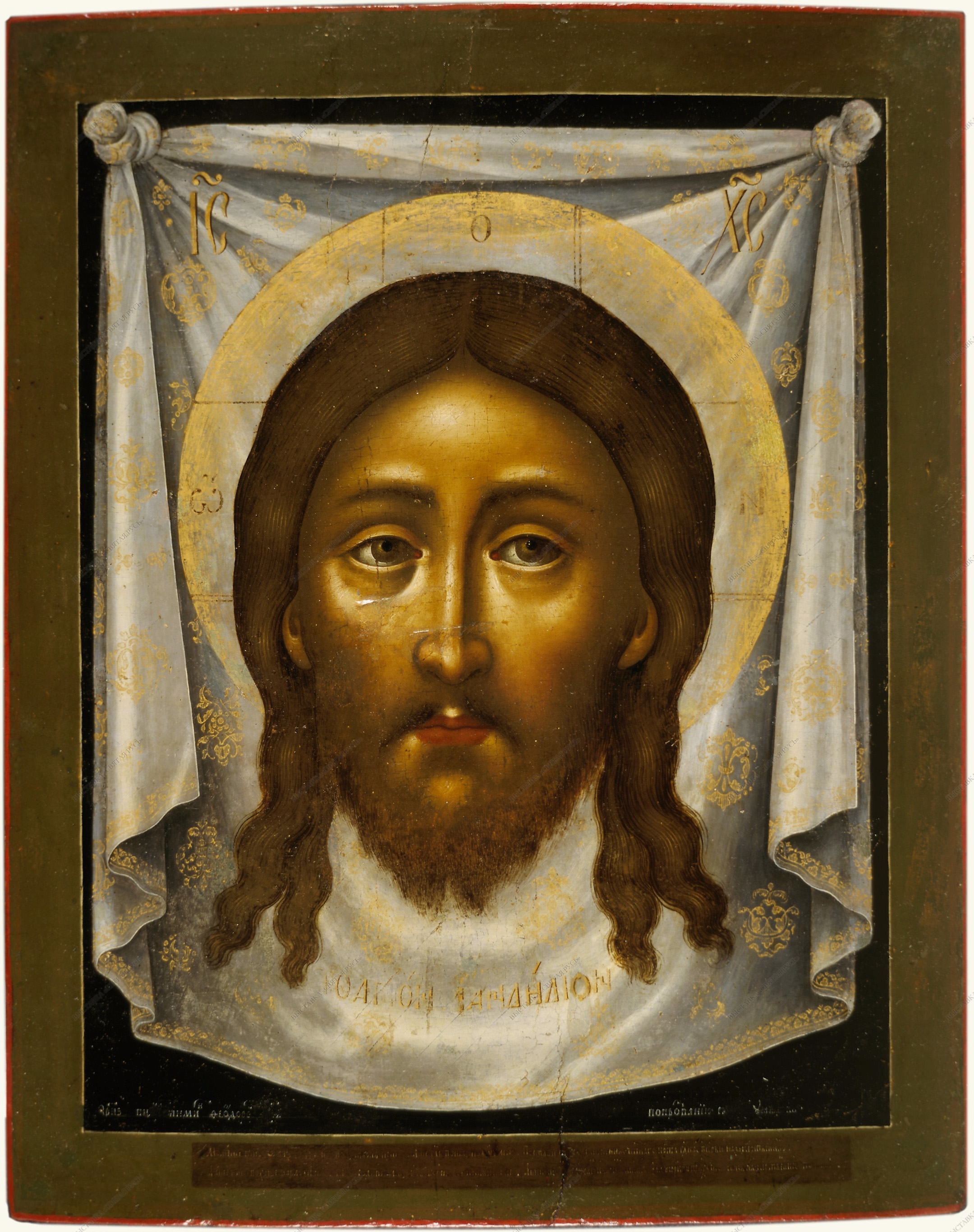 Дерево; темпера; оклад – серебро; басма, позолота 192 х 134 х 9,3 На обороте между шпонками надпись: ЛЕТА 7050-го ‹1542–1543› ПРИ ИГУМЕНЕ АФОНАСЬЕ ОБЛОЖИЛ СПАСОВ ОБРАЗ АРХИЕПИСКОПЪ ДОСИФЕИ РОСТОВЪСКОИ КБИАХМЗ инв. КП-1958, ДЖ-331, ДМ-231