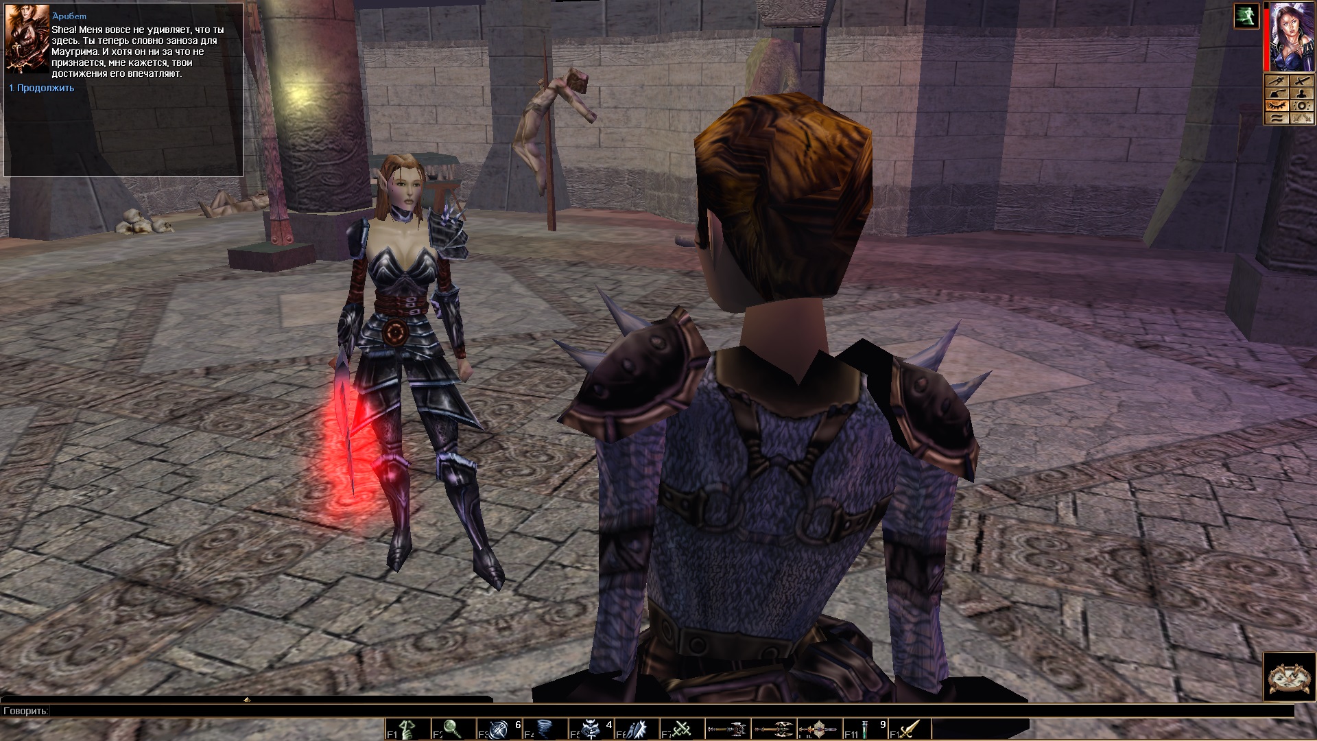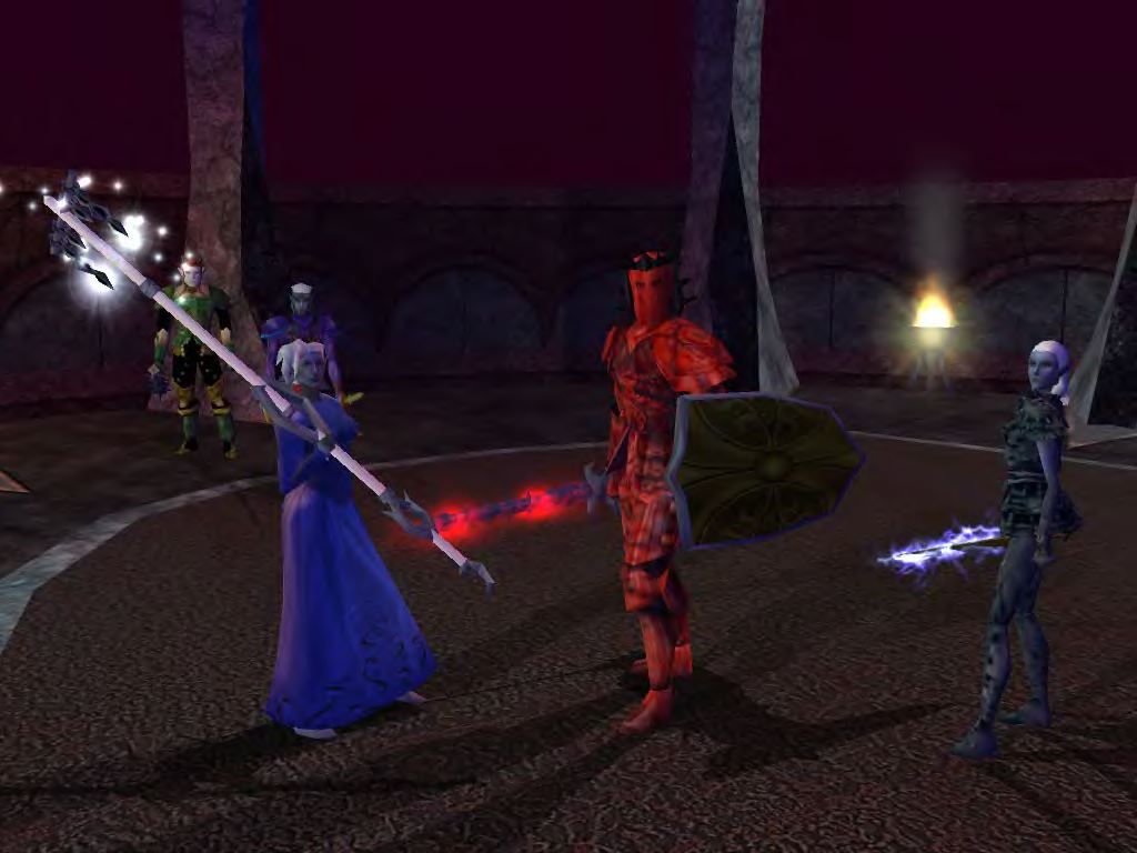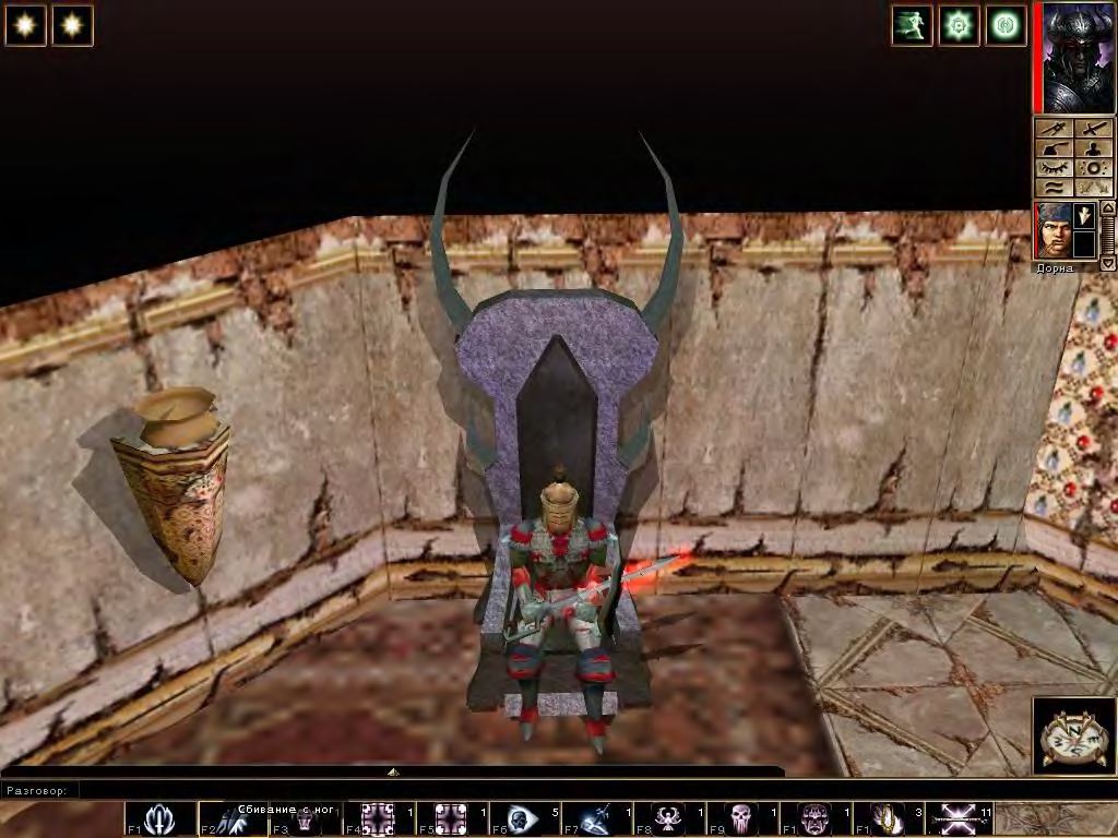 Персонажей в игре довольно много, монологи главных даже озвучены (за исключением вашего альтер-эго). Диалоги в игре – довольно существенный сегмент. Их приличное количеств, они несут серьезную смысловую нагрузку, двигают сюжет и позволяют альтернативным образом решать квестовые задачи. Вместо убийства какого-нибудь непися или выполнения его заданий можно его обмануть, запугать, умаслить или иным образом заболтать. Разговоры могут помочь получить какой-нибудь интересный квест или могущественный предмет. Понятно, что даже в 2002 году это не было прорывом, но те, кто имеет хотя бы минимальное представление о настолке Dungeons & Dragons знают, что общение – это основа игрового взаимодействия, и гейммастер ведет игру именно путем словесного описания ситуаций и диалога с играющими. Так что этот чрезвычайно важный аспект был перенесен в игру с должным вниманием, что особенно чувствуется в сетевой игре, когда ею рулит опять-таки гейммастер. Ощущения свежие и интересные – это однозначно.