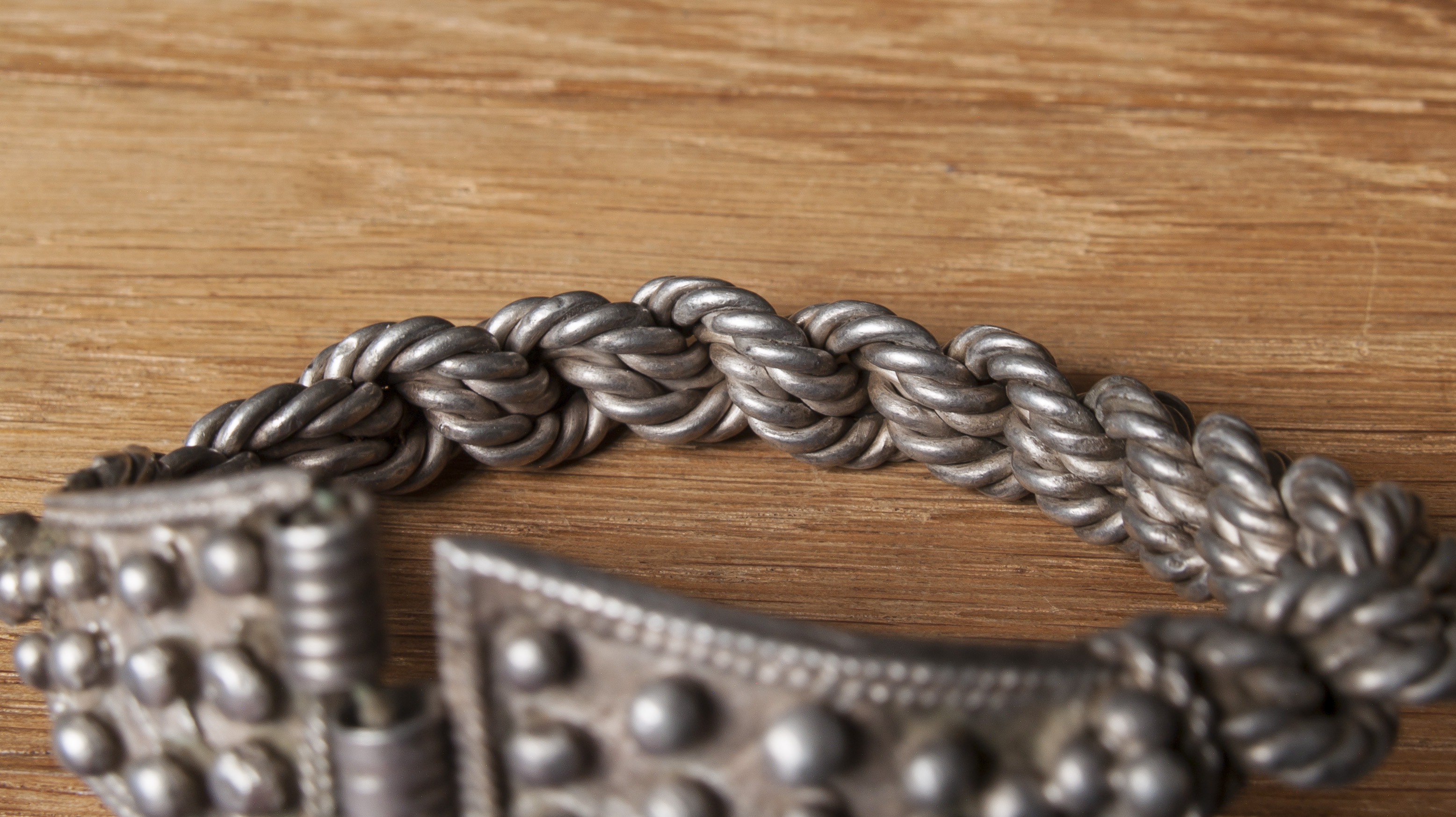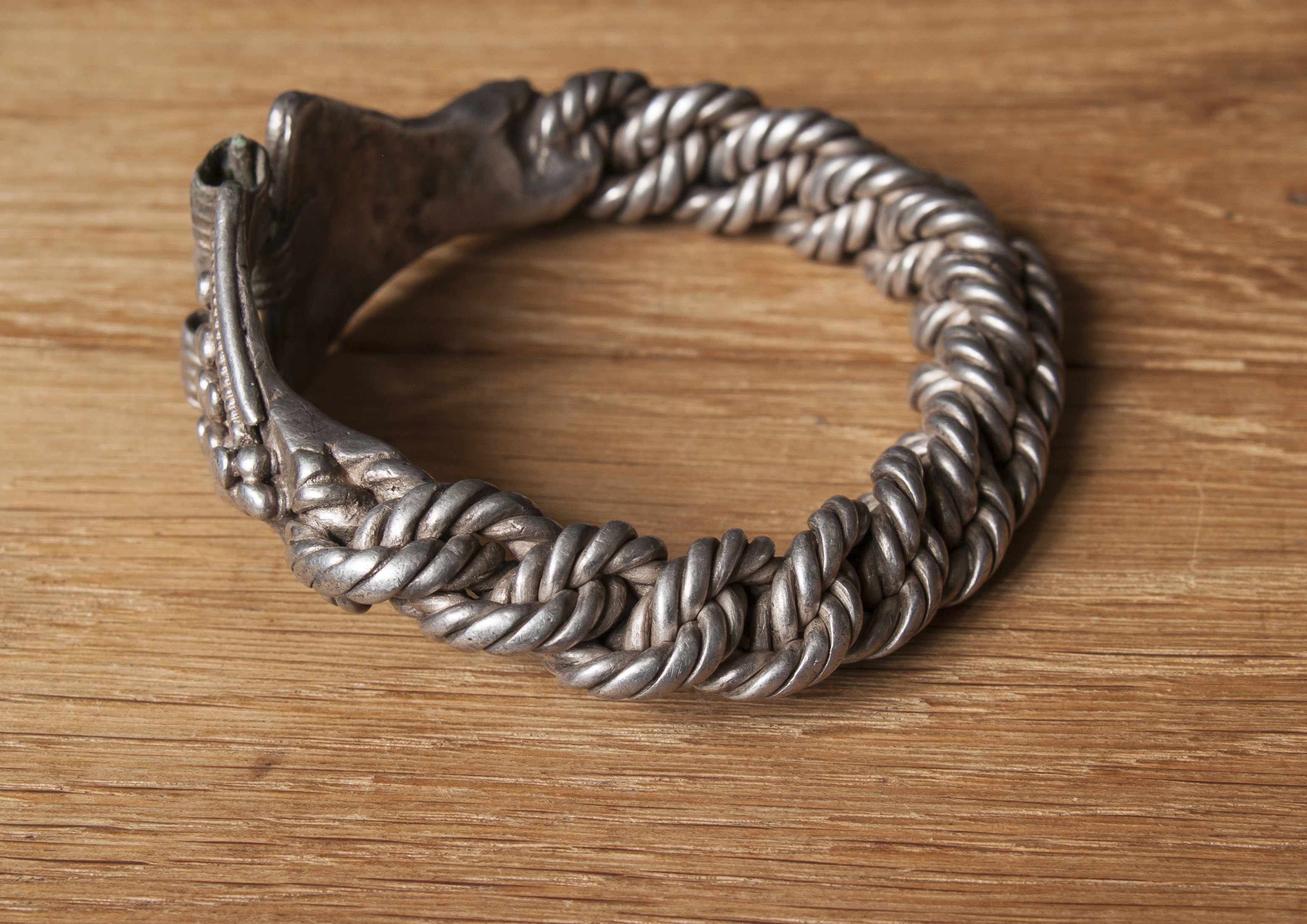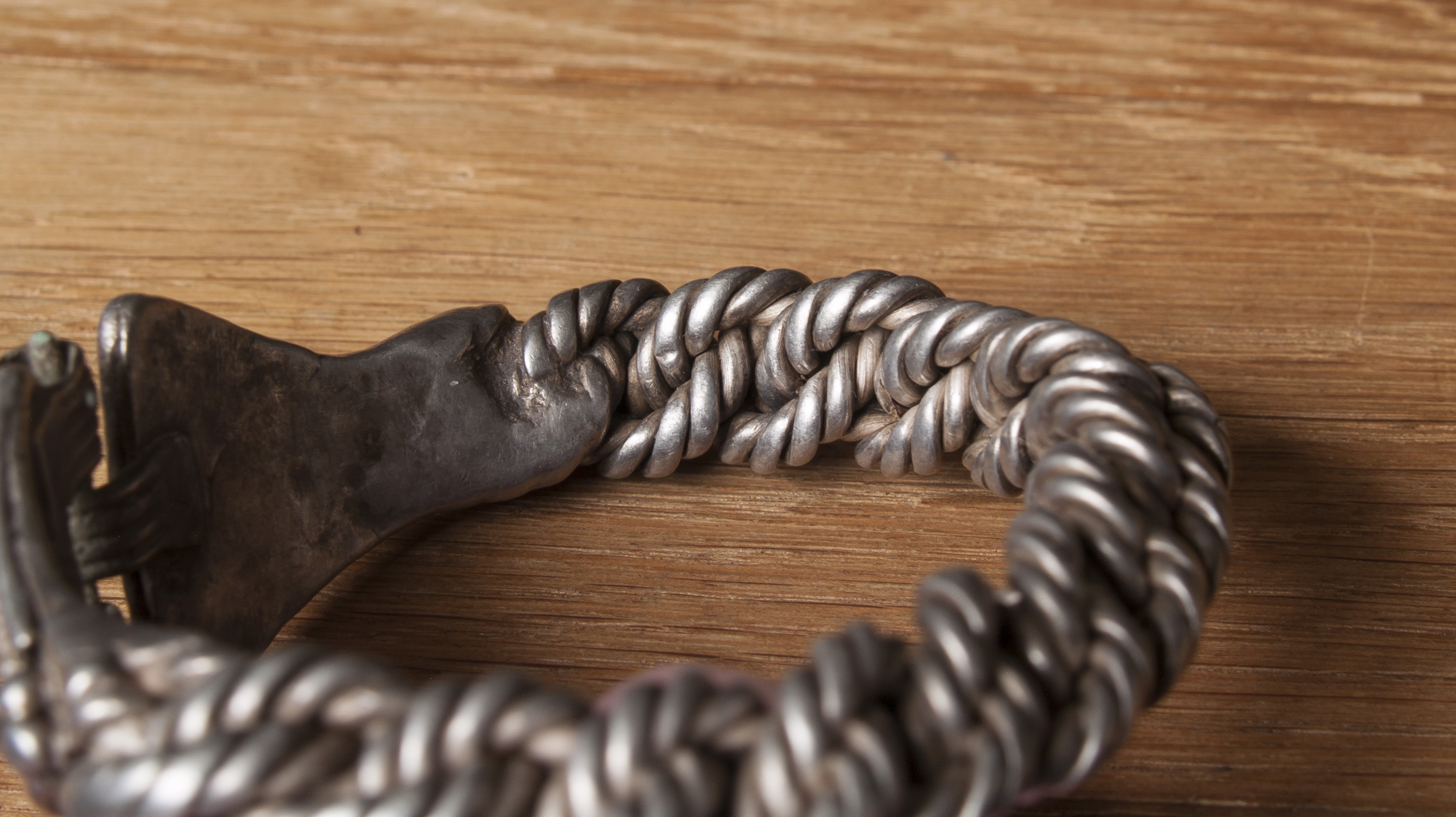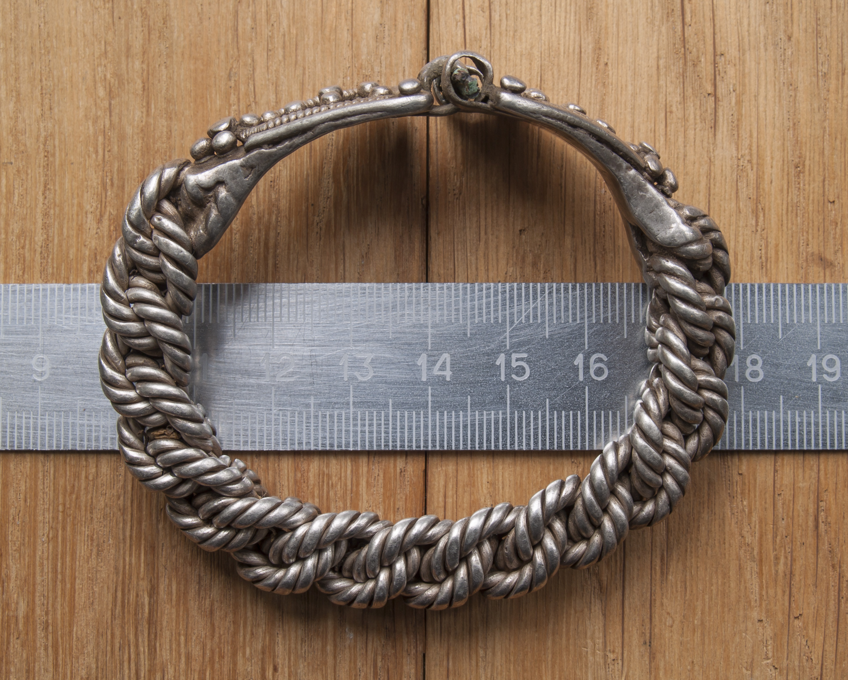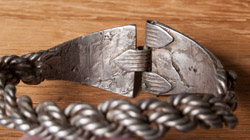 Фото второго браслета. Такие браслеты по мнению swordmaster.org являются продолжением древнерусских традиций браслетов и шейных гривен с расширяющимися концами и сложноплетеннх серебряных колец на палец. К 13 веку мода на цилиндрический браслет-наруч, украшенный мелкой зернью и чернью начала угасать, а после монгольского нашествия древнерусское ювелирное искусство получило сокрушительный удар, от которого не оправилось. Однако, судя по всему, такие браслеты были в обиходе с XIII по XV век на территории Великого Княжества Литовского.