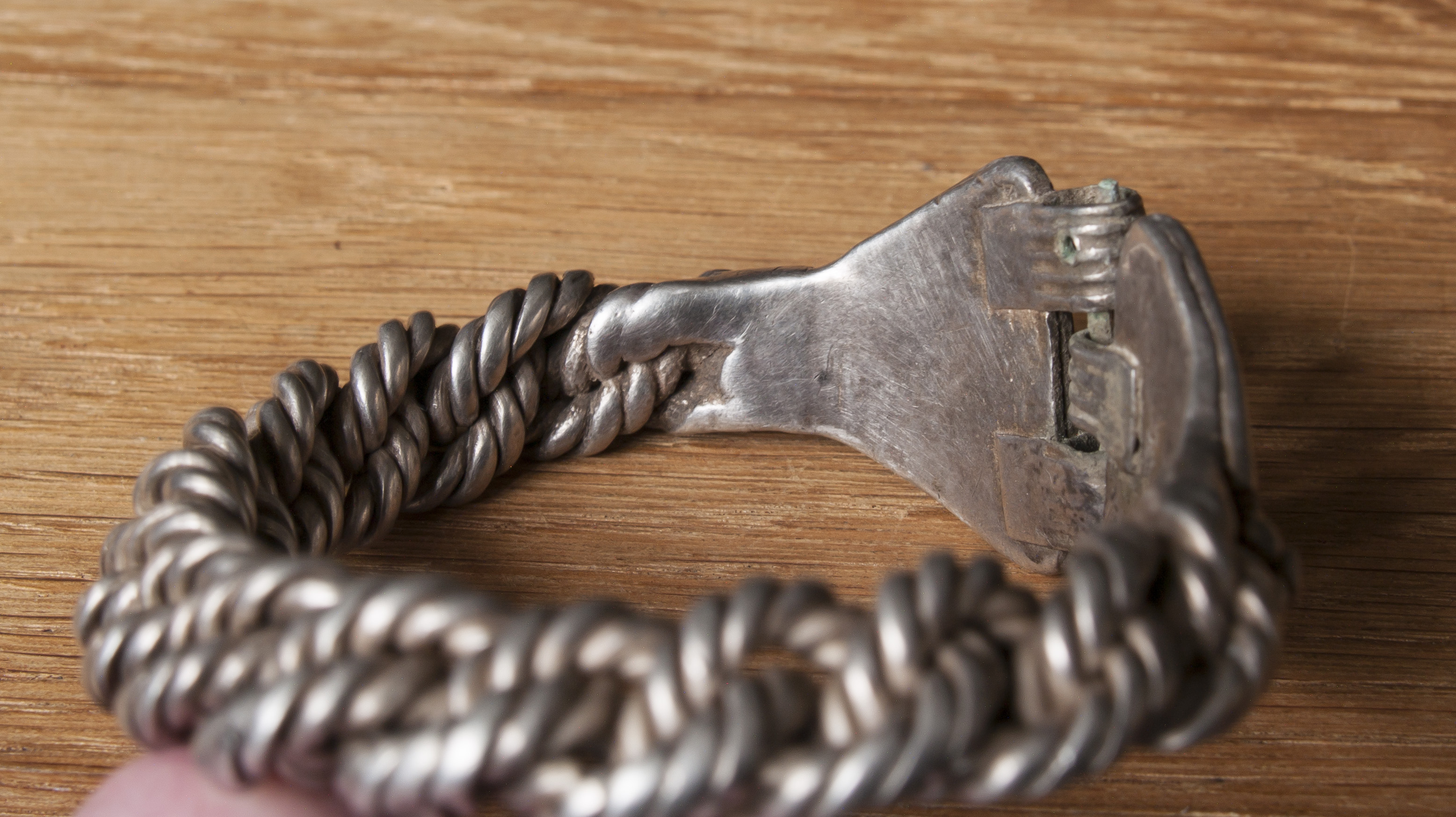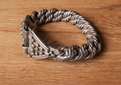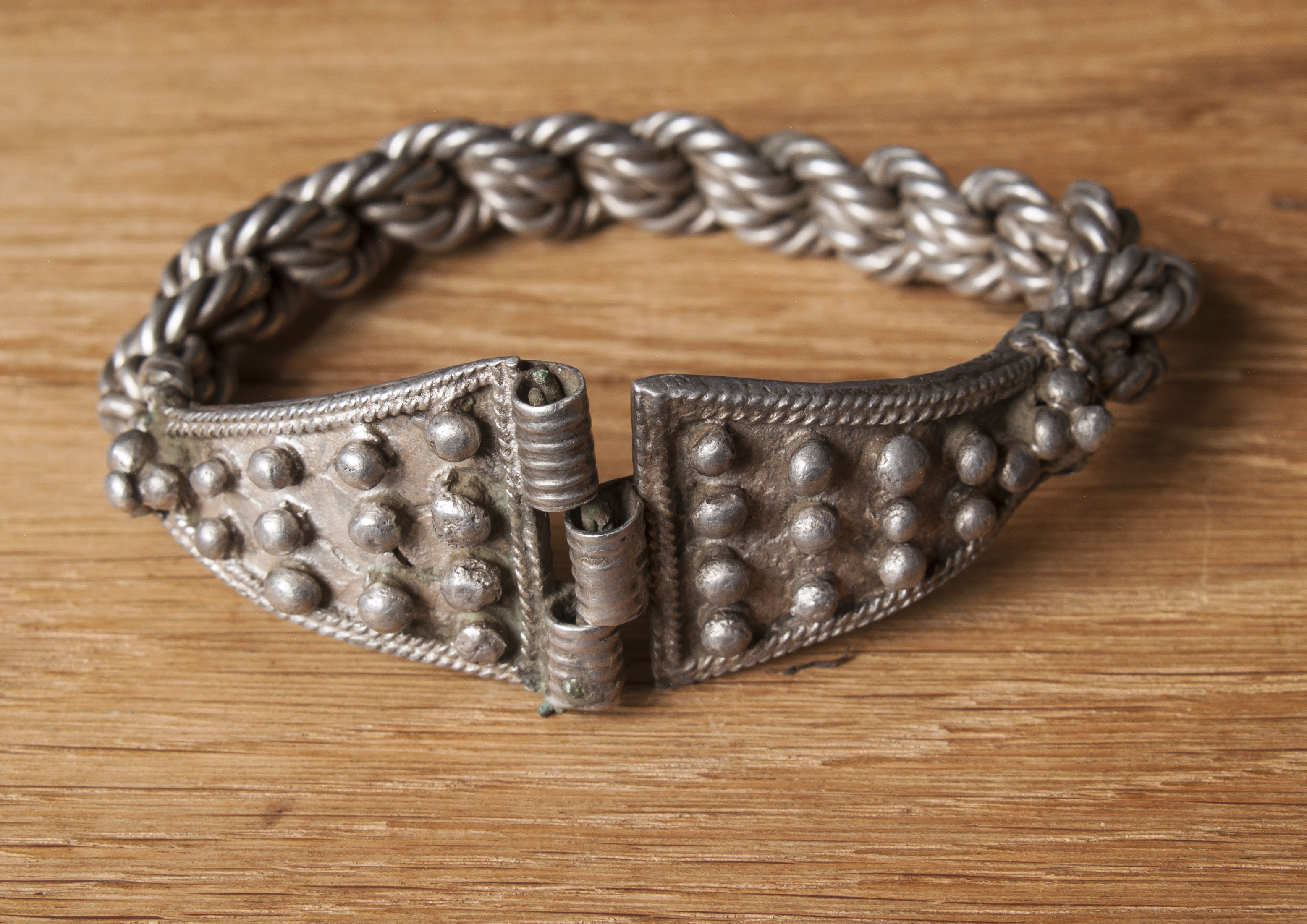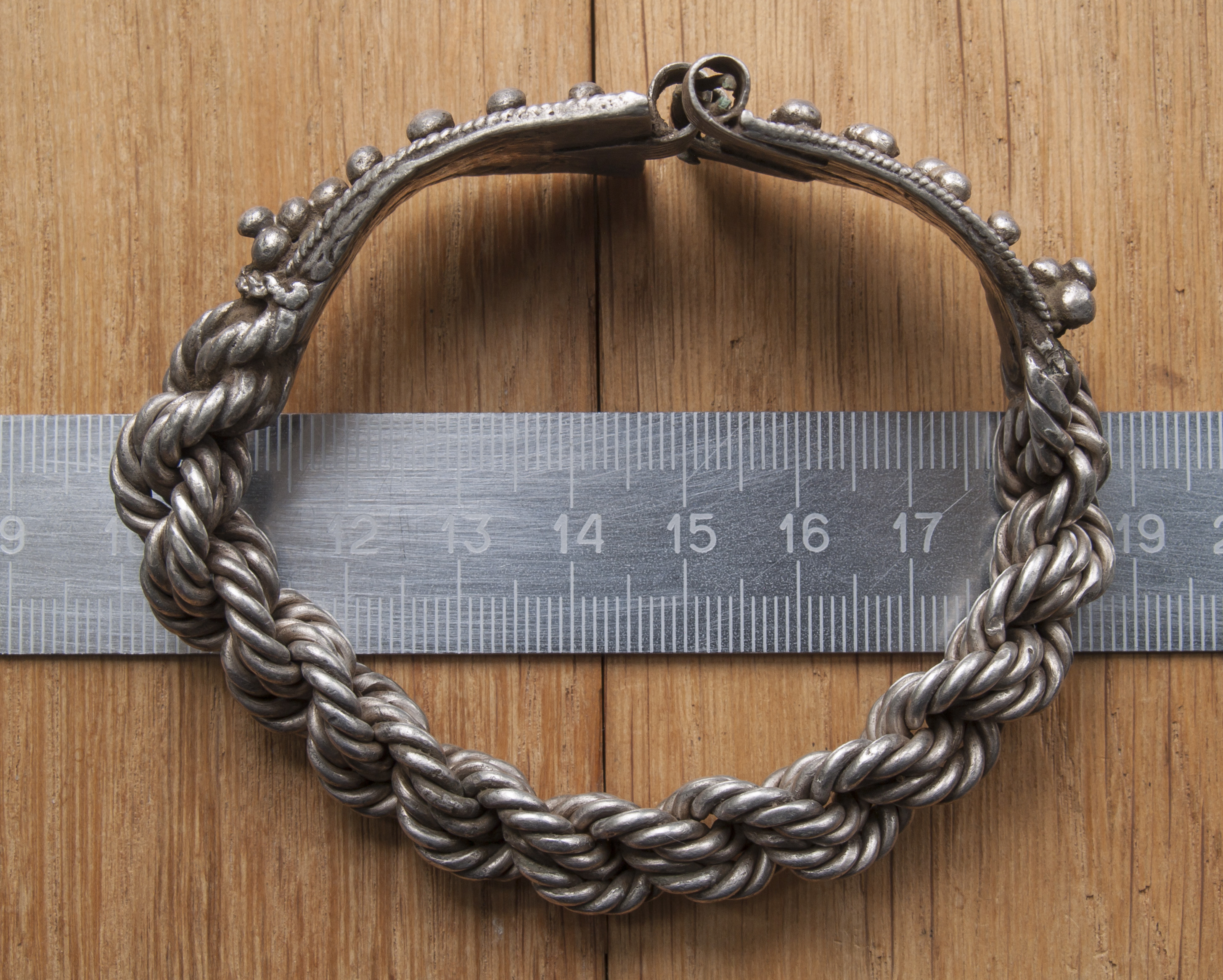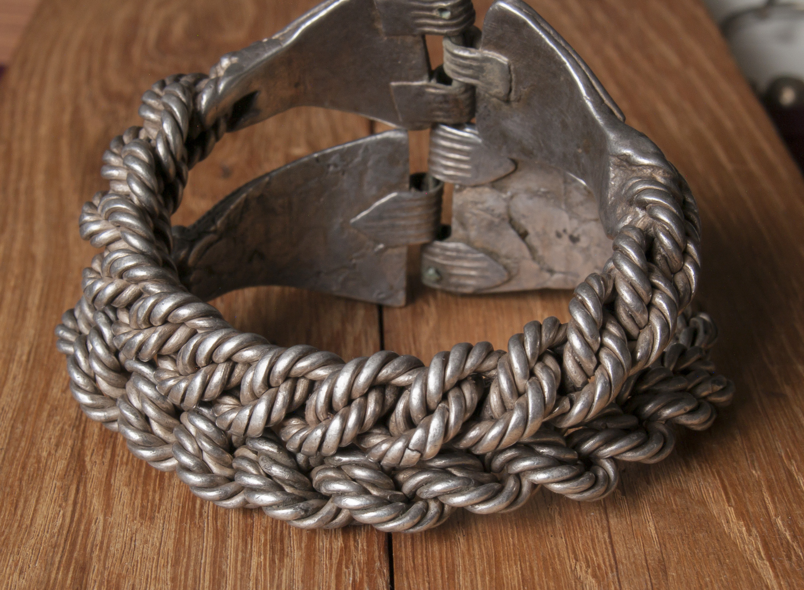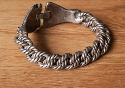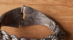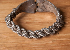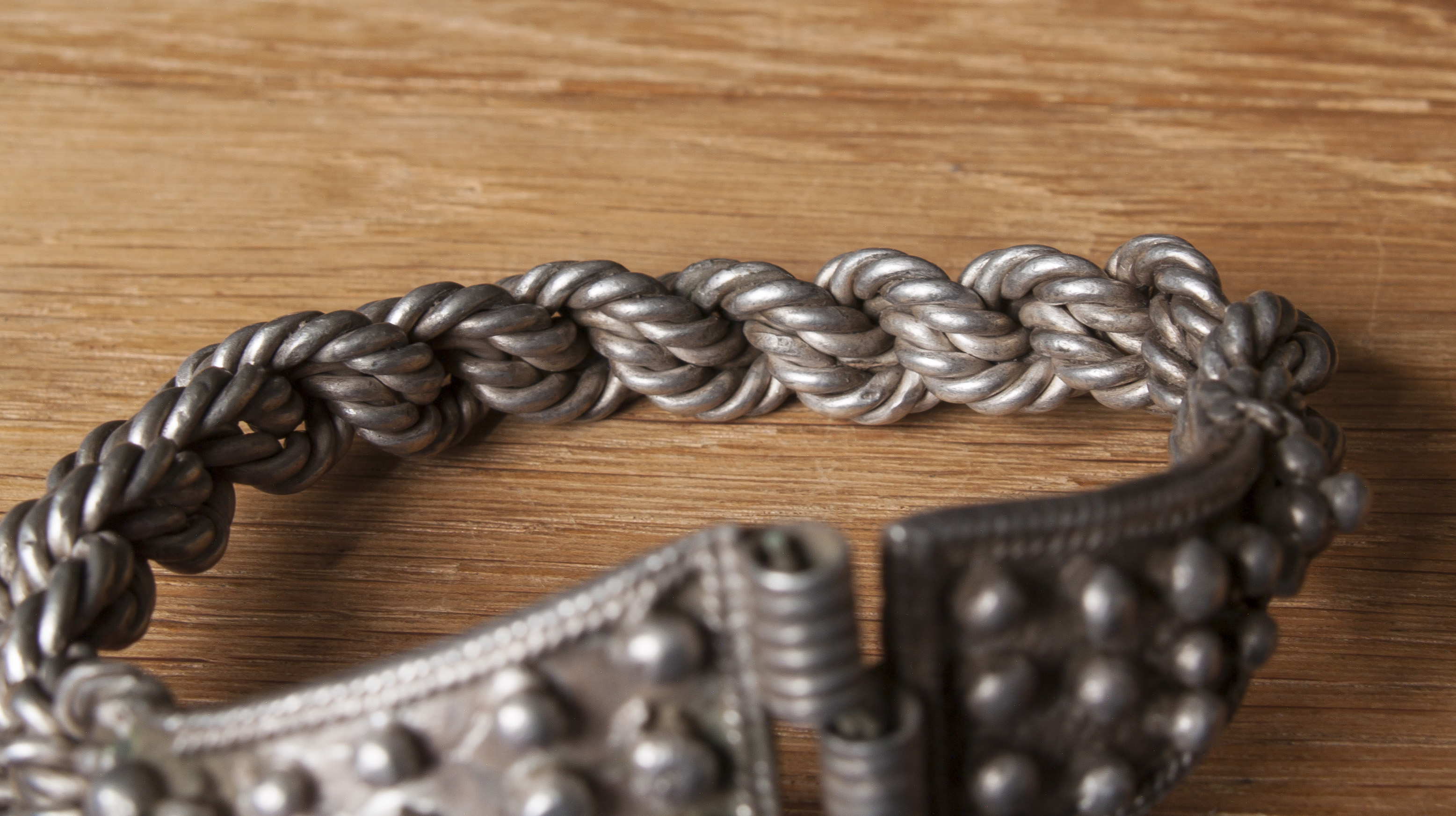 Фото второго браслета. Такие браслеты по мнению swordmaster.org являются продолжением древнерусских традиций браслетов и шейных гривен с расширяющимися концами и сложноплетеннх серебряных колец на палец. К 13 веку мода на цилиндрический браслет-наруч, украшенный мелкой зернью и чернью начала угасать, а после монгольского нашествия древнерусское ювелирное искусство получило сокрушительный удар, от которого не оправилось. Однако, судя по всему, такие браслеты были в обиходе с XIII по XV век на территории Великого Княжества Литовского.
