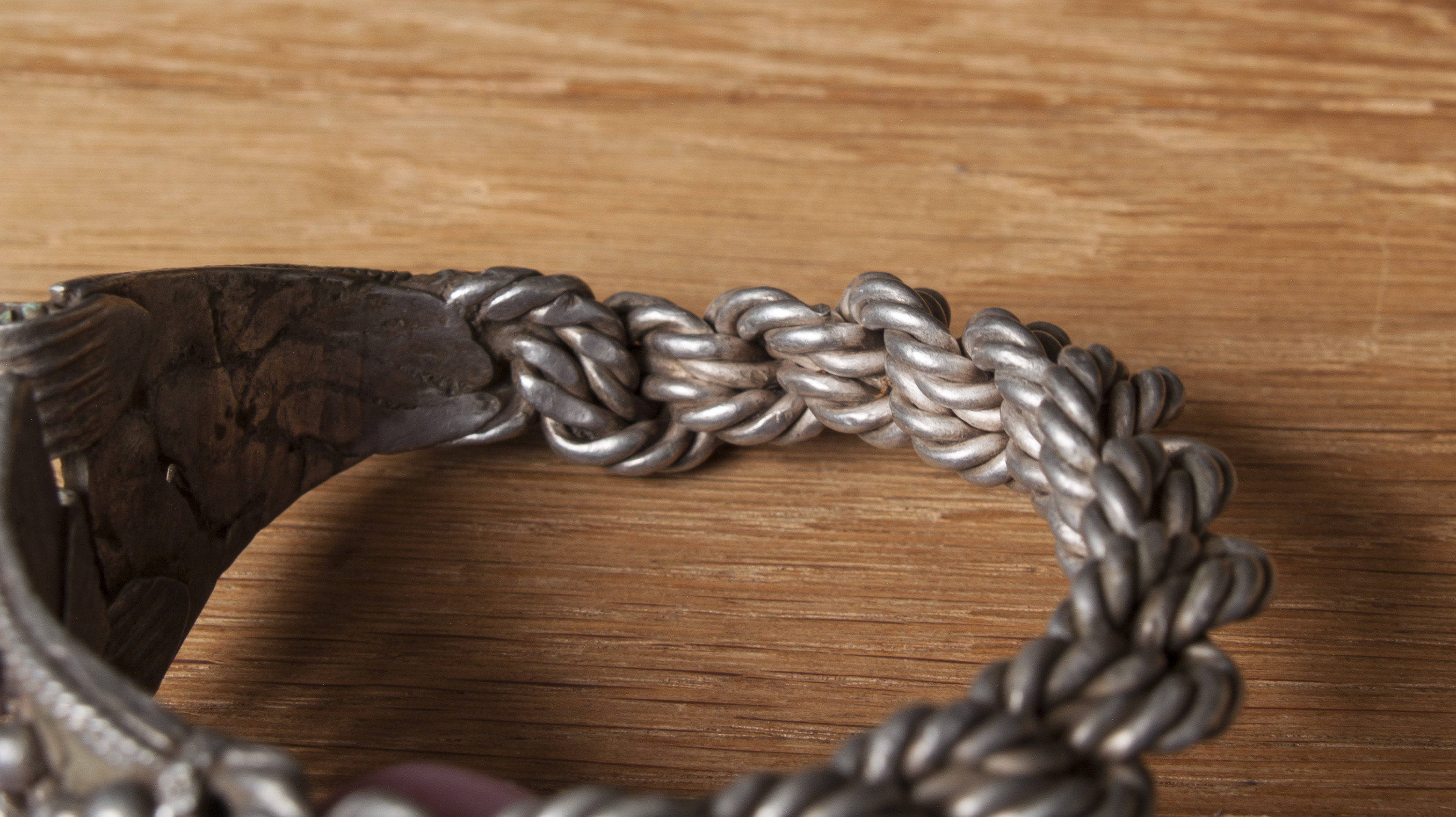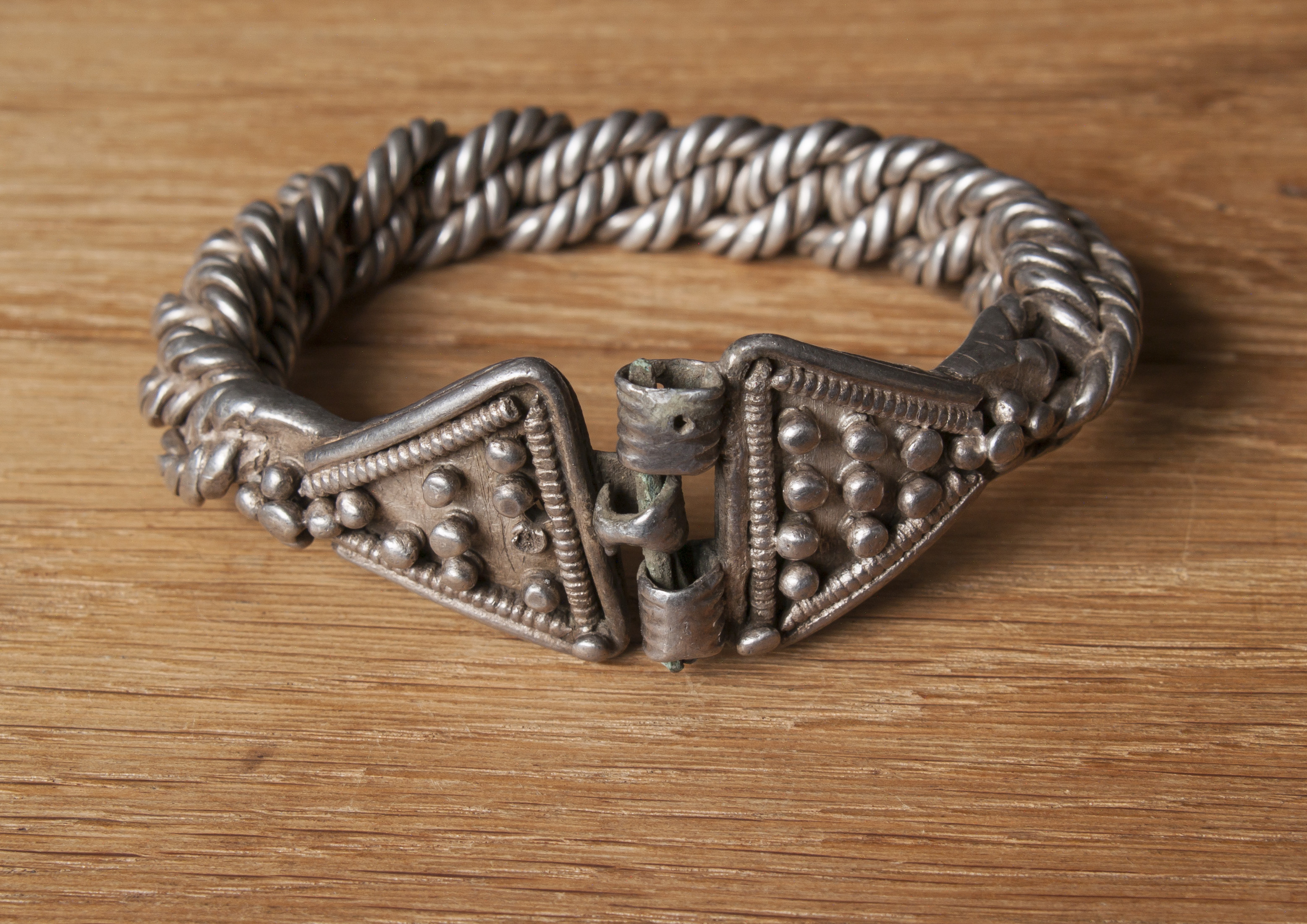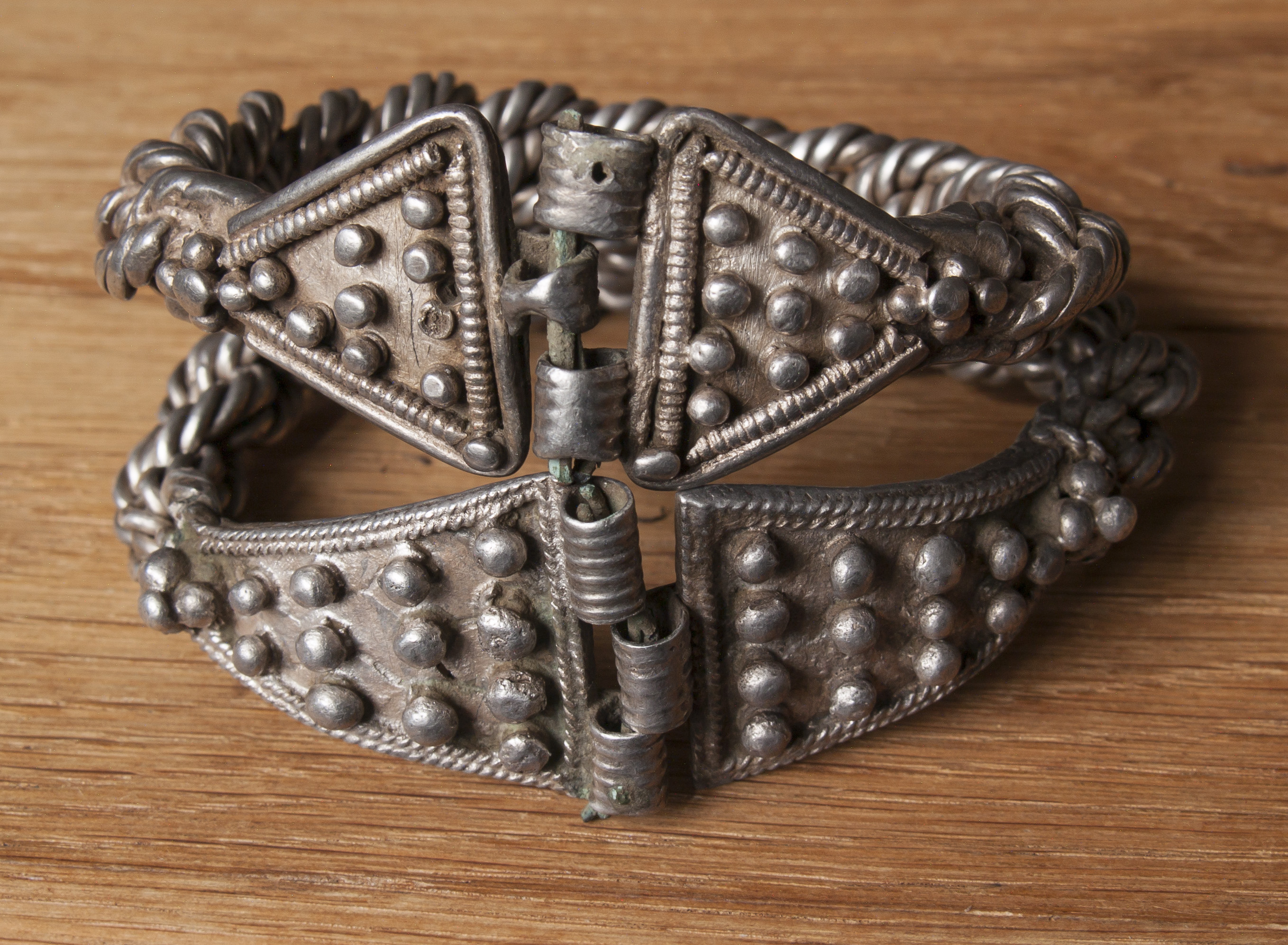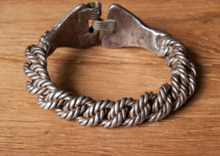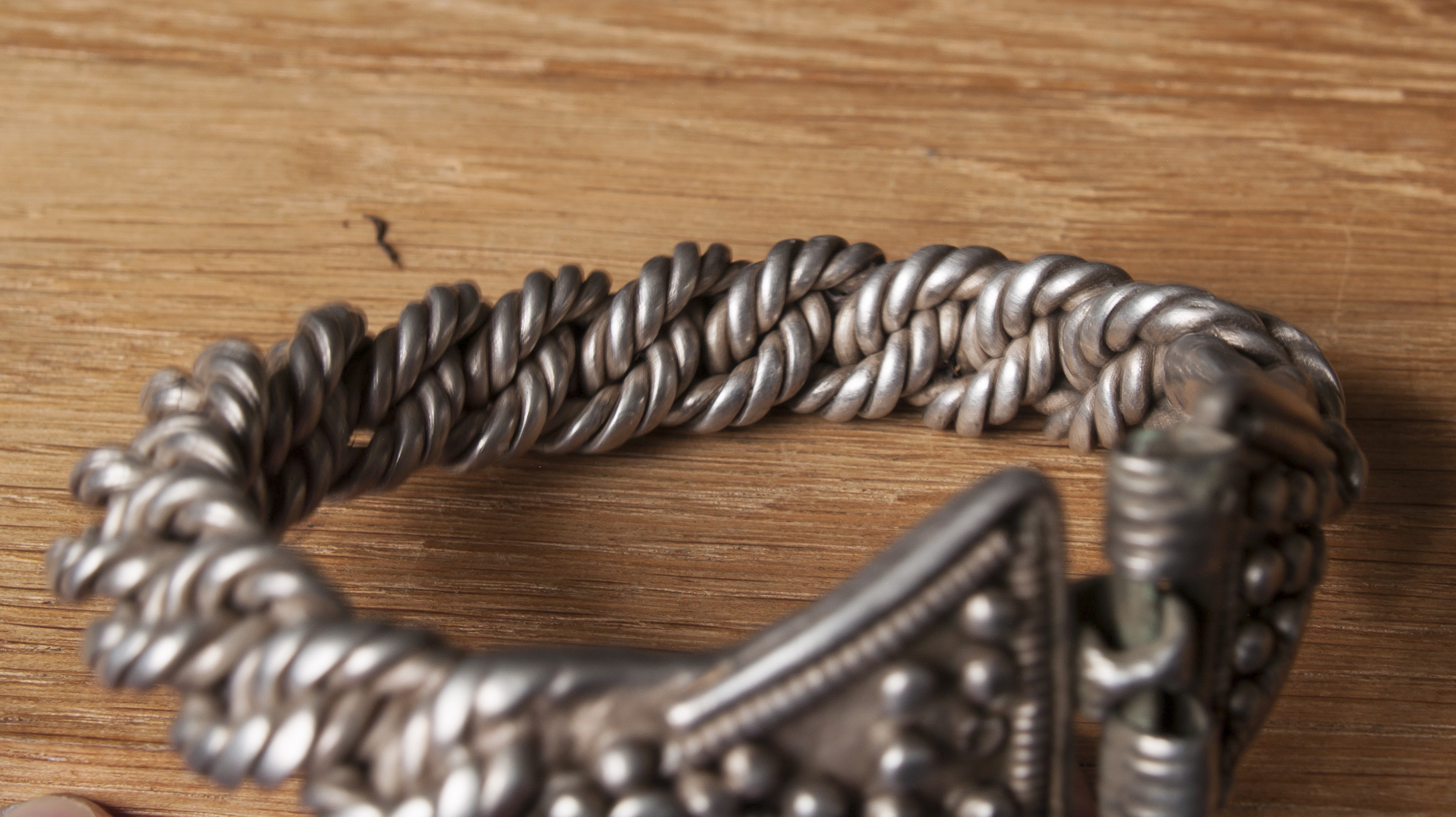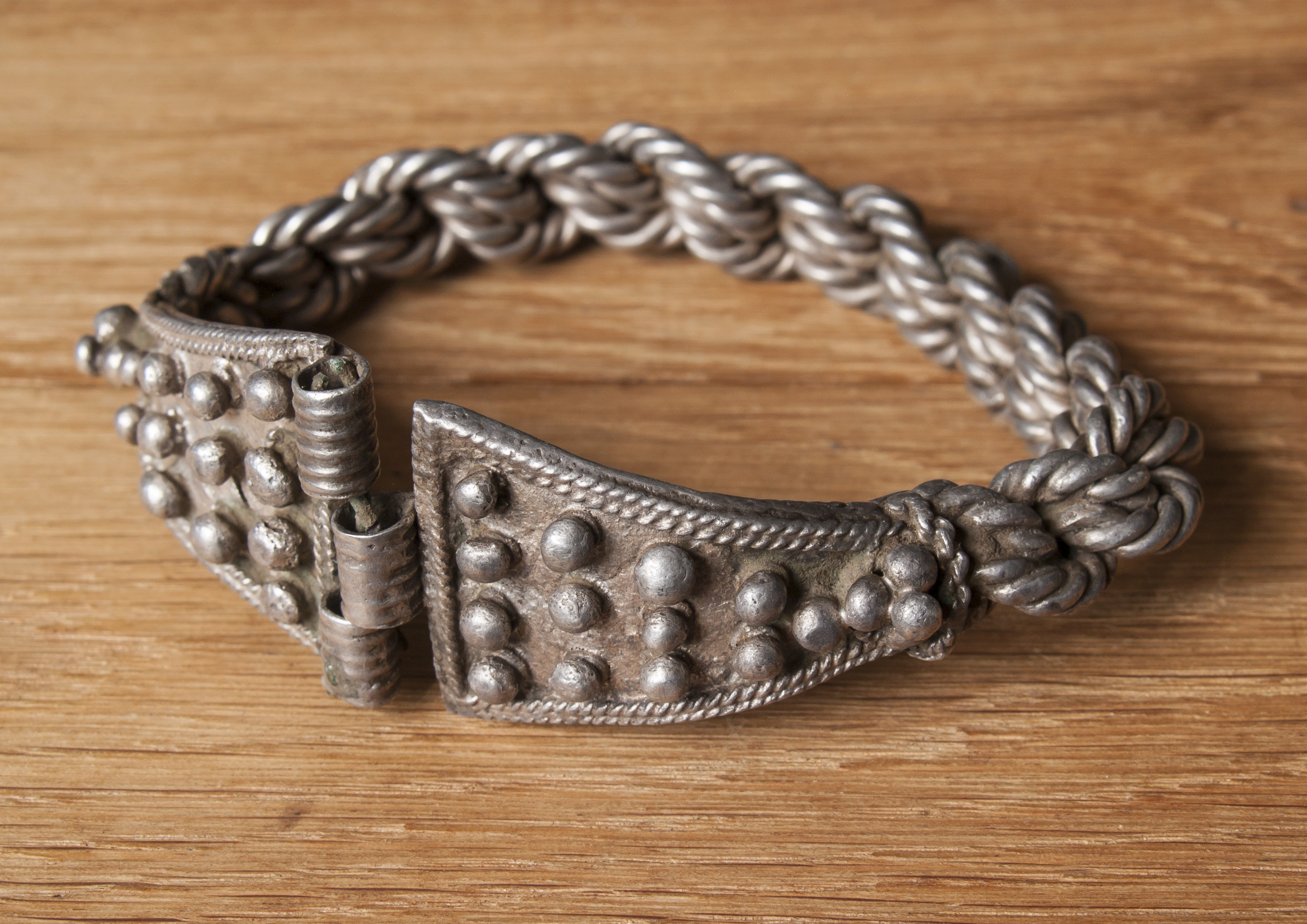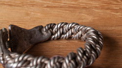 Фото второго браслета. Такие браслеты по мнению swordmaster.org являются продолжением древнерусских традиций браслетов и шейных гривен с расширяющимися концами и сложноплетеннх серебряных колец на палец. К 13 веку мода на цилиндрический браслет-наруч, украшенный мелкой зернью и чернью начала угасать, а после монгольского нашествия древнерусское ювелирное искусство получило сокрушительный удар, от которого не оправилось. Однако, судя по всему, такие браслеты были в обиходе с XIII по XV век на территории Великого Княжества Литовского.
