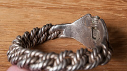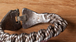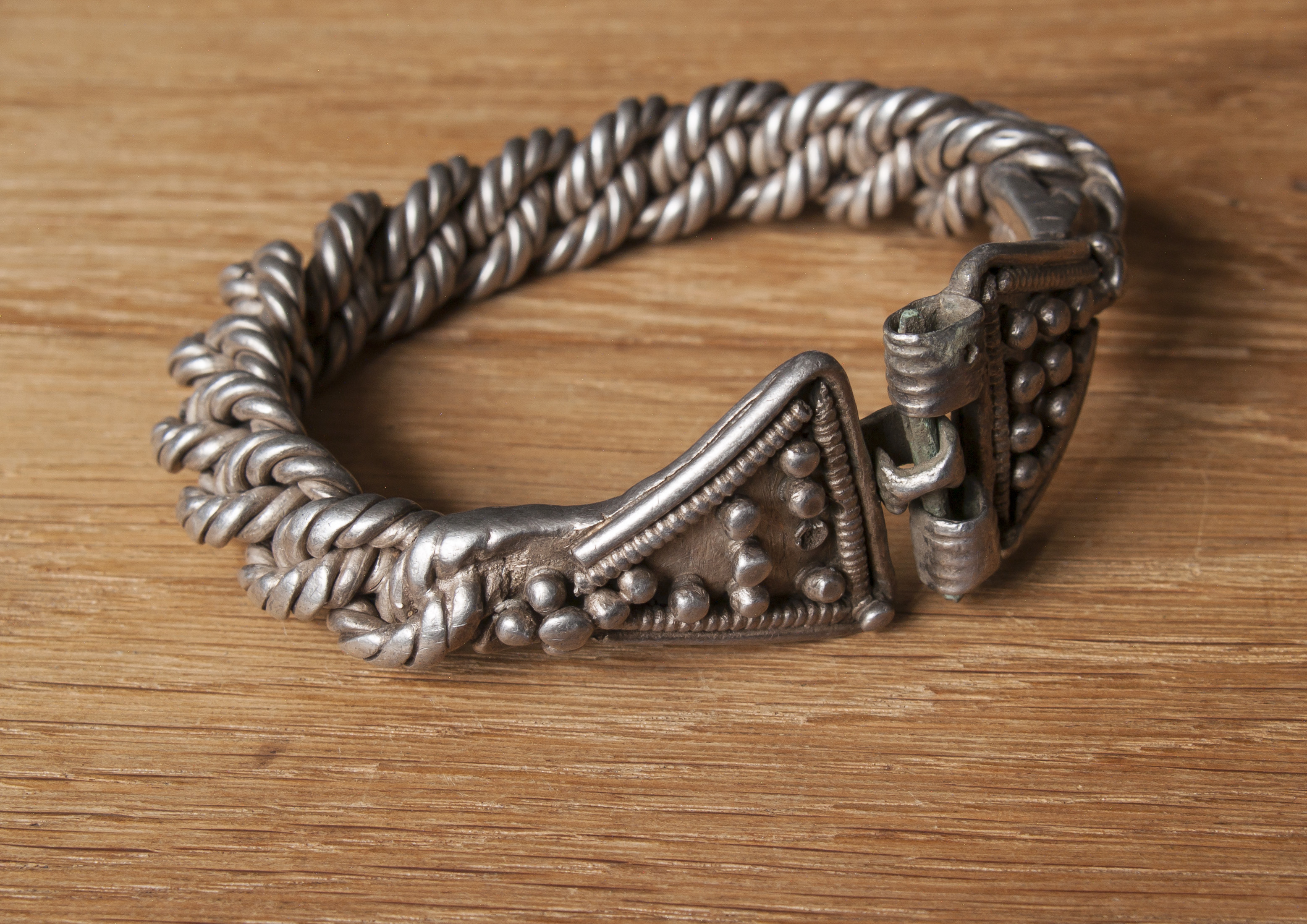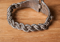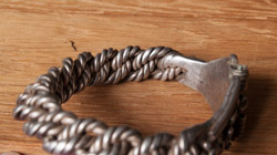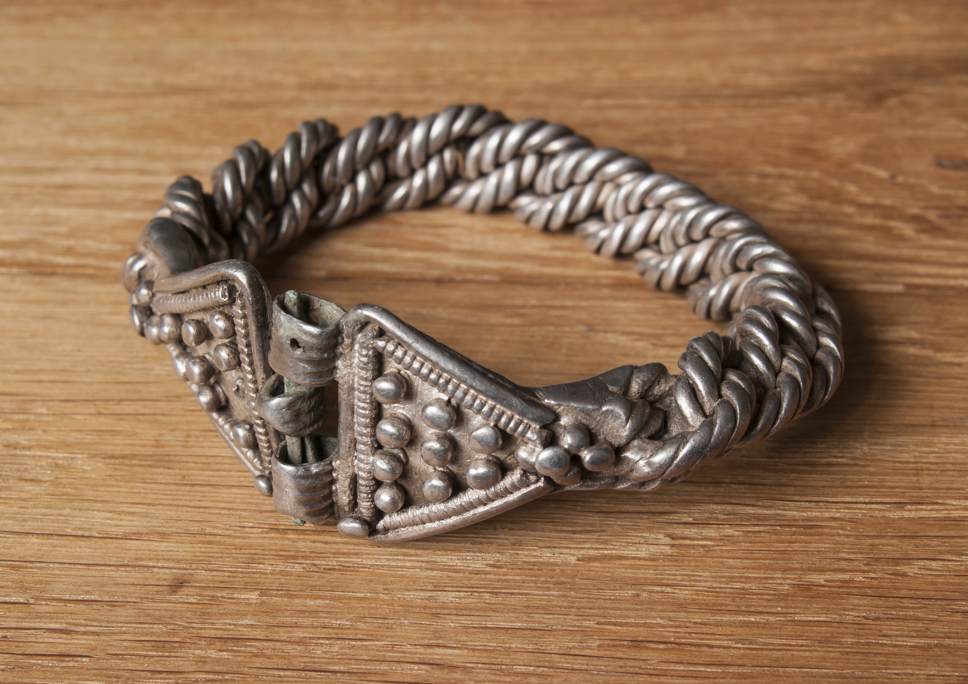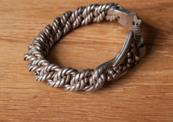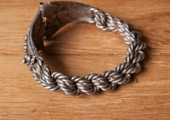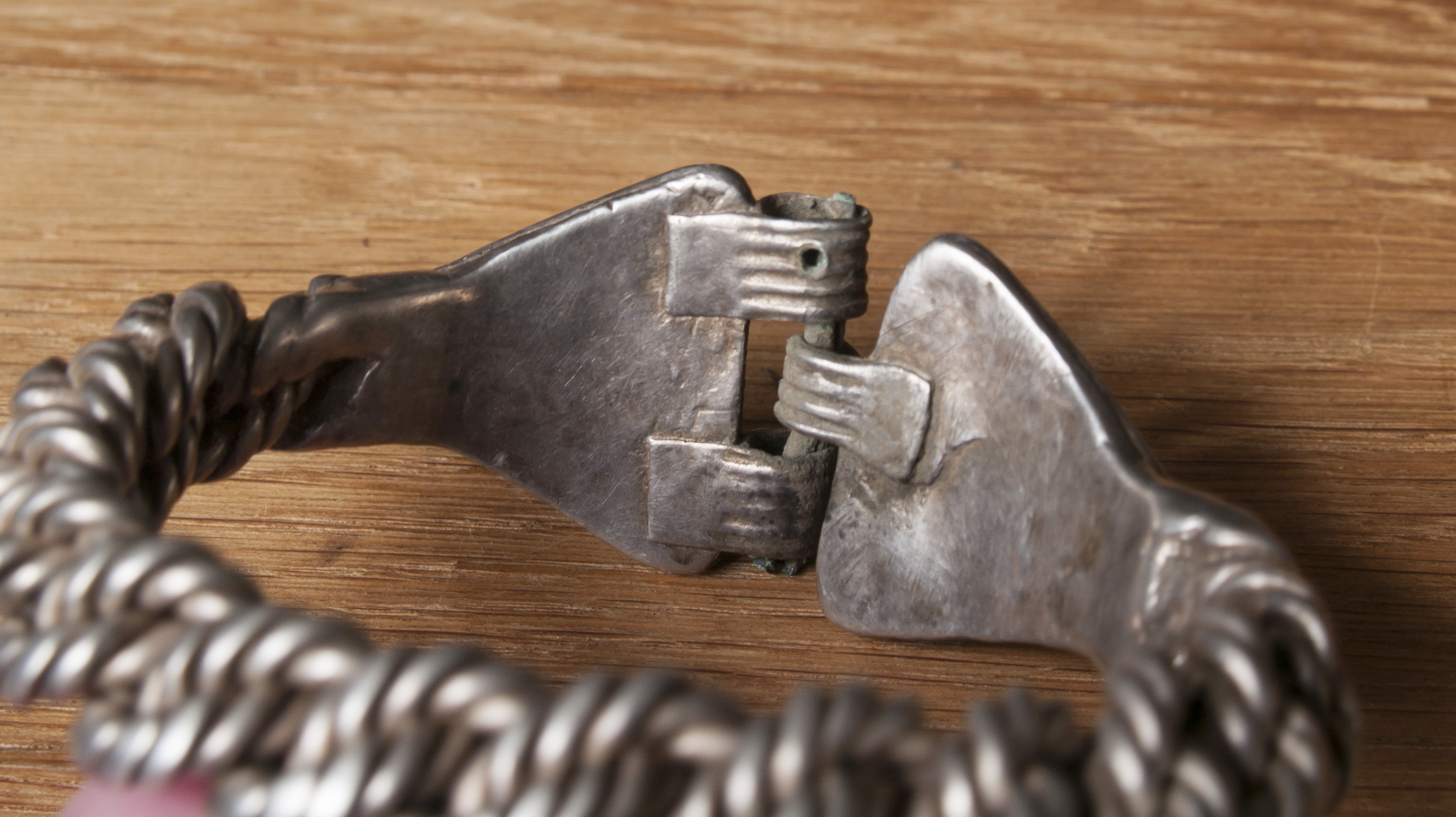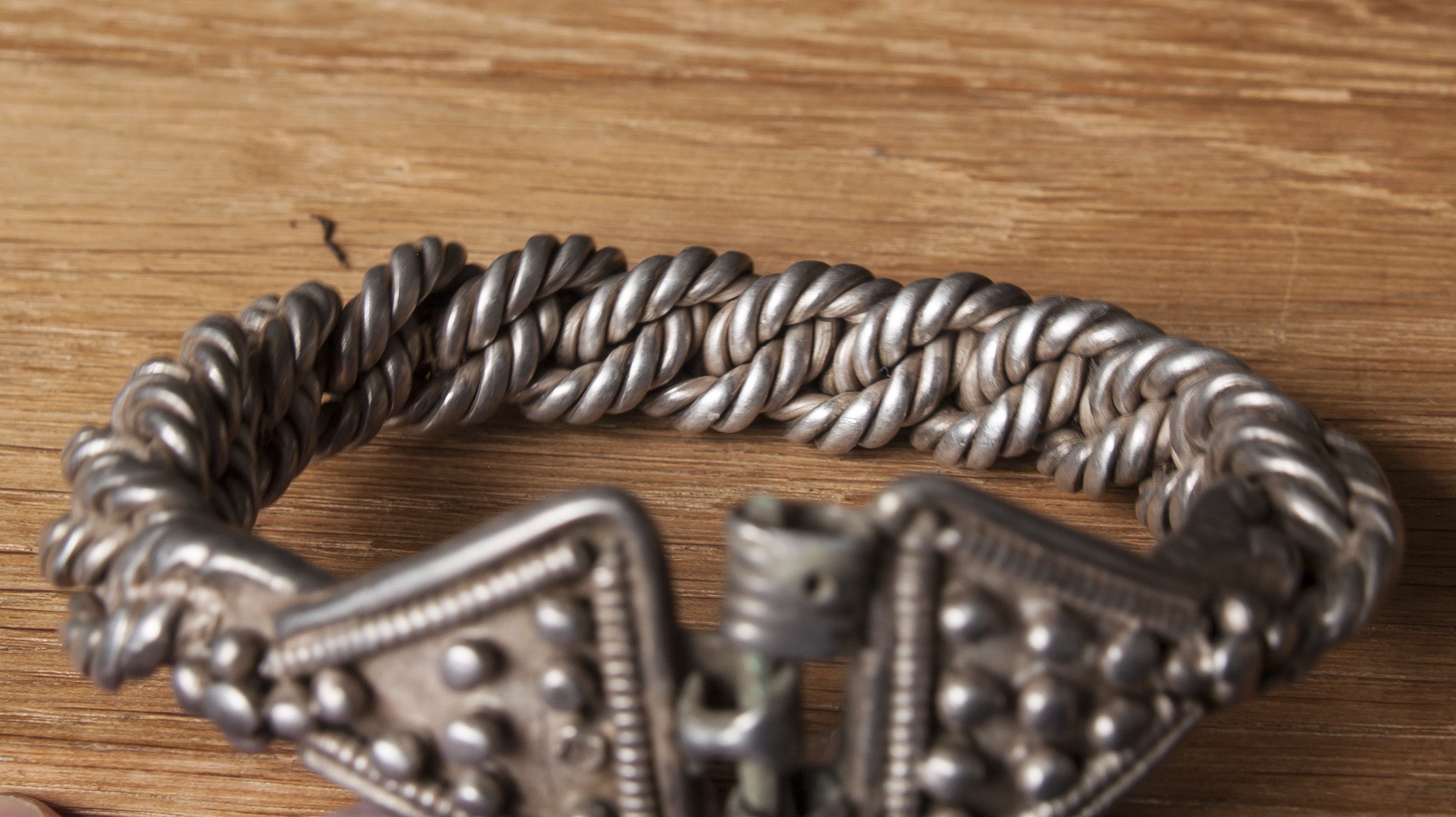 Фото второго браслета. Такие браслеты по мнению swordmaster.org являются продолжением древнерусских традиций браслетов и шейных гривен с расширяющимися концами и сложноплетеннх серебряных колец на палец. К 13 веку мода на цилиндрический браслет-наруч, украшенный мелкой зернью и чернью начала угасать, а после монгольского нашествия древнерусское ювелирное искусство получило сокрушительный удар, от которого не оправилось. Однако, судя по всему, такие браслеты были в обиходе с XIII по XV век на территории Великого Княжества Литовского.