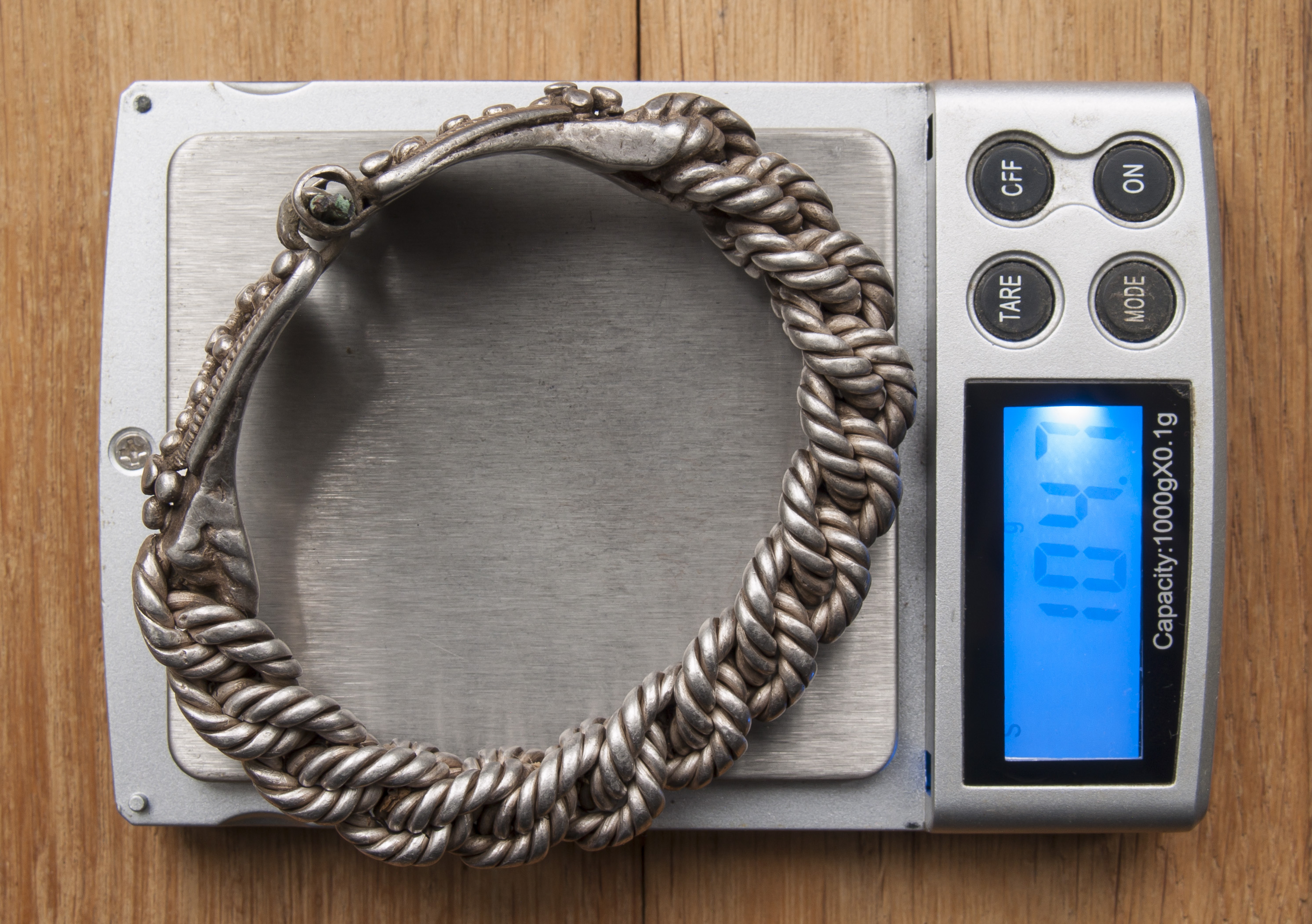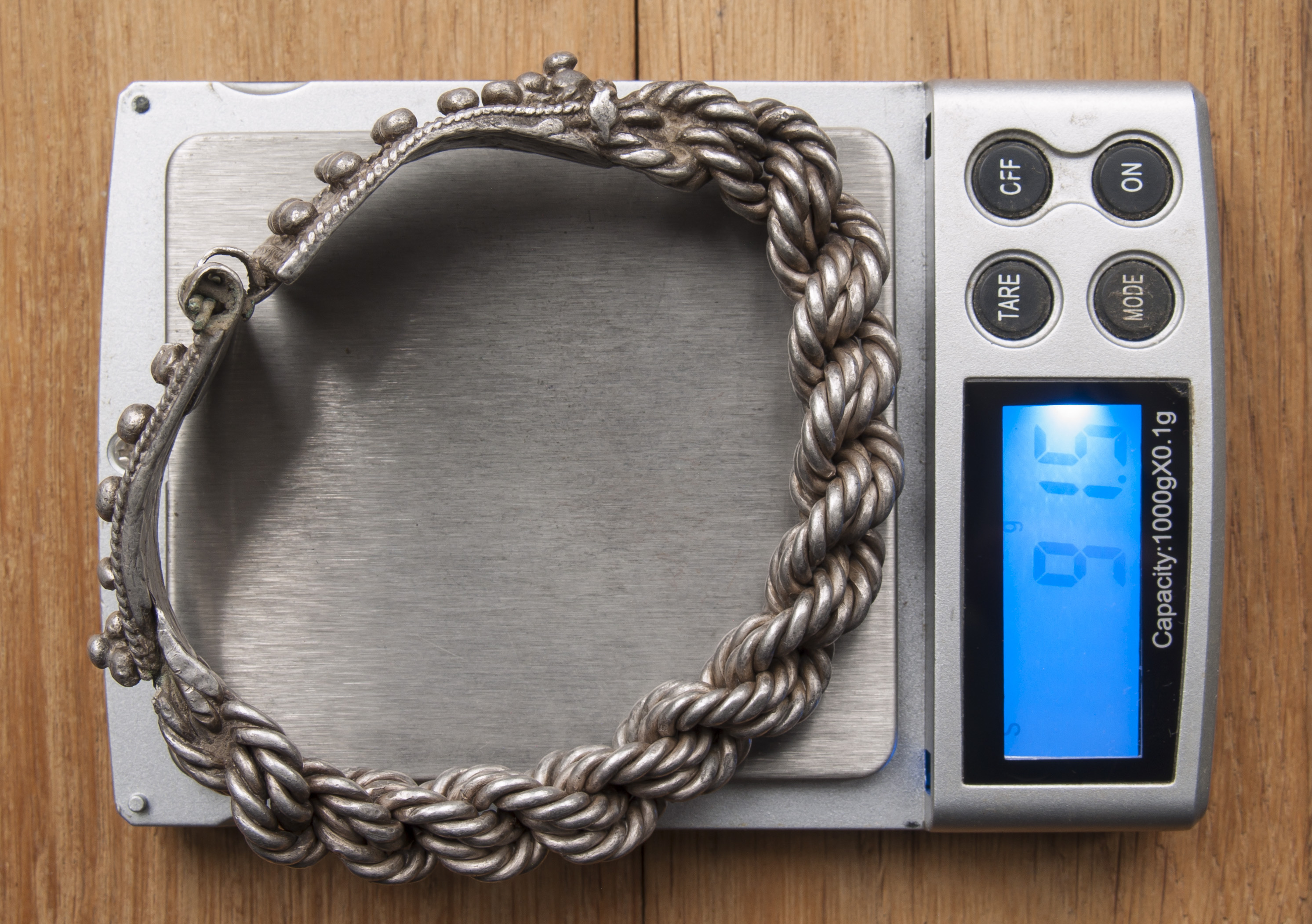 В представленных ниже парных фото браслетов верхний, хоть и выглядит меньше, но тяжелее, вес его 104.7 грамм. Того что по ниже: 91.5 грамм. Штифты, смыкающие порытые бусинками треугольные края родные, браслеты, по словам продавца, в очень хорошем состоянии, в руках не гуляют и скрытых дефектов не имеют. По представленным ранее золотоордынским монетам (на второй стр. публикации) клад можно датировать 1420-ми годами. Что не исключает того что предметы, положенные в клад, были из готовлены за несколько десятков лет до закладки.