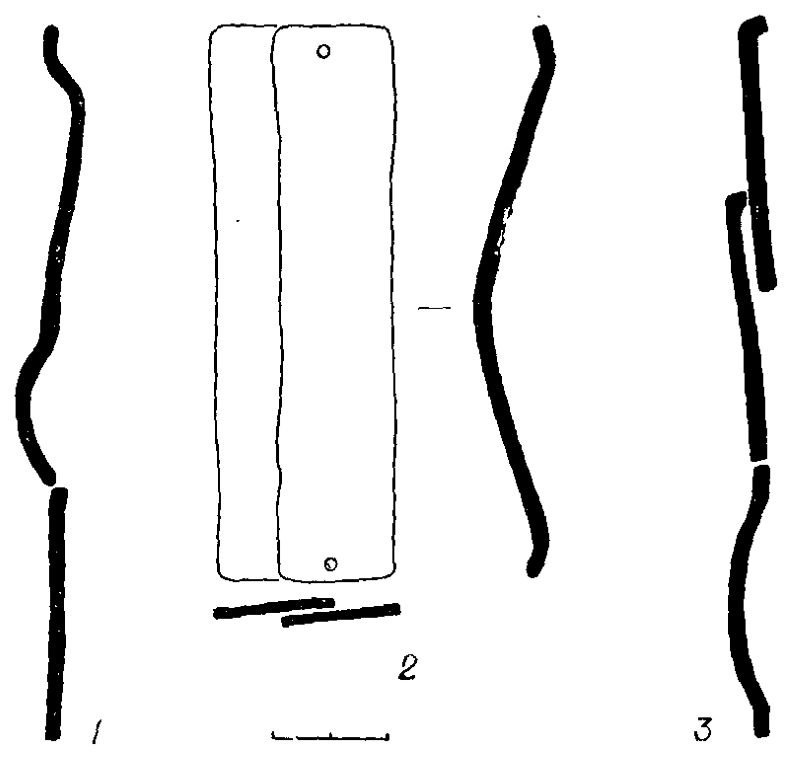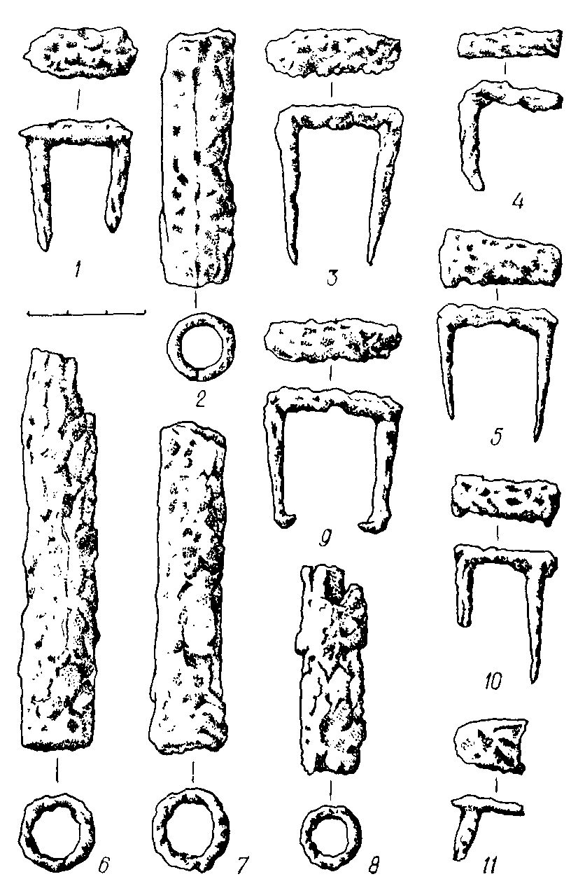 Скобы, скрепляющие деревянный настил в погребении №1 Скифское оружие из погребения у с. Красный Подол на Херсонщине