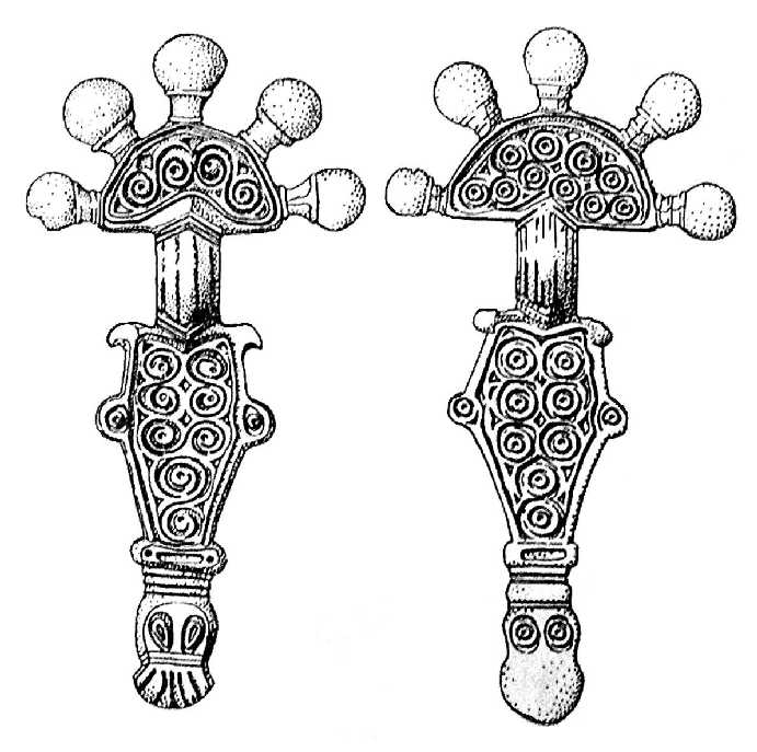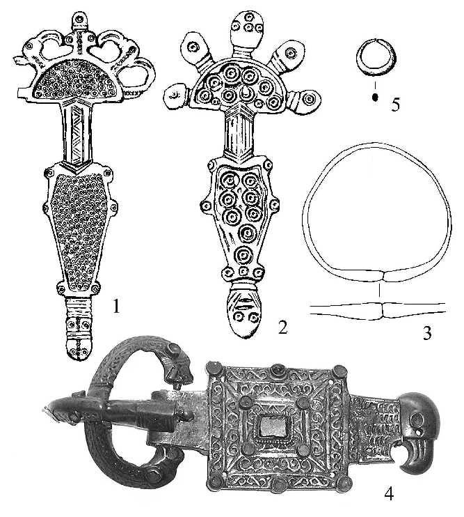 5. Большие двупластинчатые фибулы без накладок, с выступами на головке (вариант II по А.И.Айбабину), вариант ПБ по А.Г.Фурасьеву.