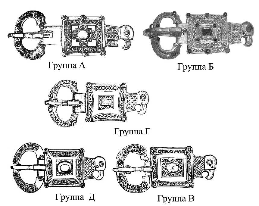17. Южнокрымские орлиноголовые пряжки групп В и Д по И.П.Засецкой.